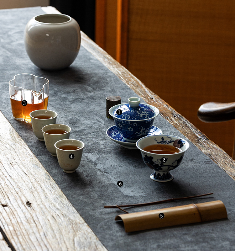 茶香记繁色青花海浪纹鹿鹿平安三才盖碗景德镇陶瓷茶碗130ml茶具