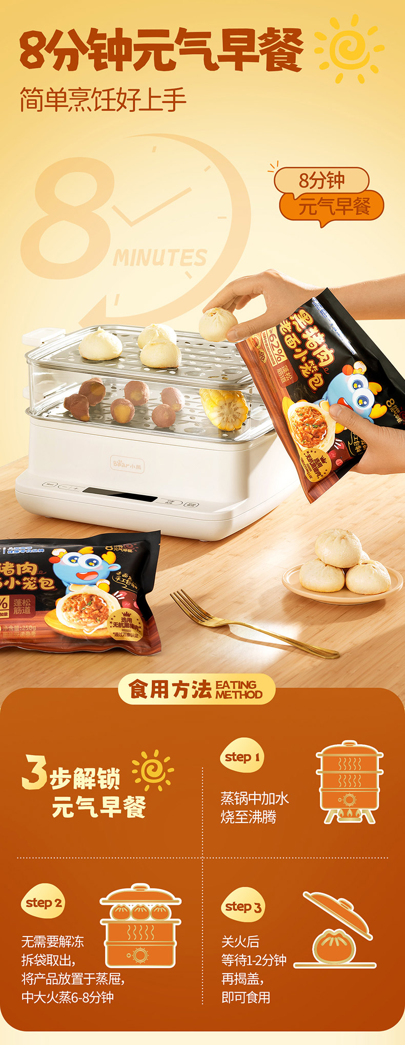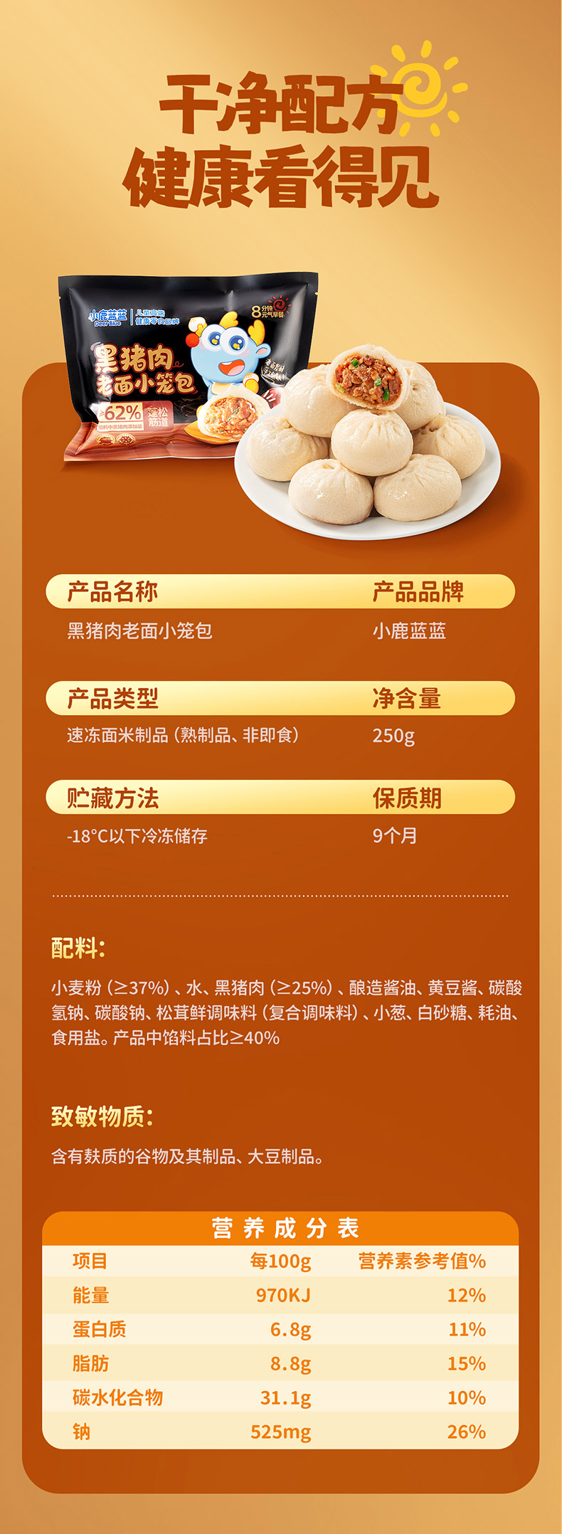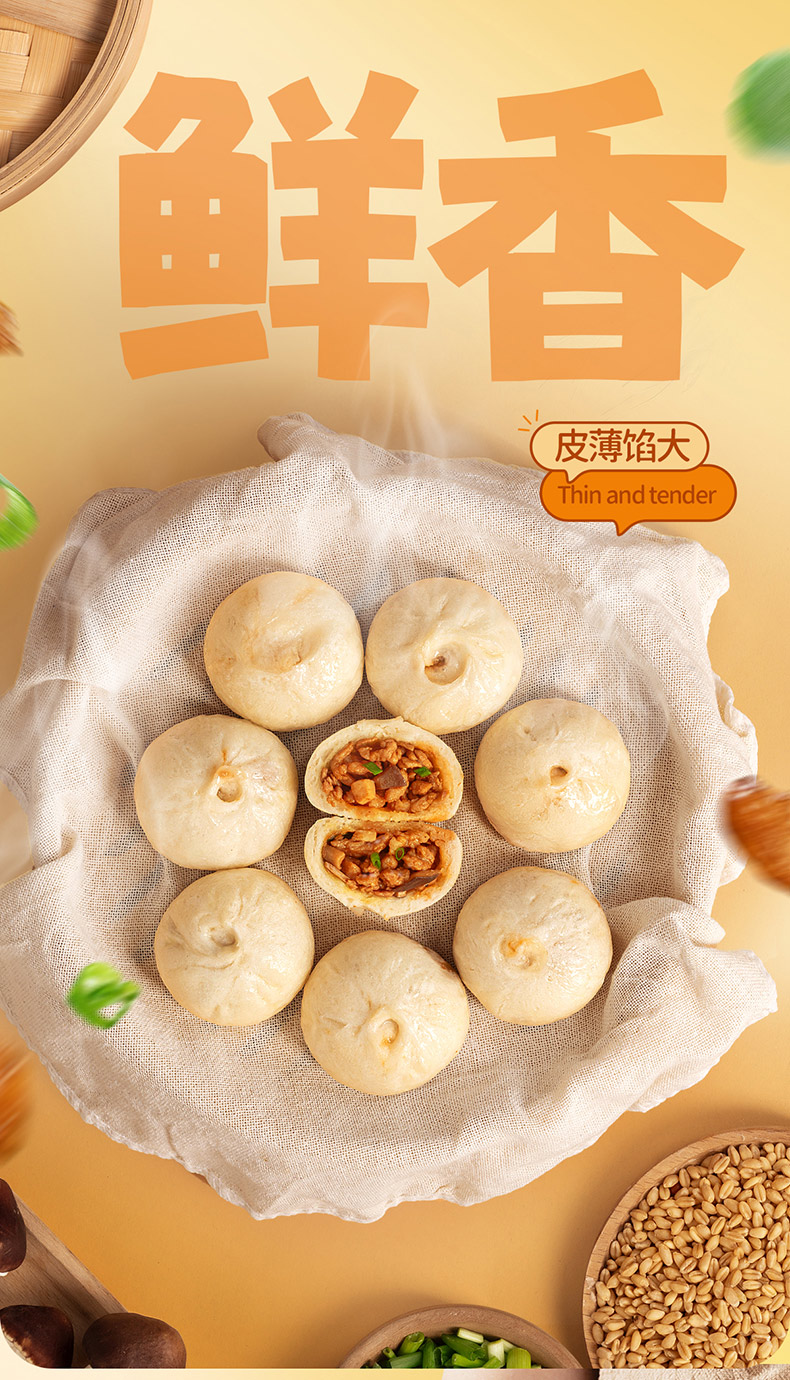 【孕味秒杀专属】小鹿蓝蓝黑猪肉老面小笼包/250g*2袋【早餐必备】