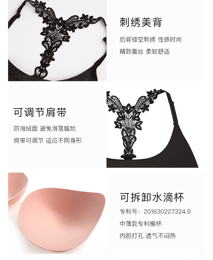 Ubras品牌店撞色交叉美背文胸性感收副乳无痕内衣无钢圈聚拢文胸