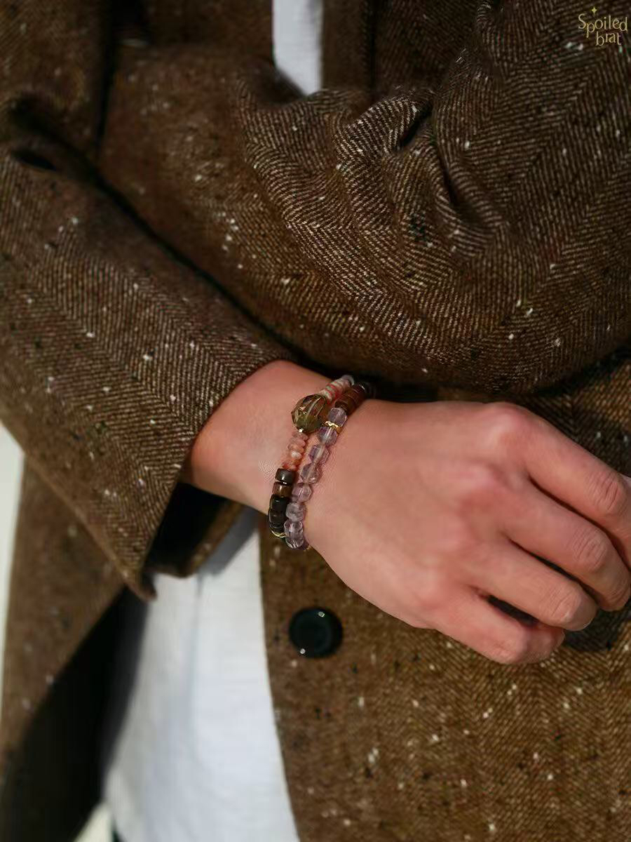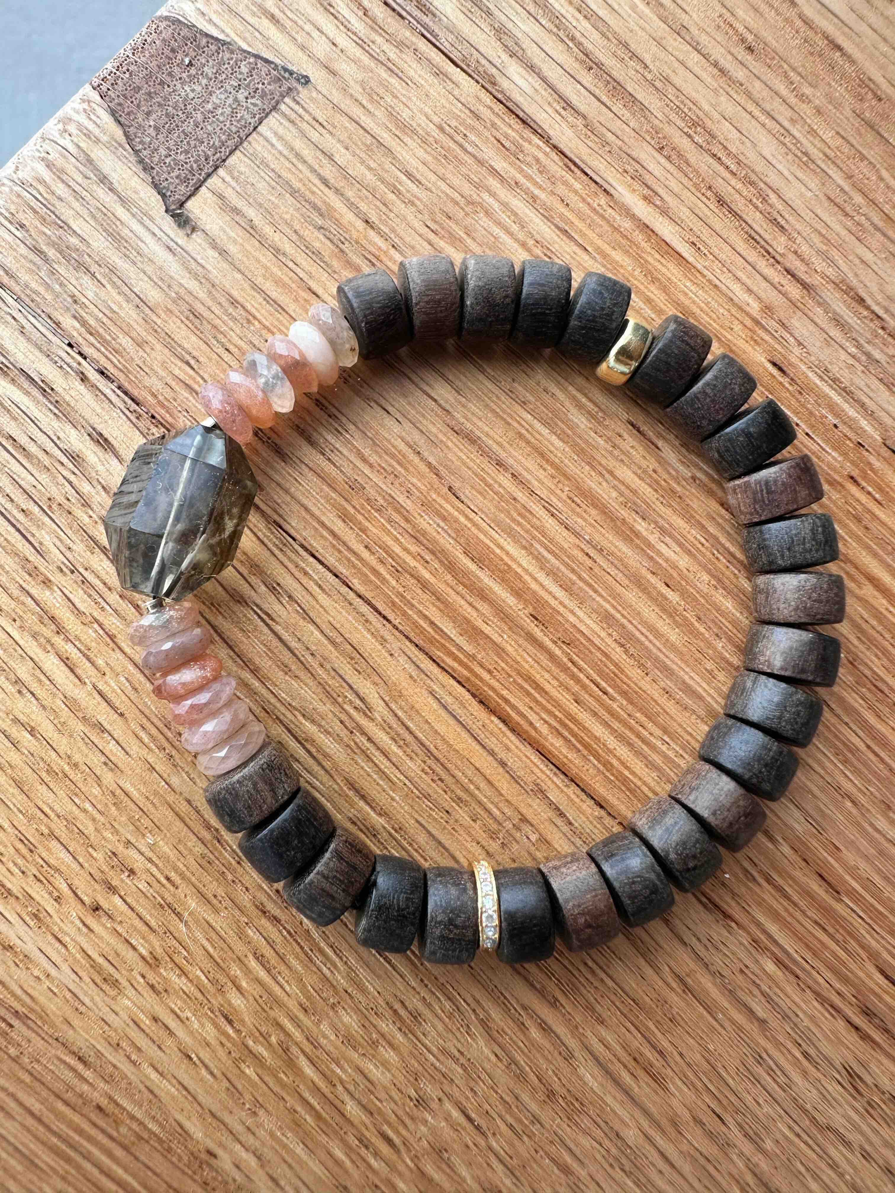 材质:茶晶 太阳石 紫檀