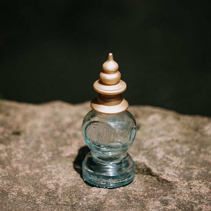这两枚印章,依据西泠印社第一任社长吴昌硕先生印字元素艺术创作,以其独特的艺术语言,为这瓶珍贵的西湖水增添了几分吉祥如意的气息。