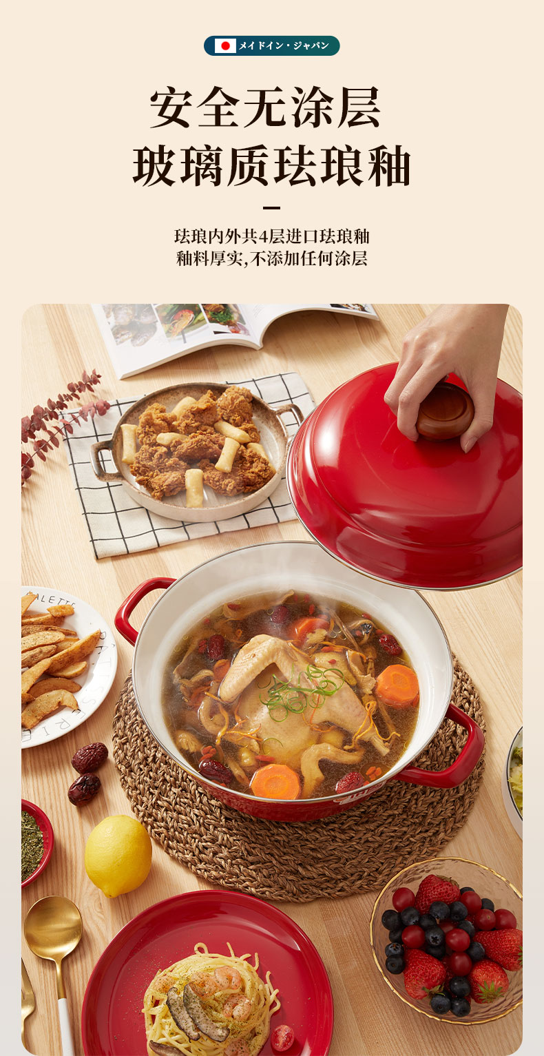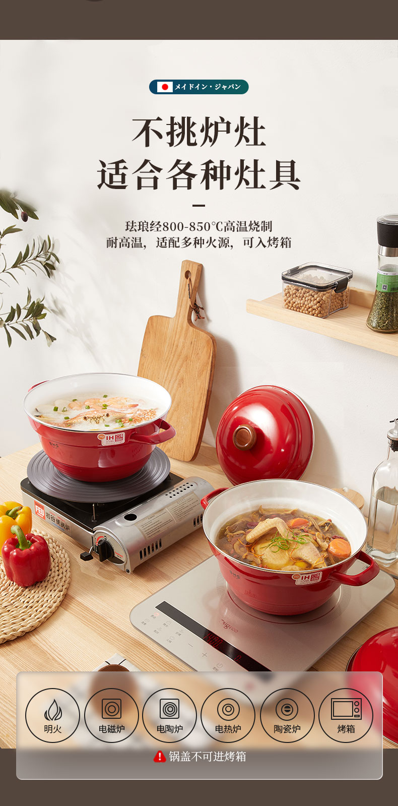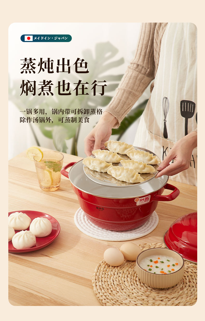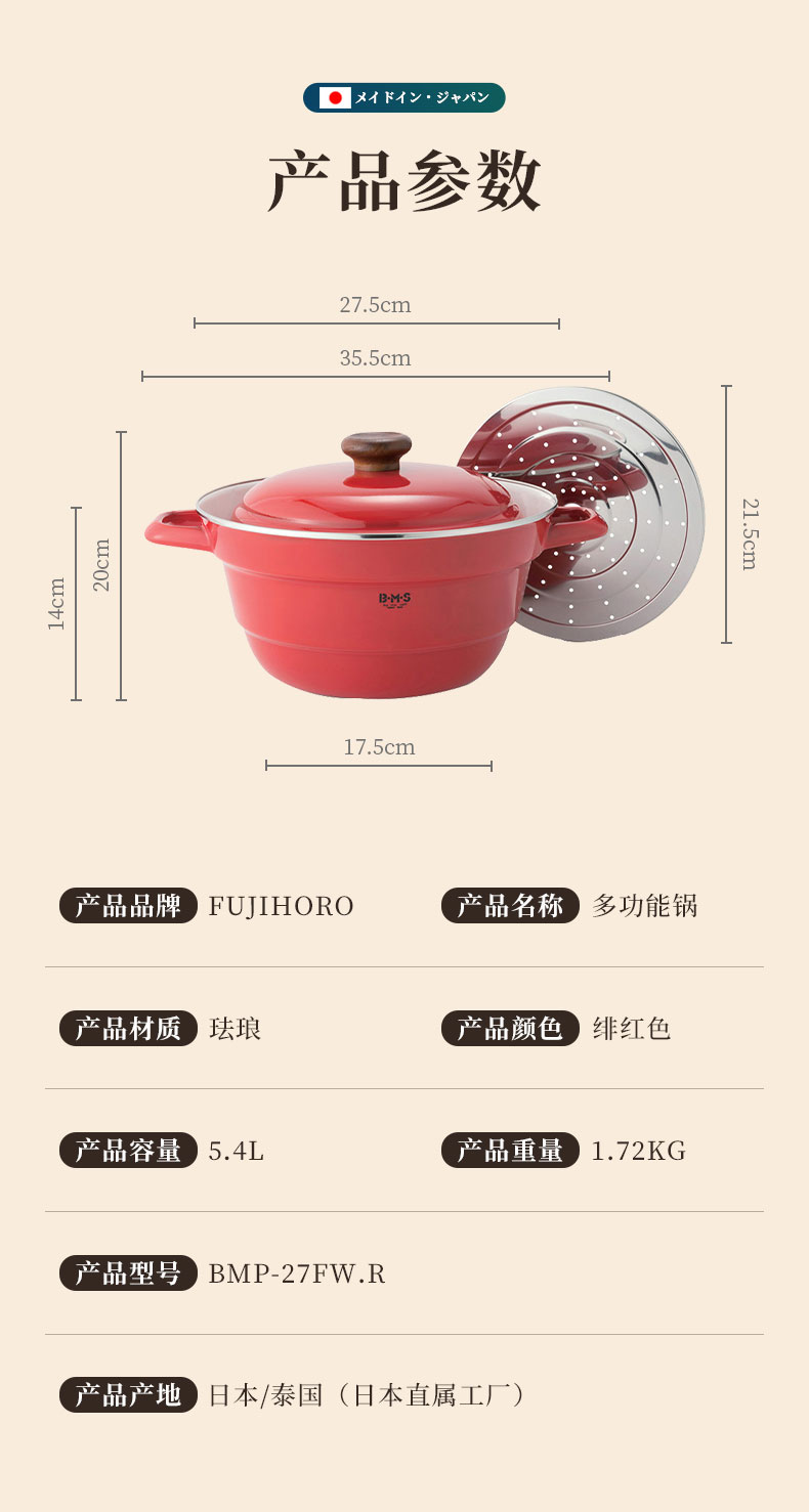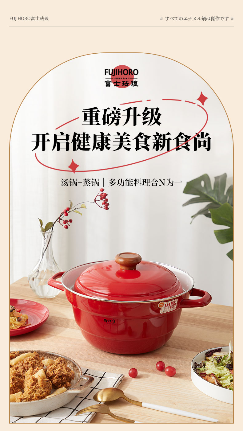 【FUJIHORO 富士珐琅】纯色珐琅多功能蒸锅(带蒸格)
