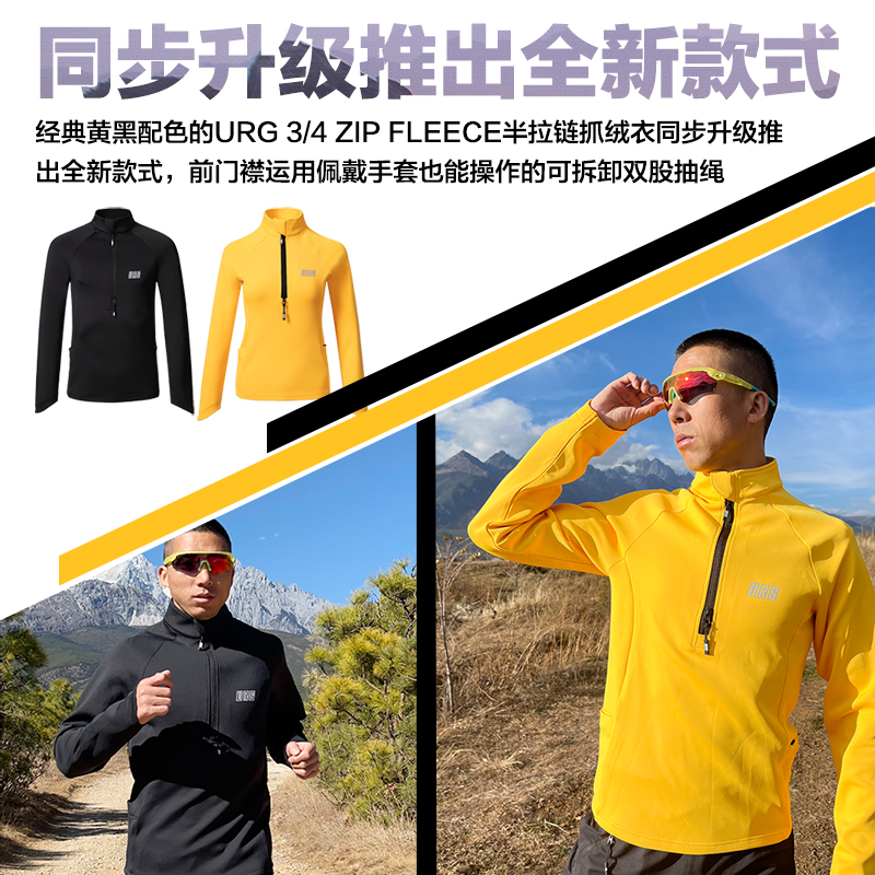 URG半拉链抓绒衣3/4 Zip Fleece秋季男女户外运动马拉松比赛跑步健身装备上衣 可定制