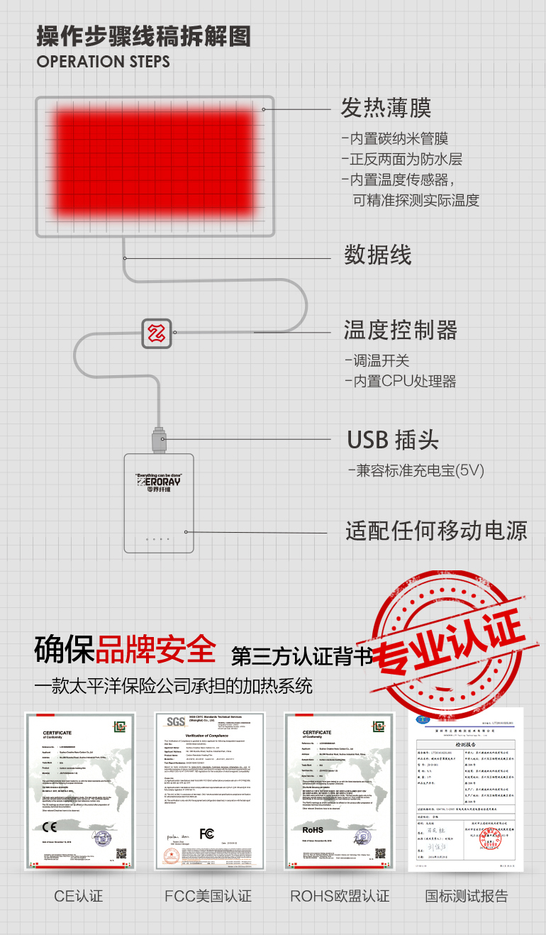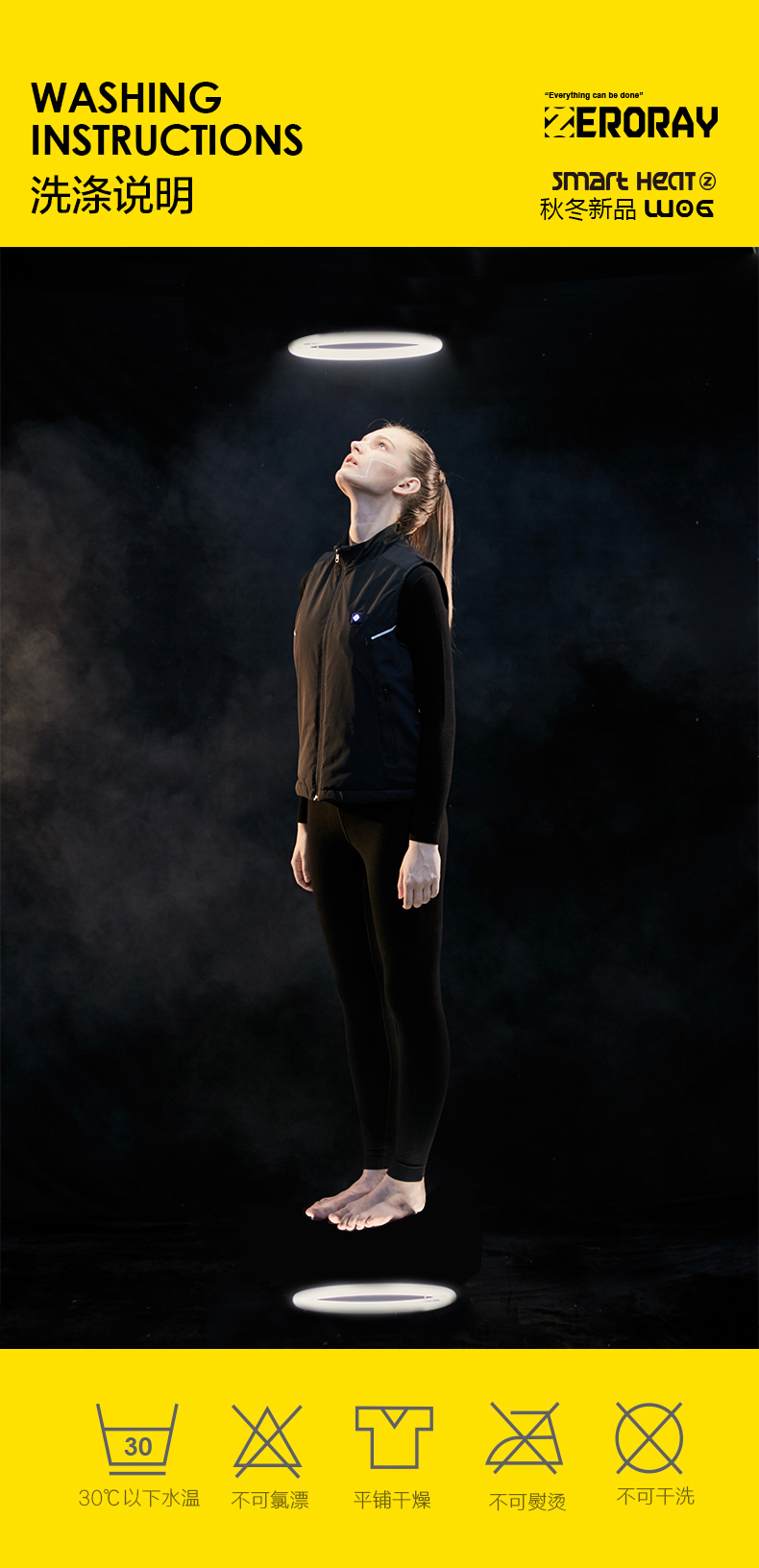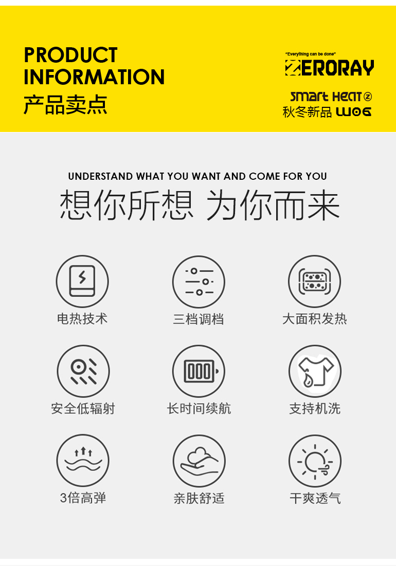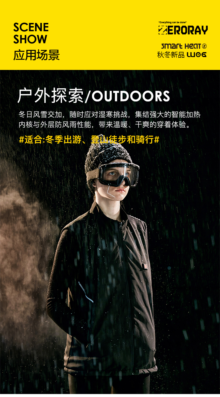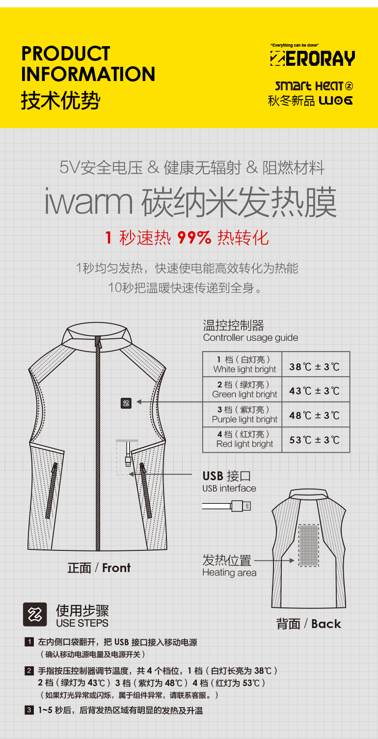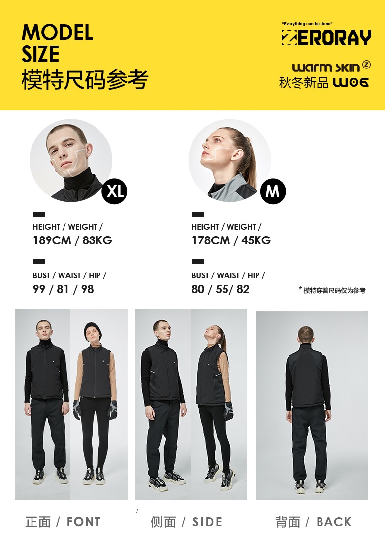 ZERORAY发热马甲电加热背心无袖立领黑灰色智能温控男女同款保暖