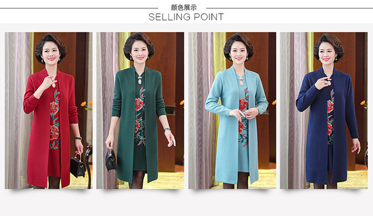XX 旗袍开衫两件套 洋气大码妈妈装外披+改良裙
