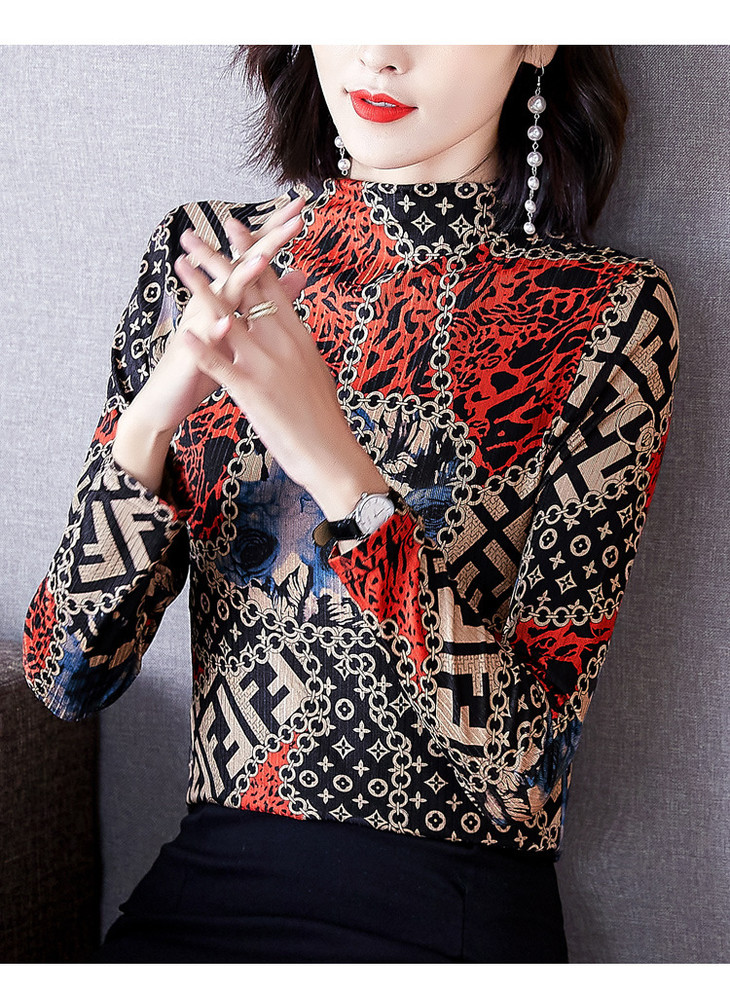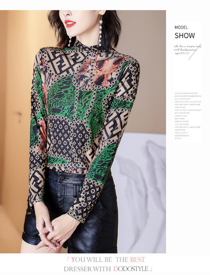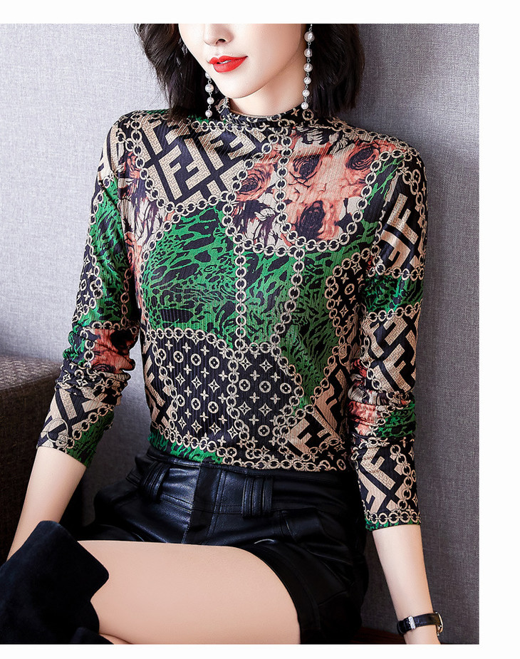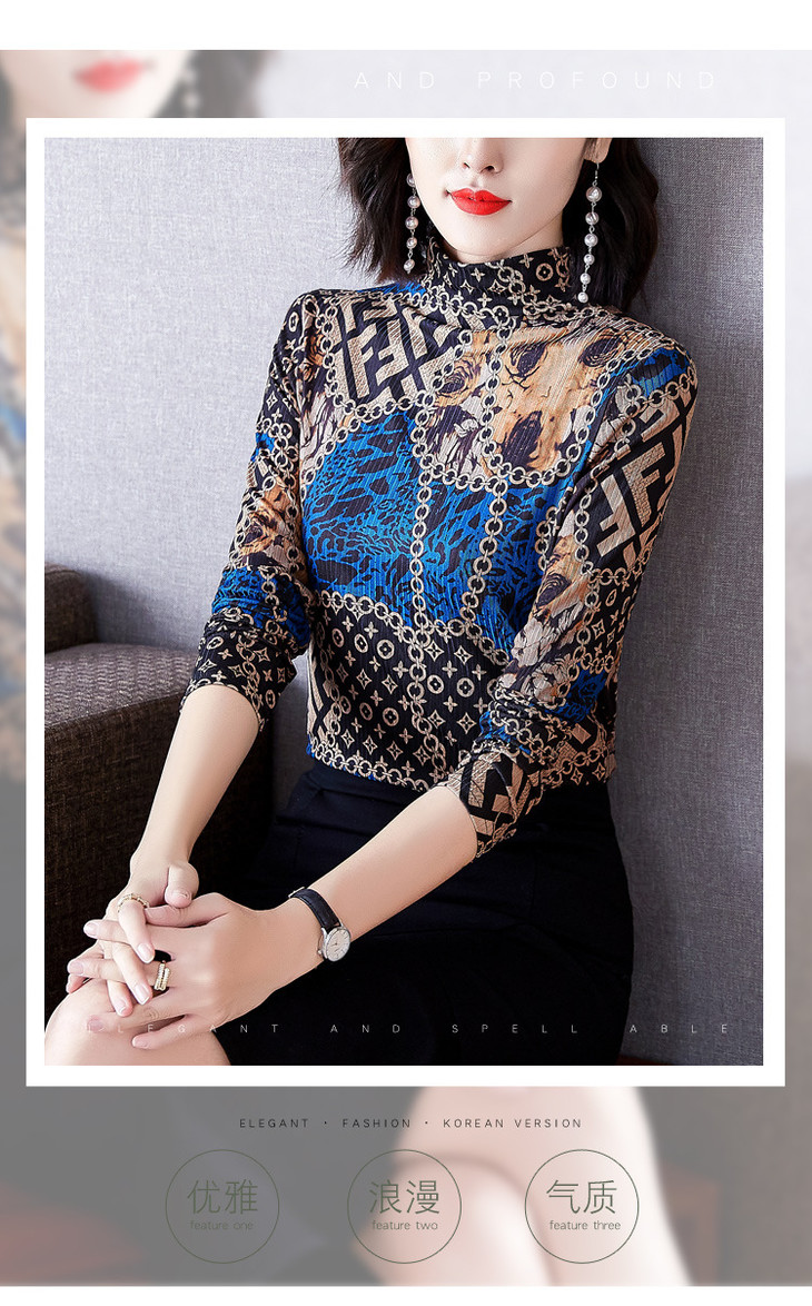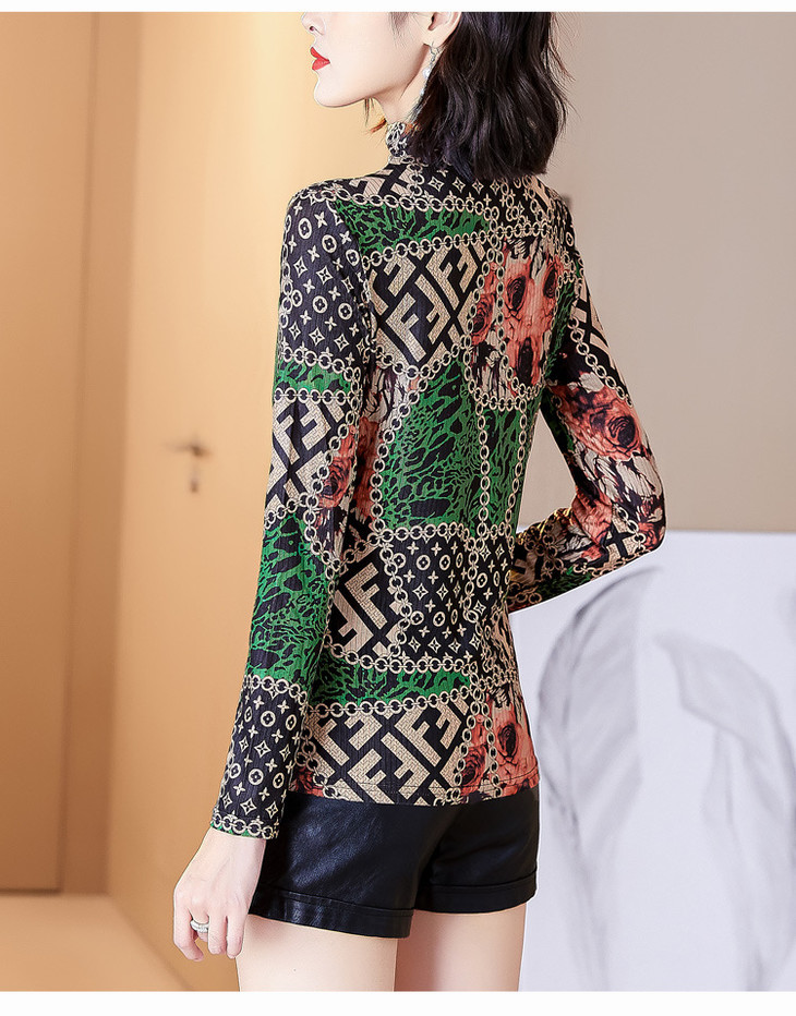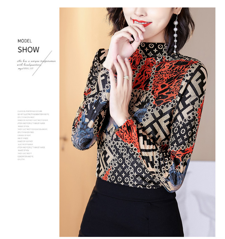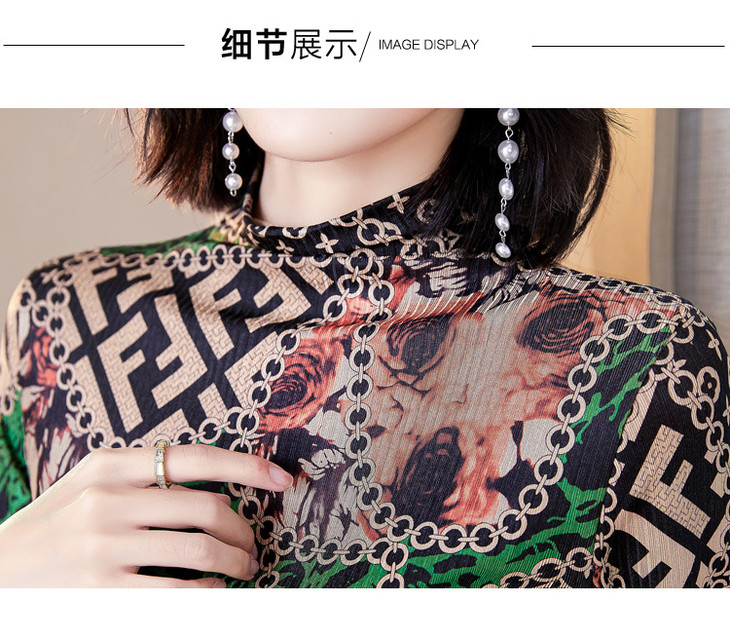 MZ-MZ7162秋冬季新款高领印花网纱加绒打底衫