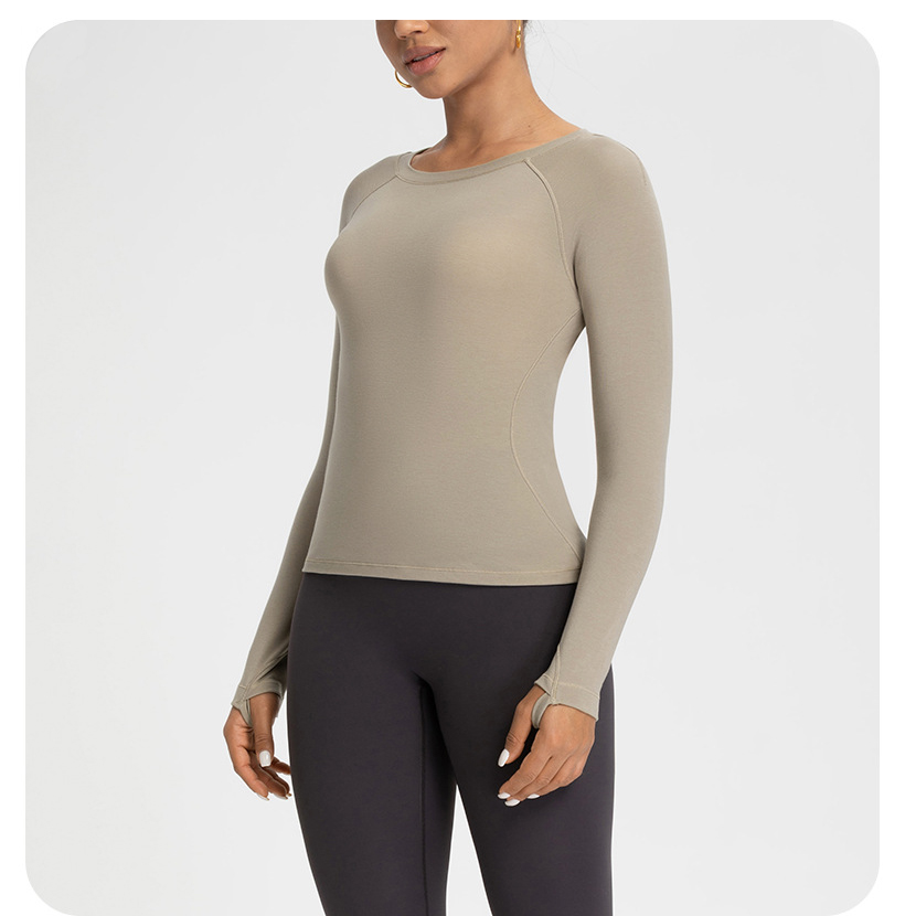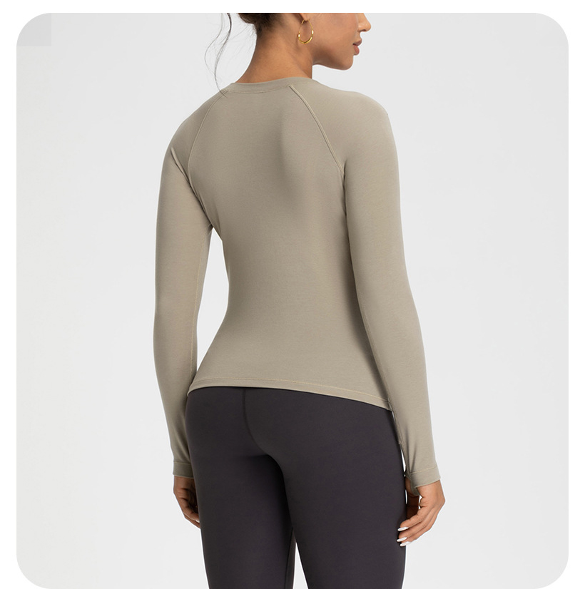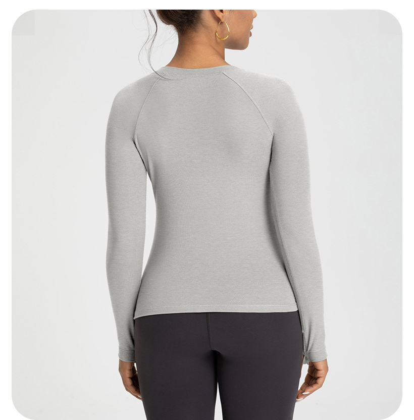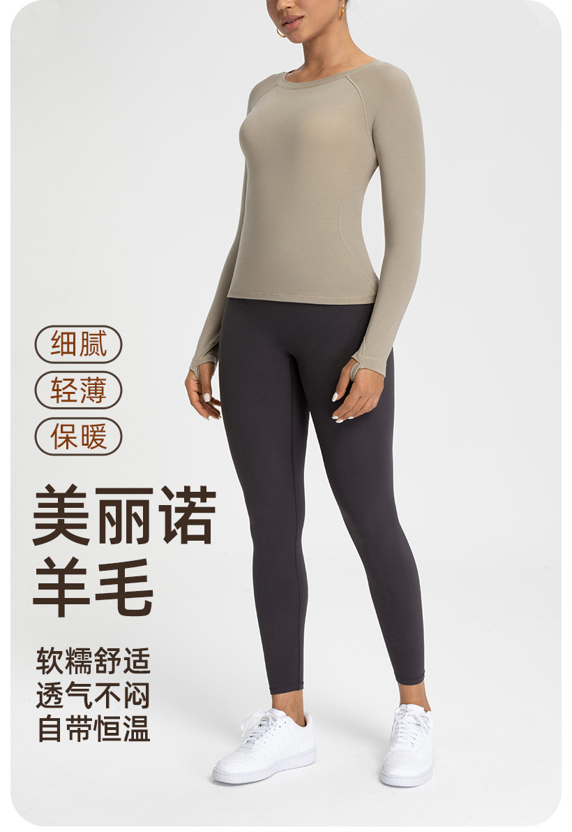 跃牌【倚窗听雨】Athena lulu美丽诺羊毛瑜伽服女裸感显瘦修身运动休闲健身长袖T恤CX158