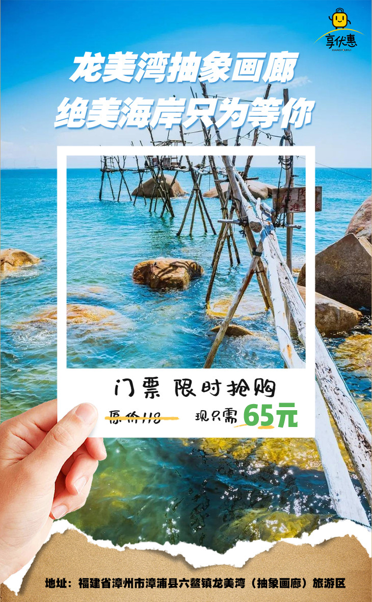 【绝美海岸】¥65起限量抢购漳州龙美湾抽象画廊大门票绝美海岸,卡丁车套票,日场大门票限量抢购~