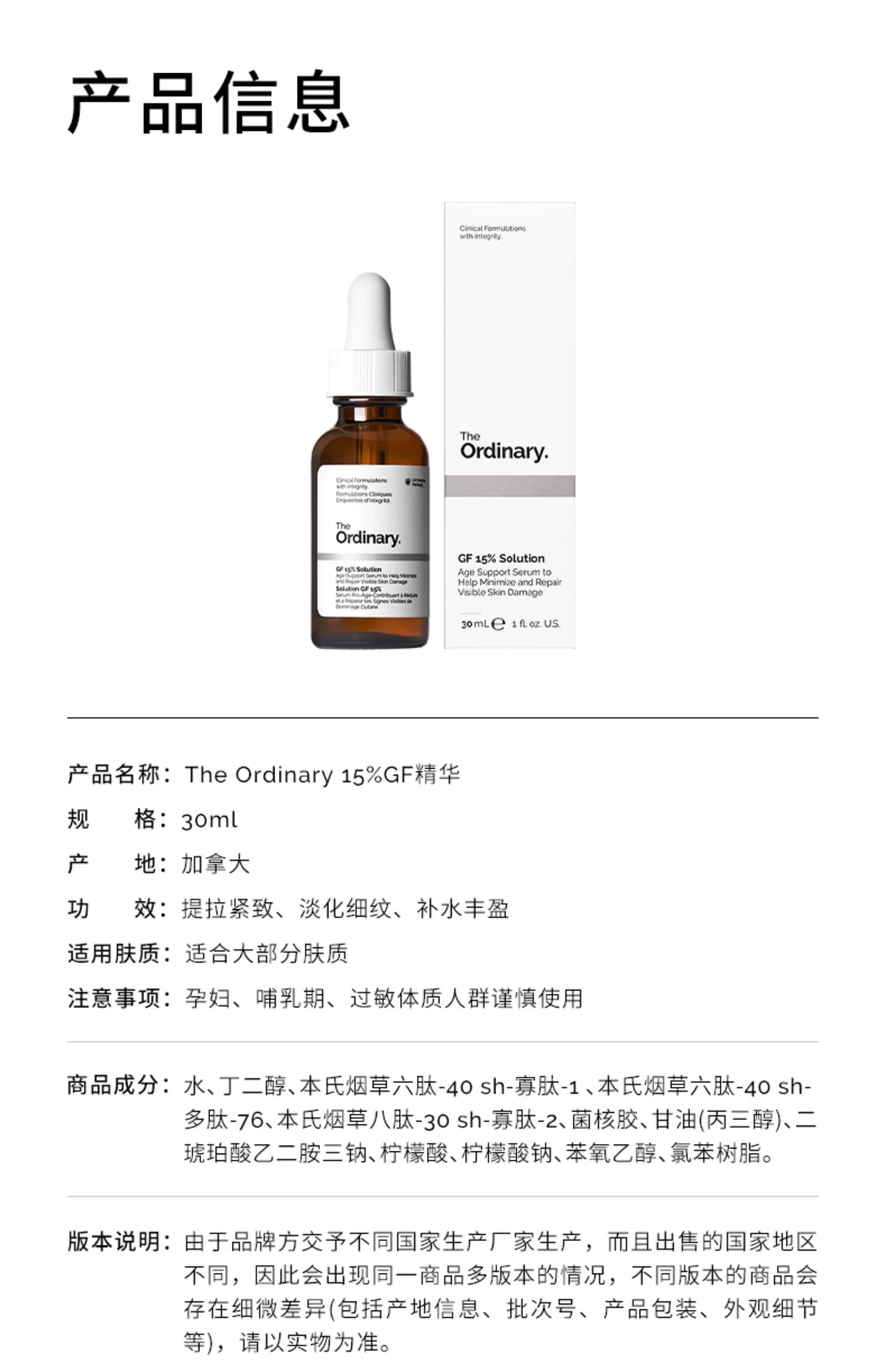 【保税仓发货】【焕肤保湿】The Ordinary30%果酸精华+2%透明质酸B5+15%GF因子组合