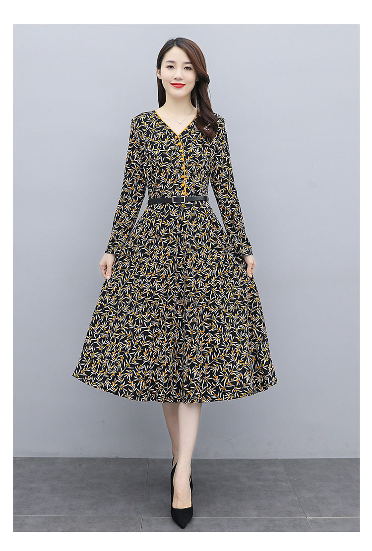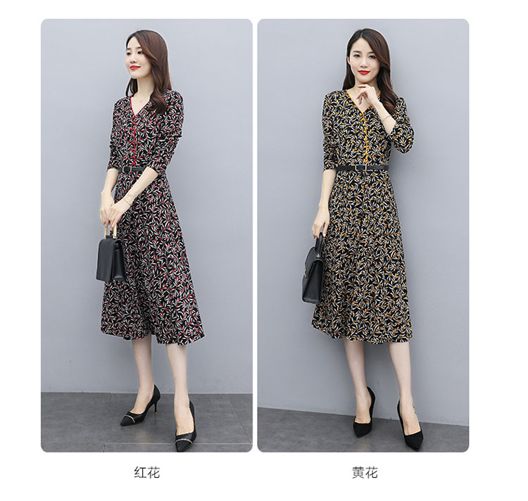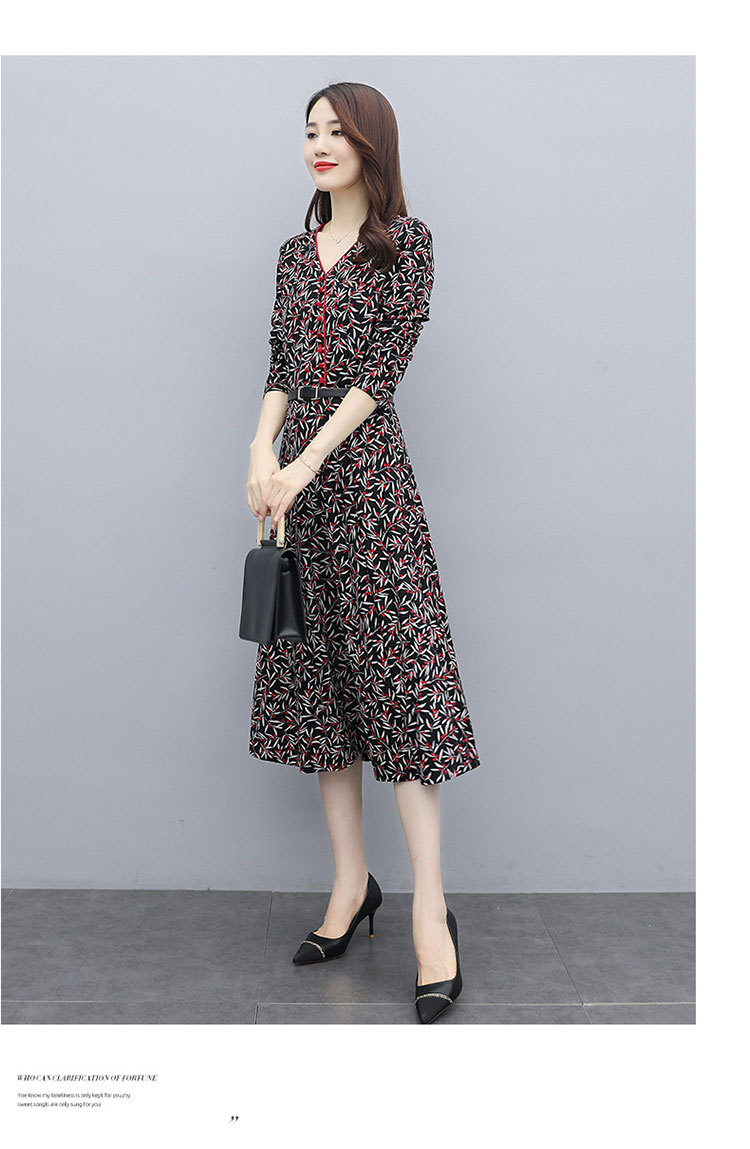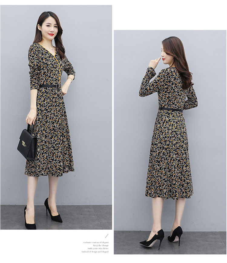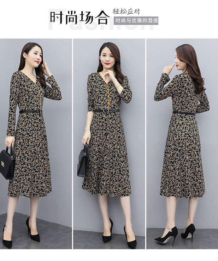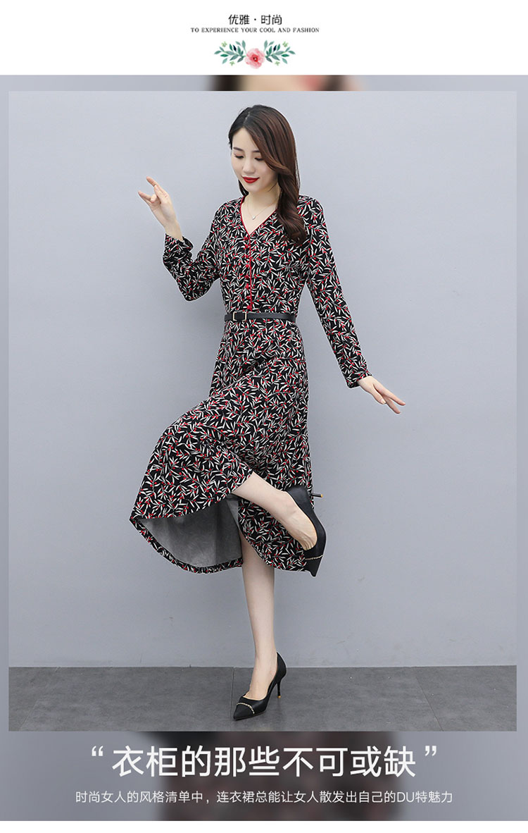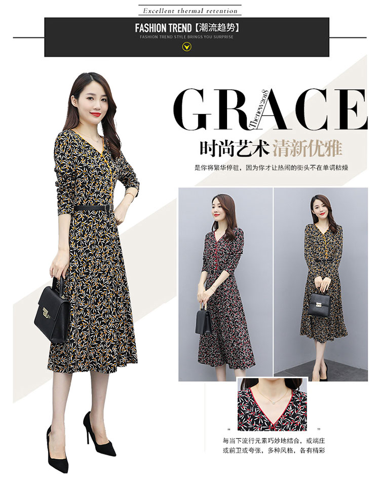 WZNH-XMRS2079秋冬打底长袖V领过膝中长款气质常规显瘦连衣裙