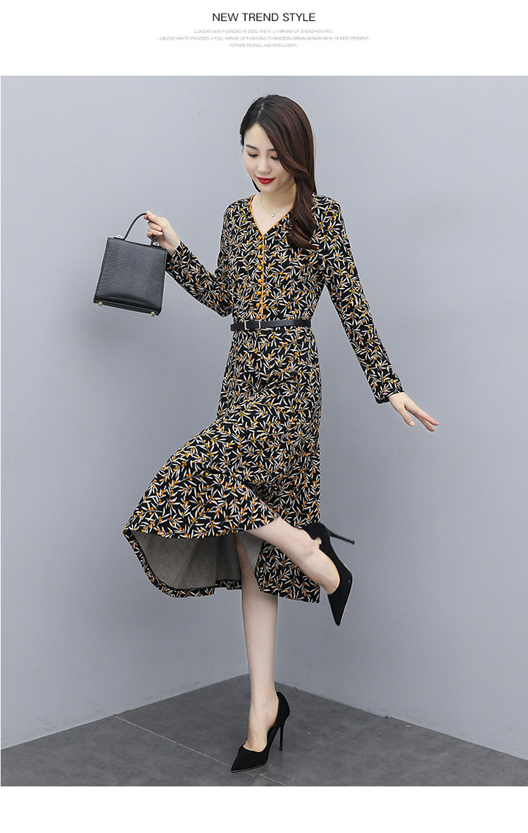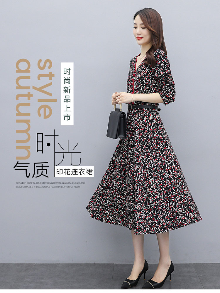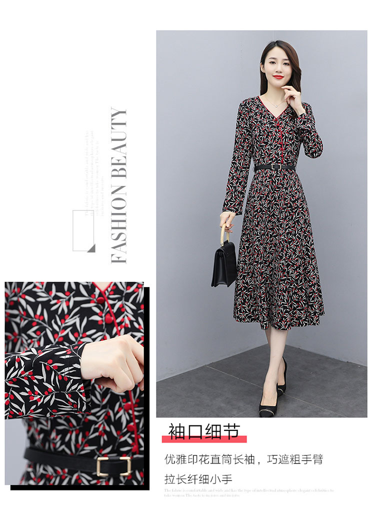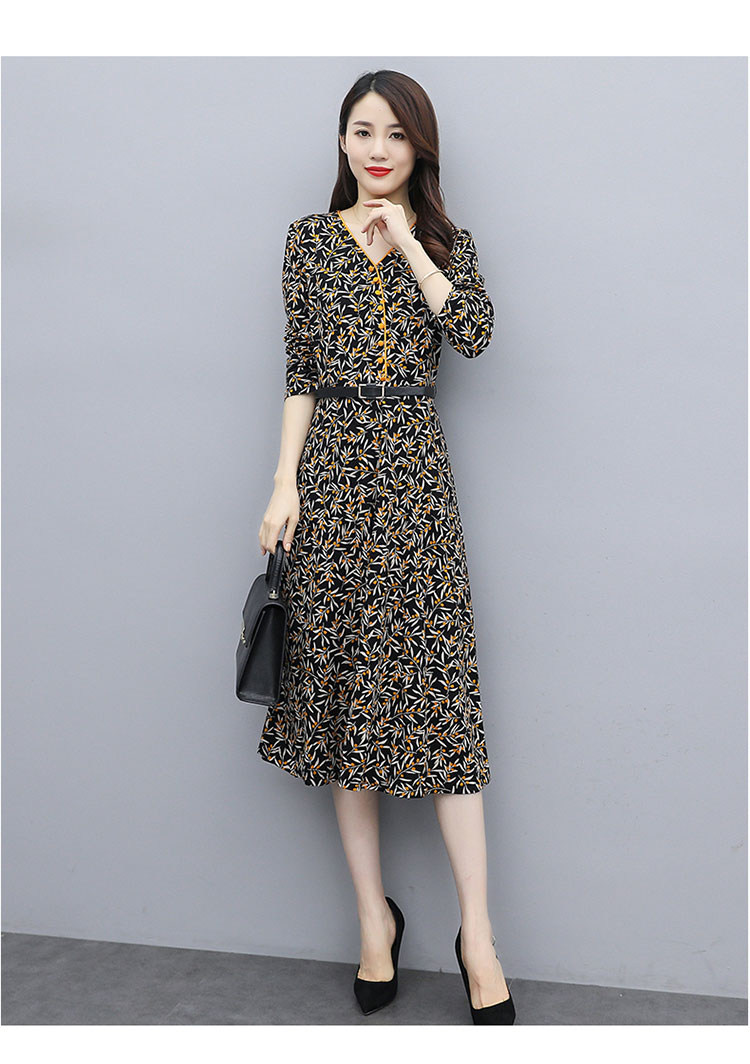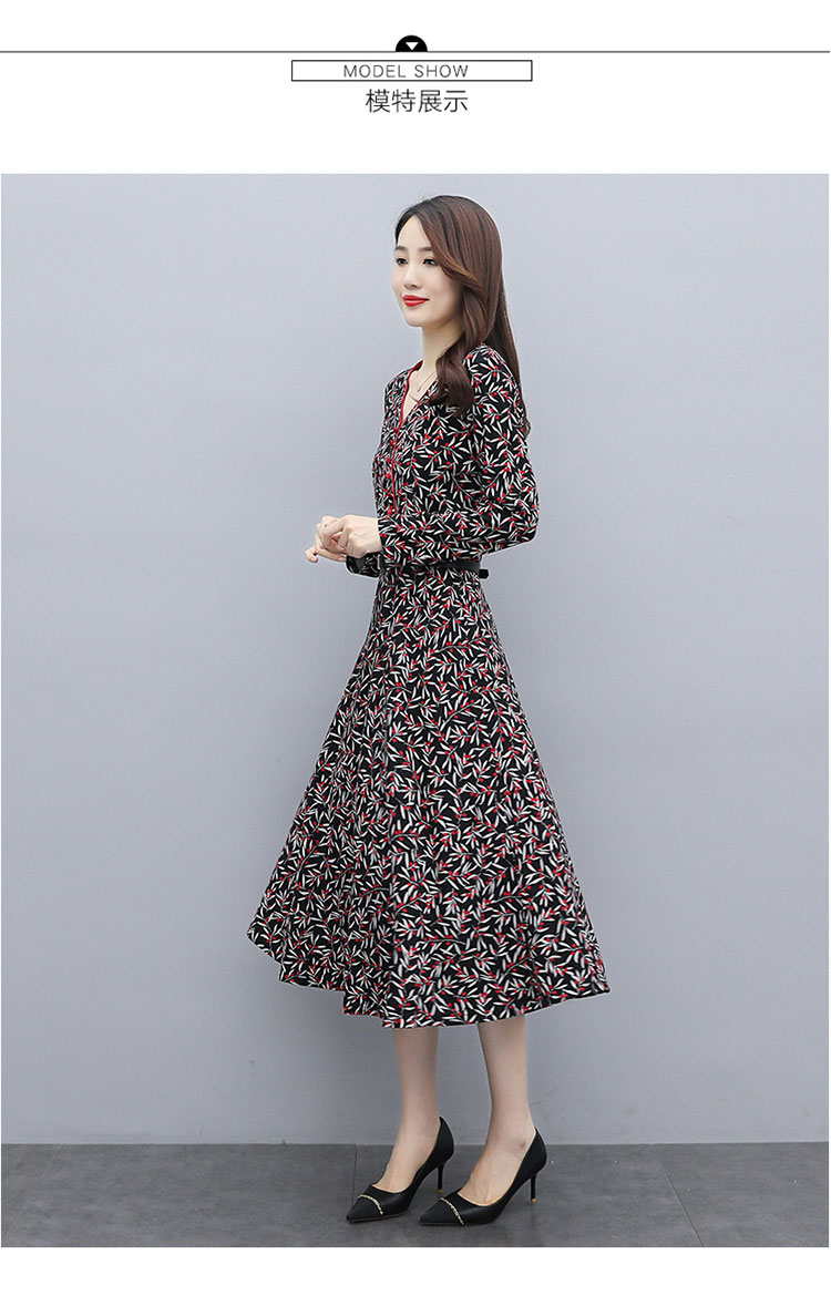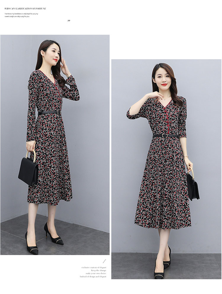 WZNH-XMRS2079秋冬打底长袖V领过膝中长款气质常规显瘦连衣裙