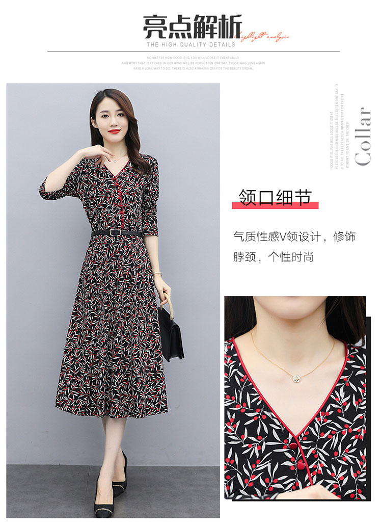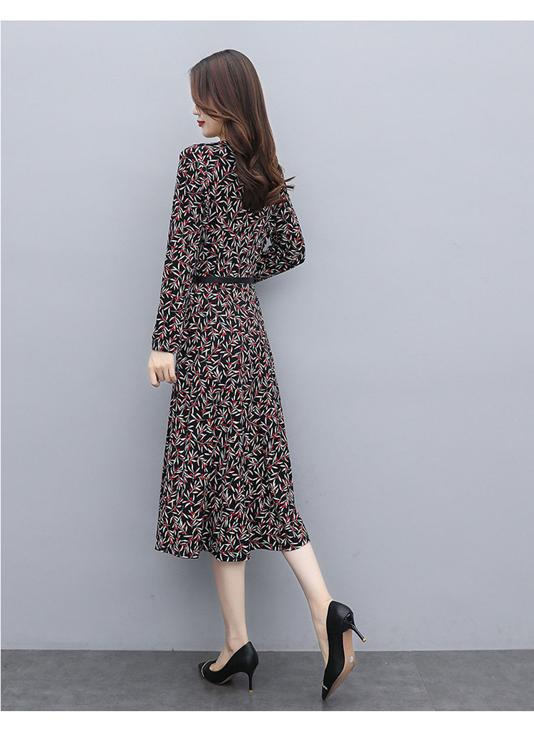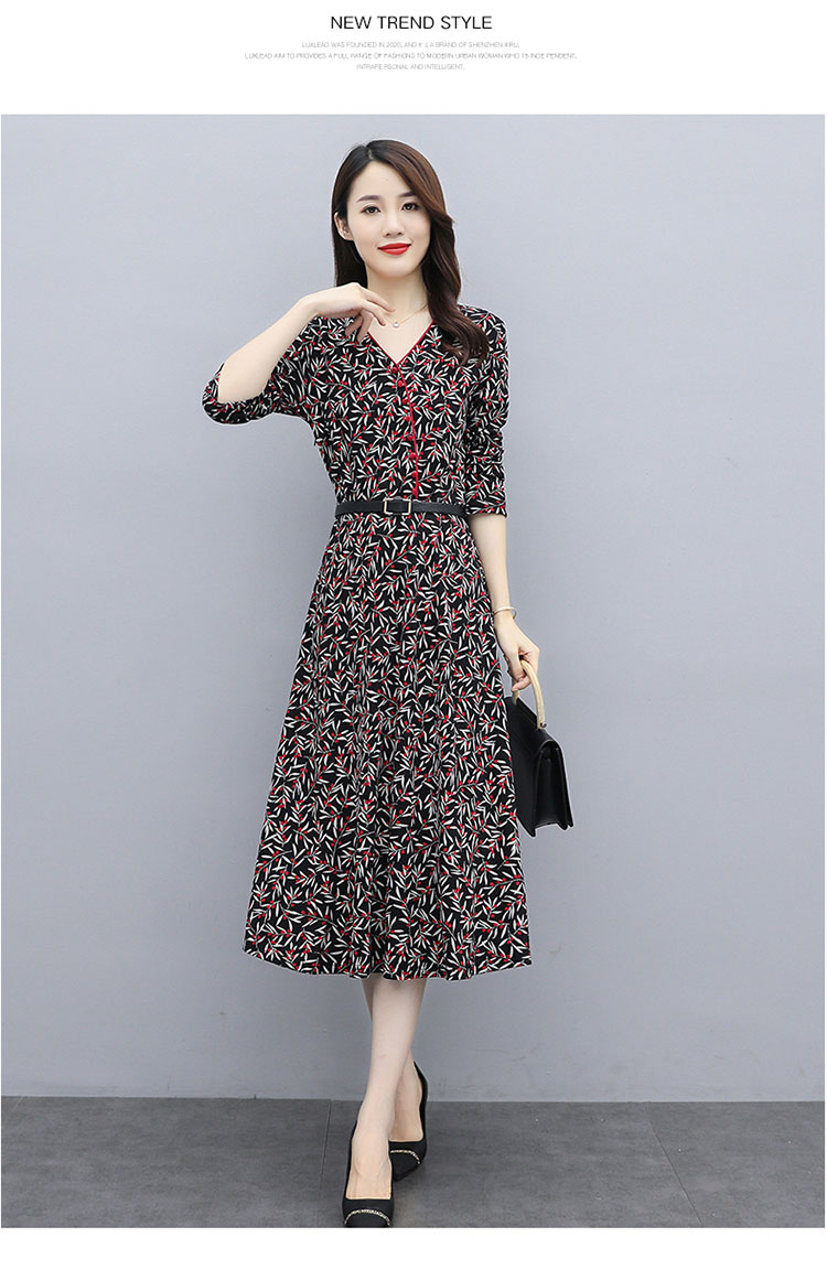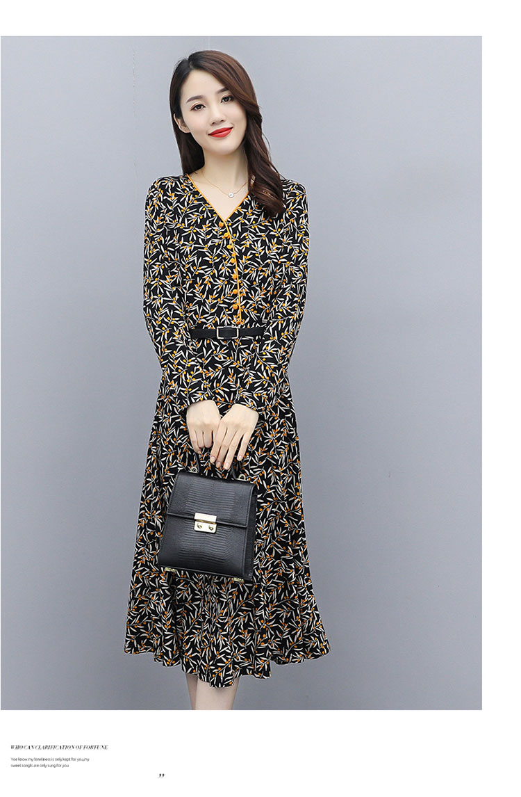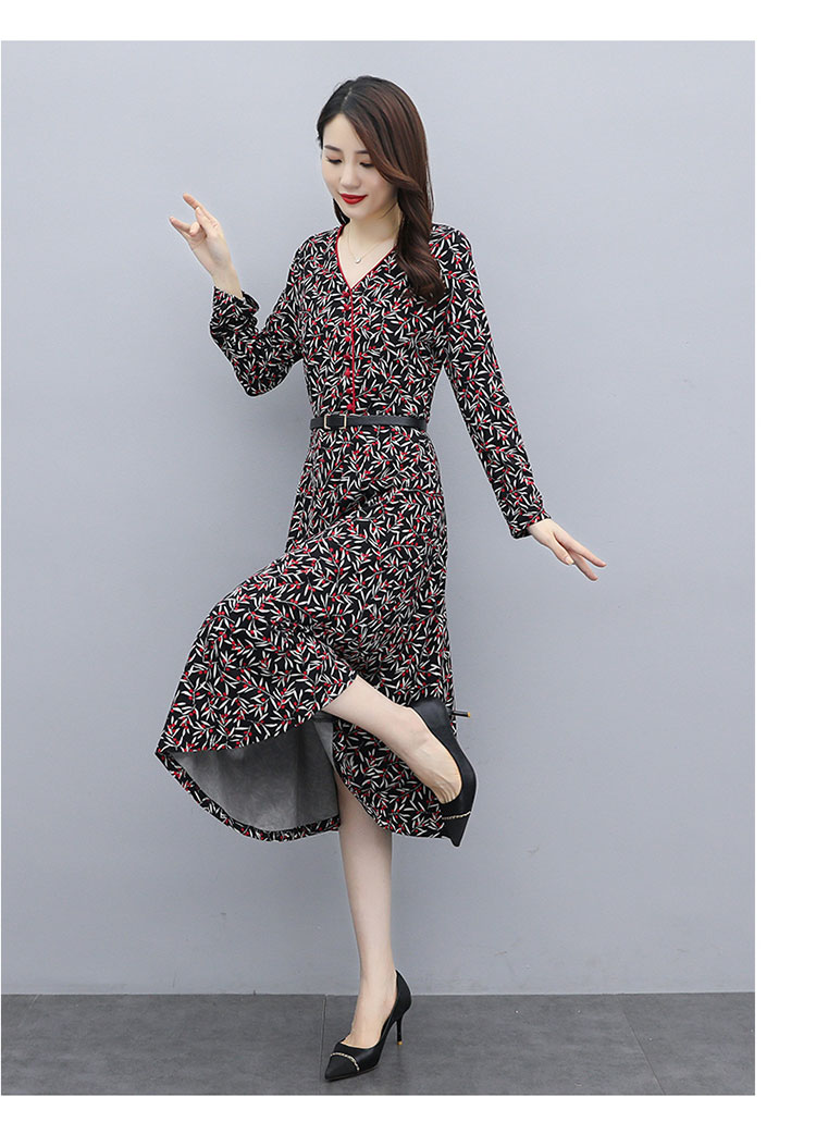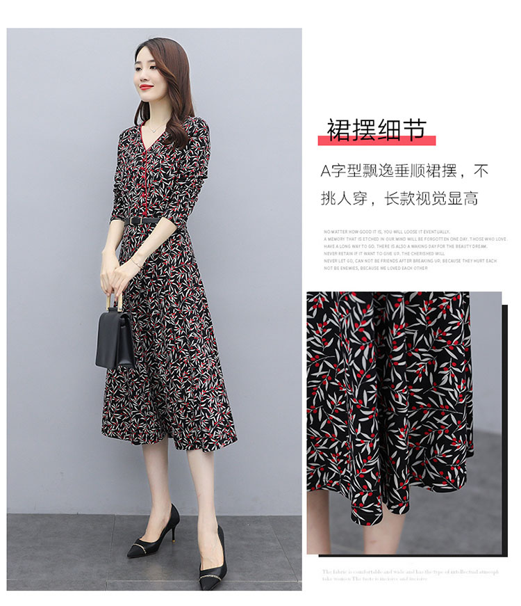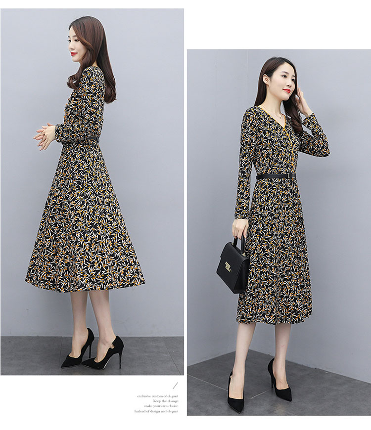 WZNH-XMRS2079秋冬打底长袖V领过膝中长款气质常规显瘦连衣裙
