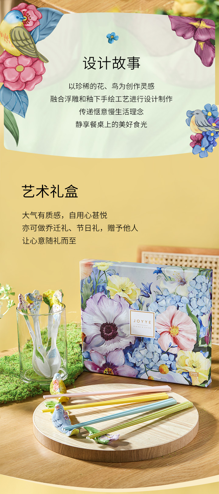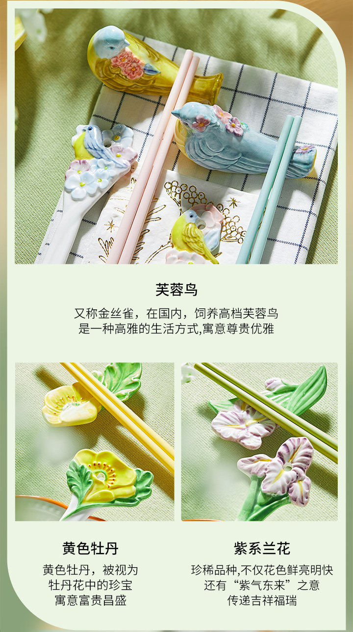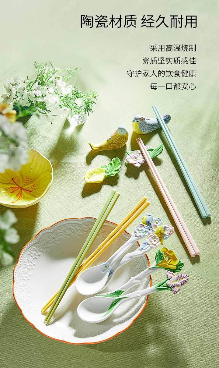 JOYYE鸟语花香-勺筷套装筷子家用高档新款轻奢陶瓷勺子长柄浮雕手绘筷子架