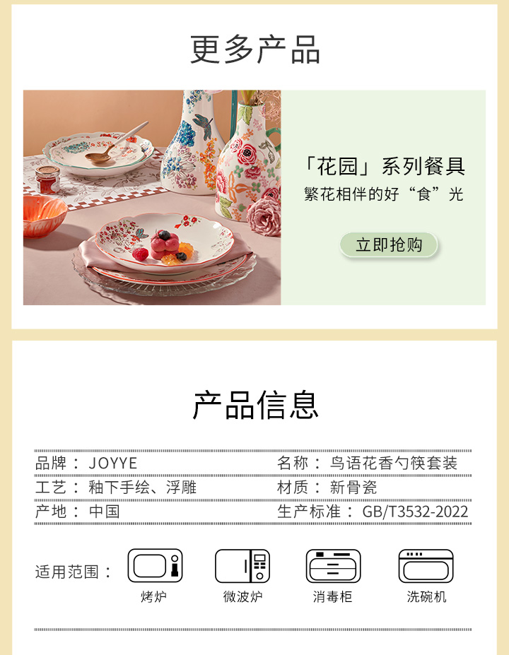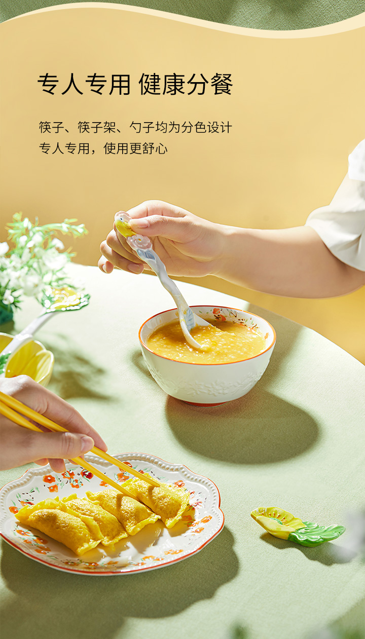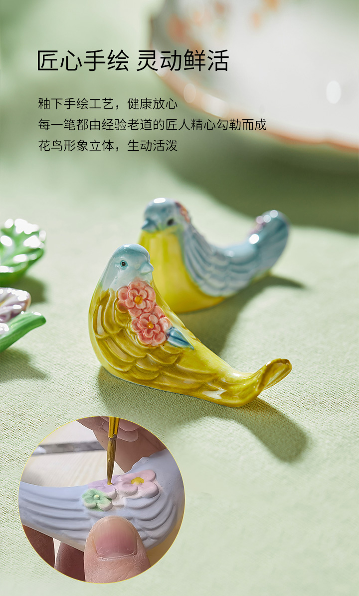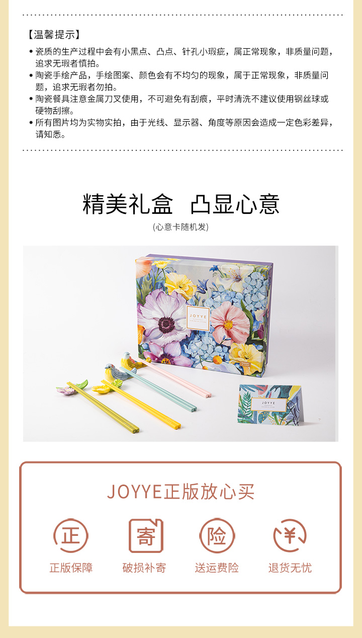 JOYYE鸟语花香-勺筷套装筷子家用高档新款轻奢陶瓷勺子长柄浮雕手绘筷子架