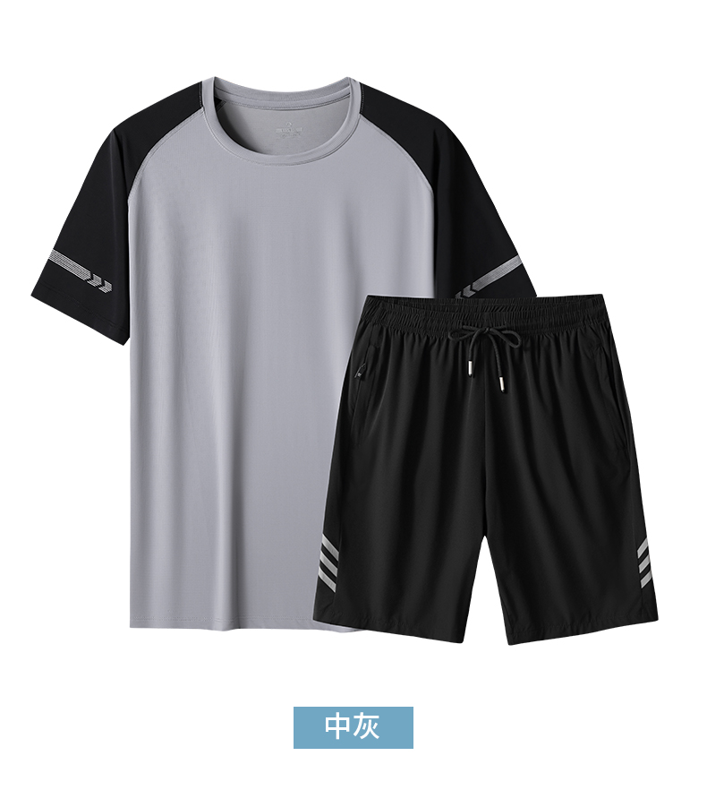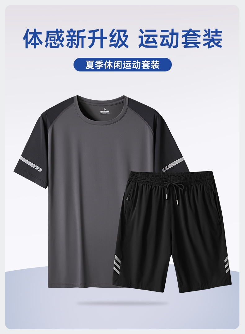 【Q】【冰丝速干】【新款DSF】大依优型大码男装夏季套装运动休闲加肥加大短袖短裤大号T恤套装夏装