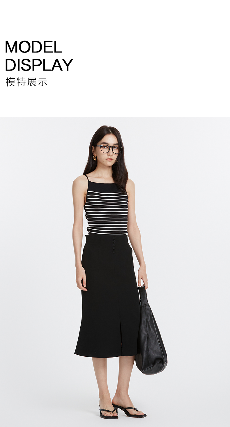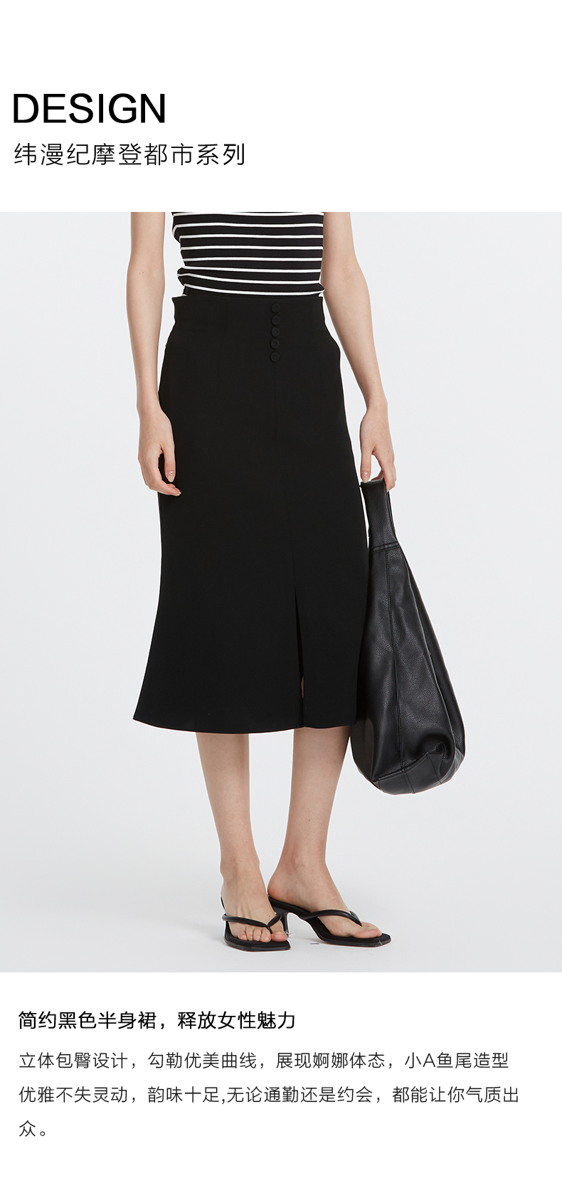 VIMAGE纬漫纪秋季新款高腰显瘦气质时尚通勤鱼尾半身裙VC2406402