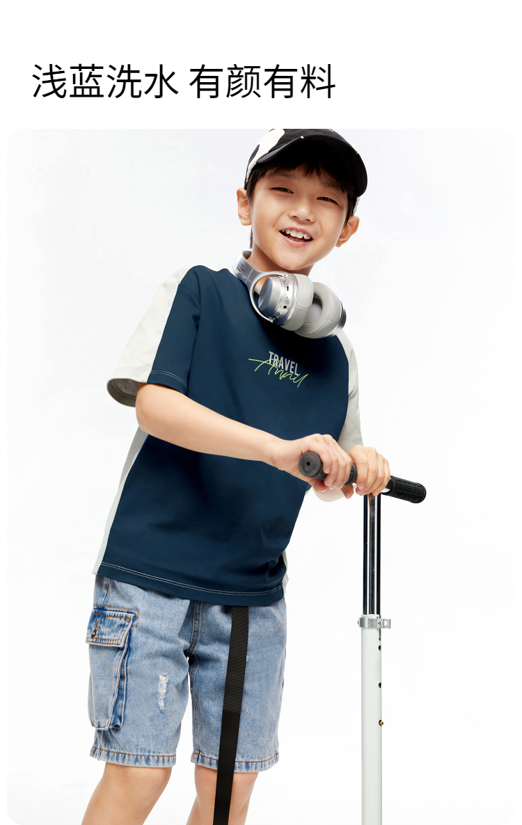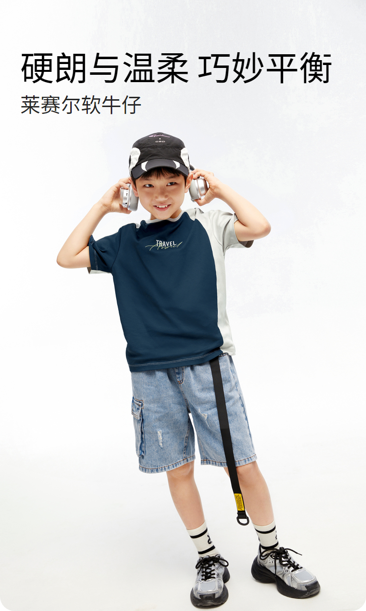 男童莱赛尔软牛仔中裤裤子夏季新款安奈儿童装EB426120