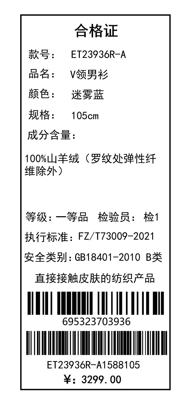 PALUOPO/PLV领男衫ET23936R-A/约重259g帕罗