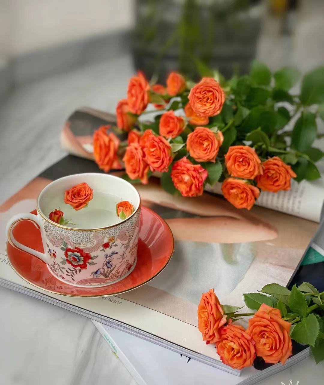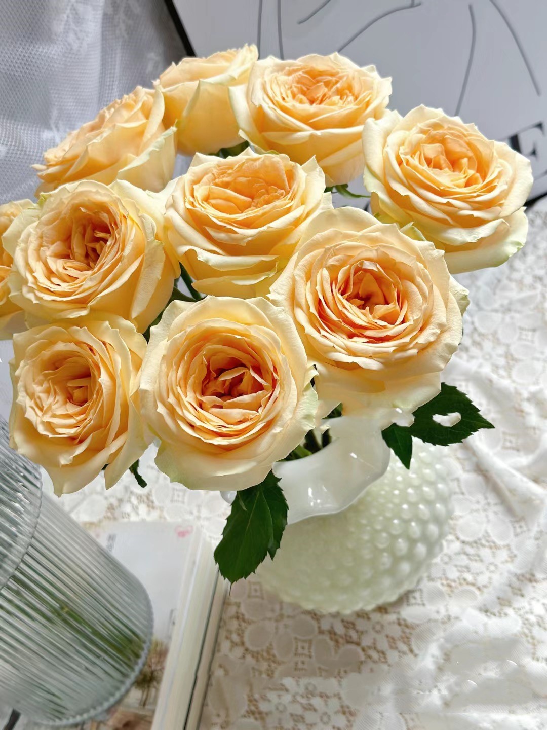 香槟4枝+橙色芭比3枝+尤加利5枝