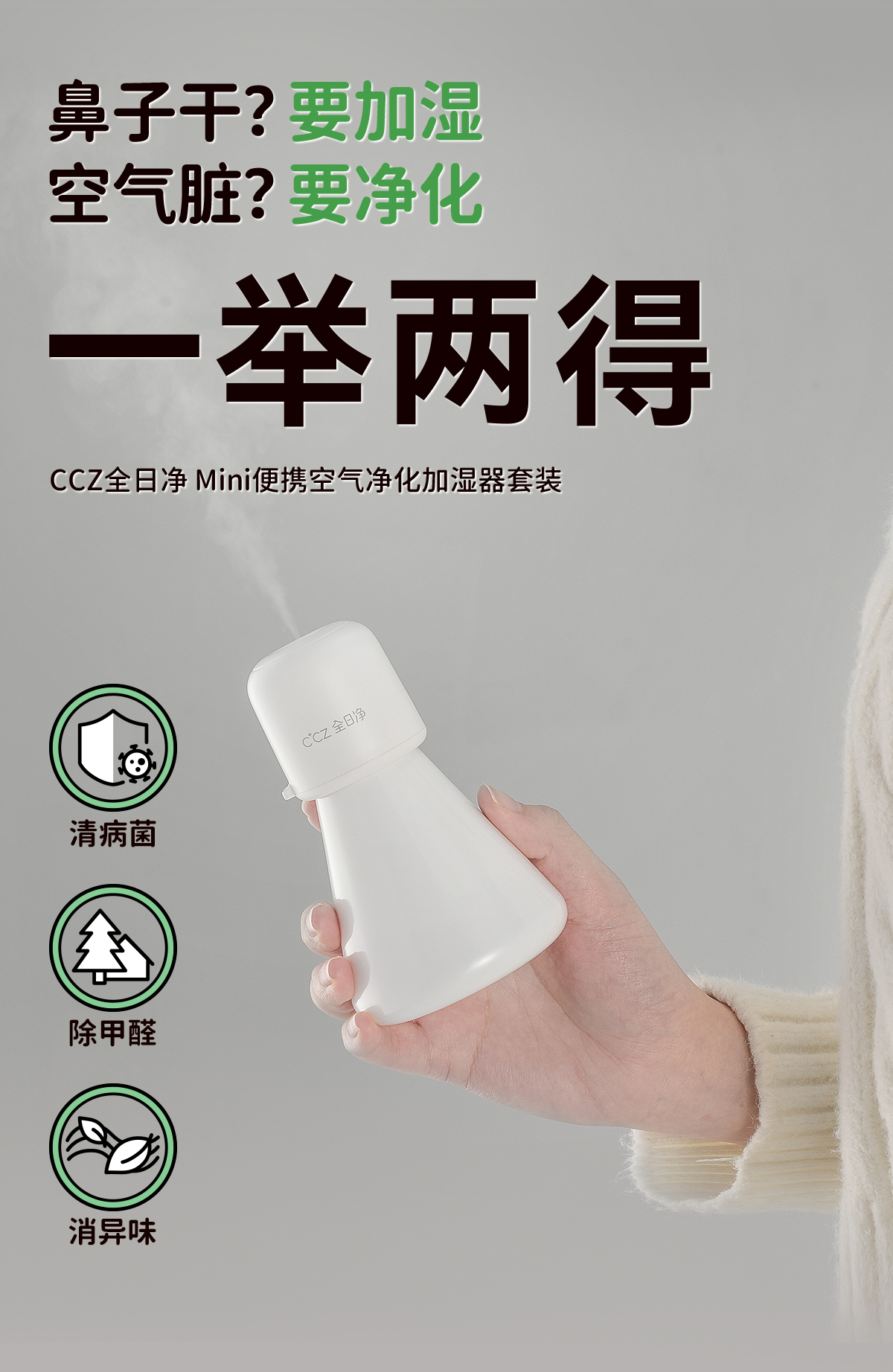 规格:全日净Mini空气消毒加湿器套组(含1L空间消毒液)