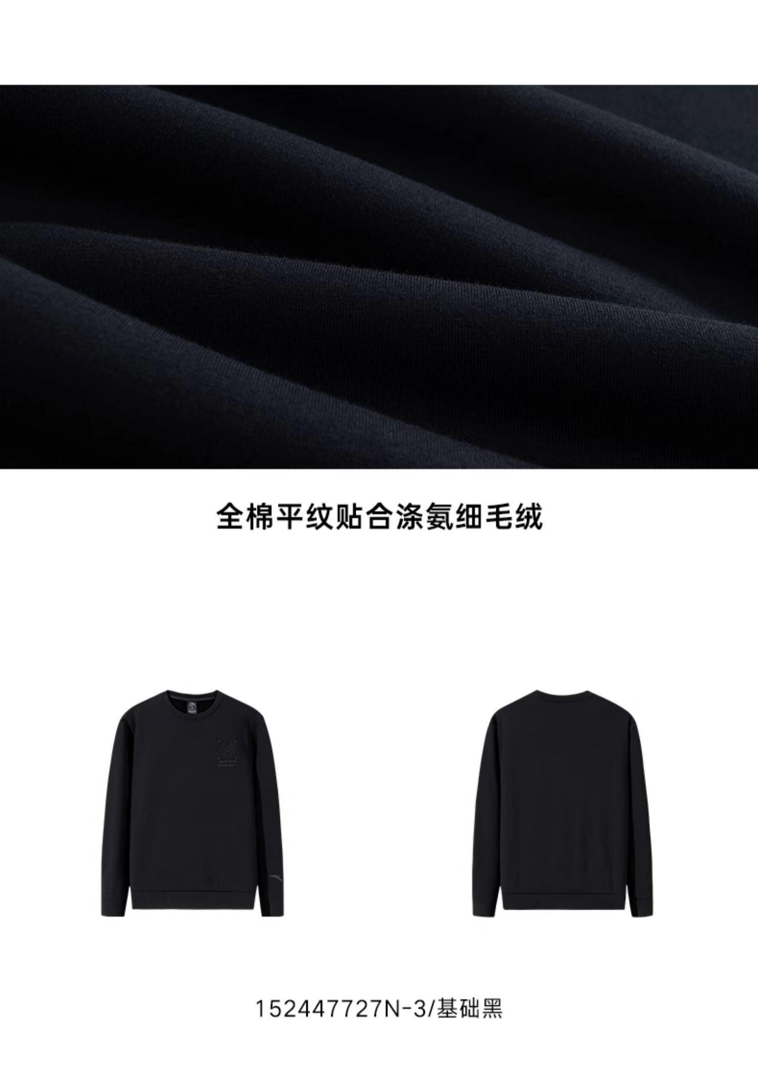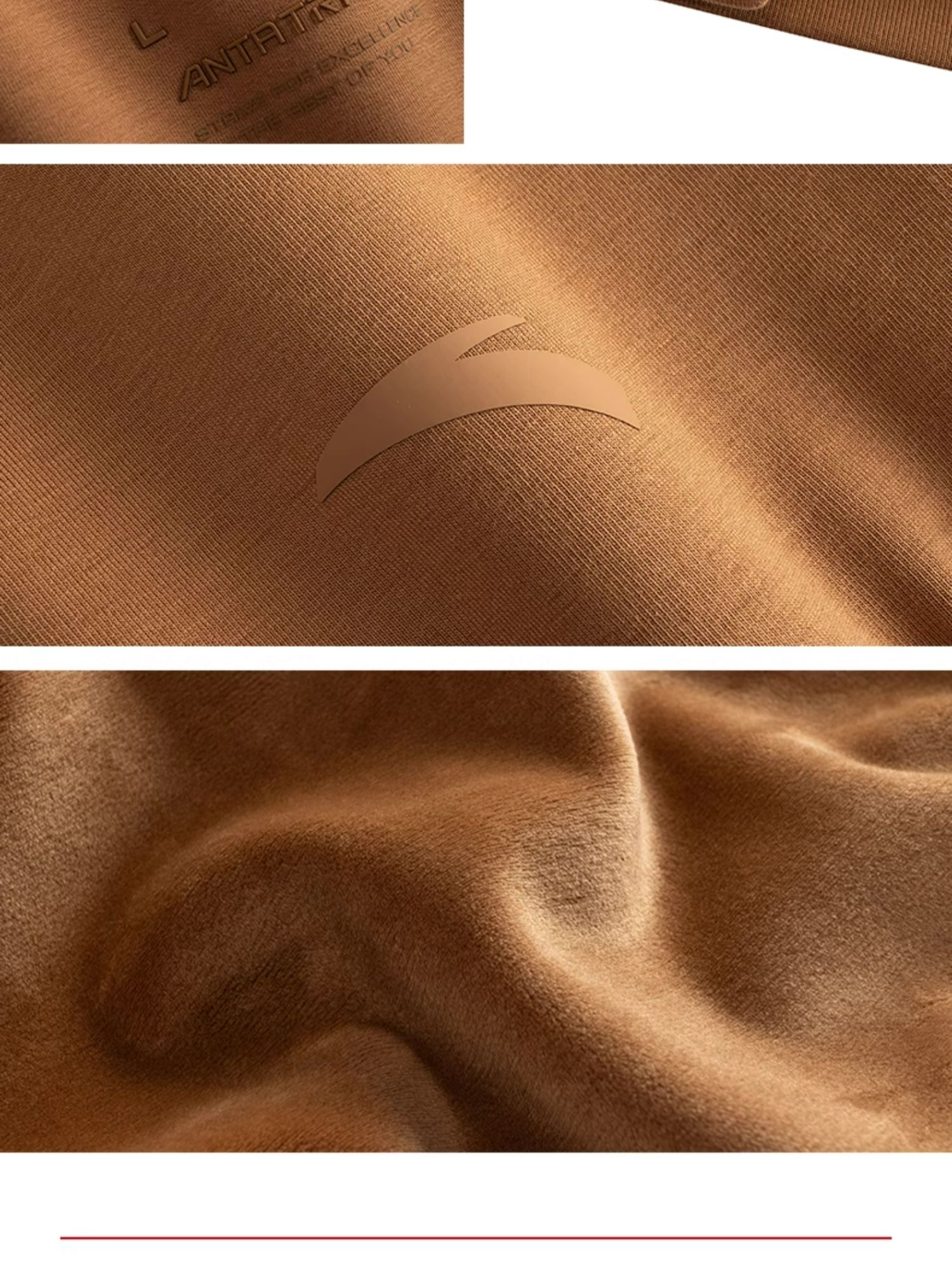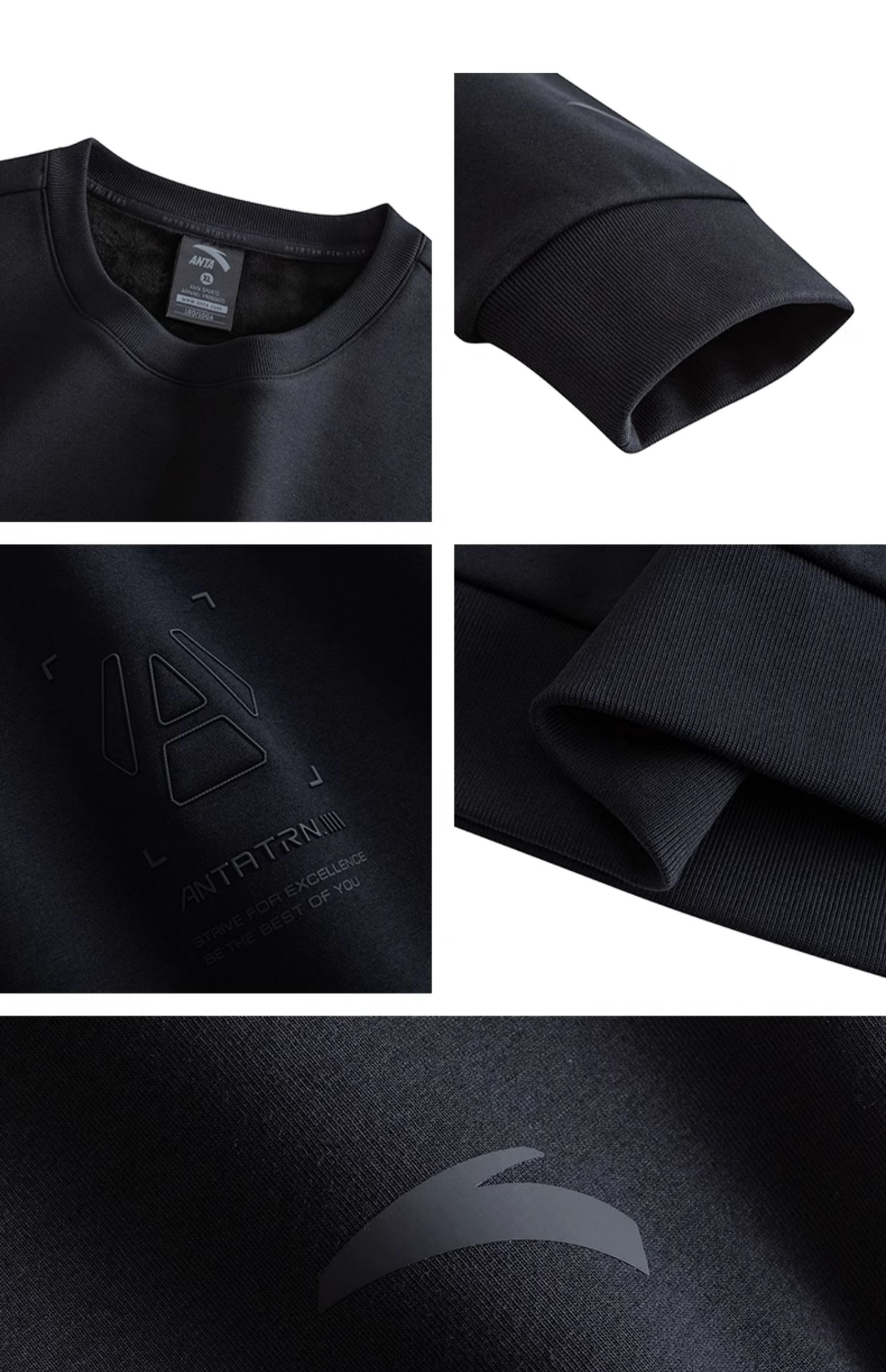 安踏加绒卫衣男士冬季圆领套头衫长袖针织保暖运动上衣152447727N