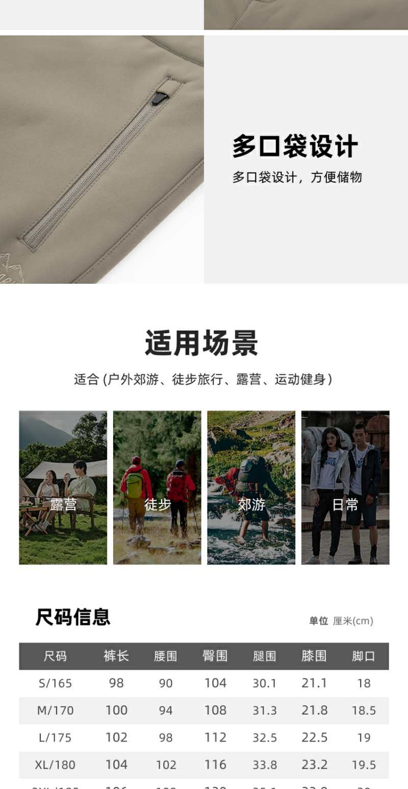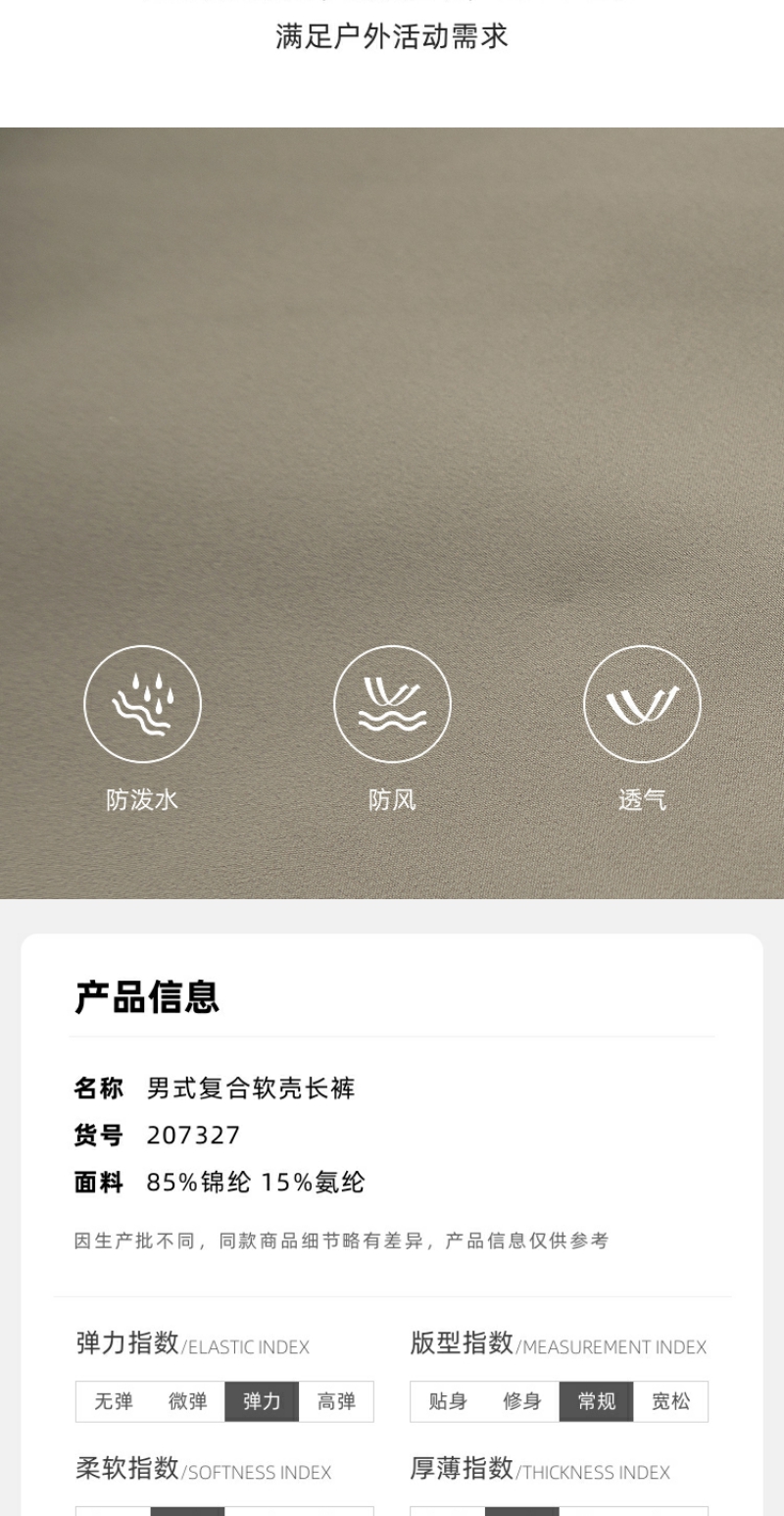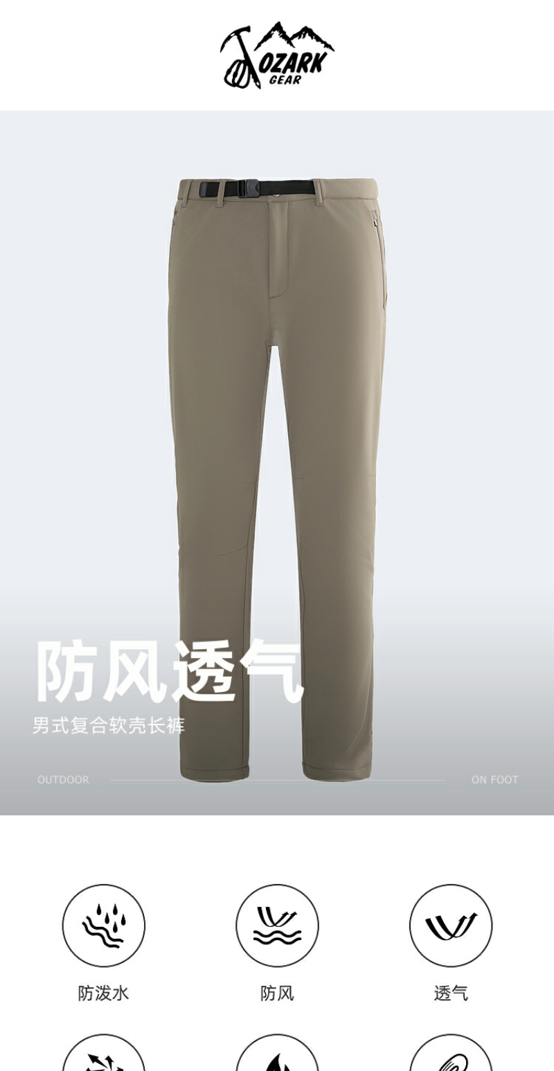 OZARK奥索卡户外23男弹力防泼水保暖徒步登山复合软壳长裤207327