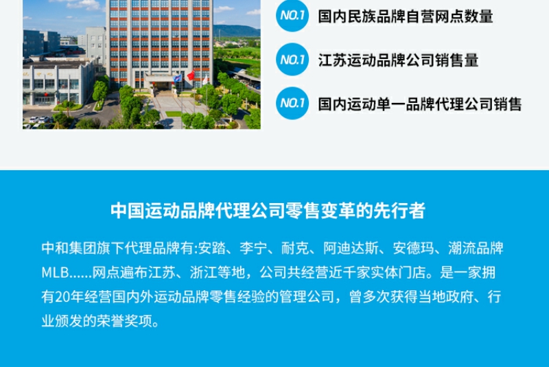 - 中和集团旗下代理安踏、李宁、耐克、安德玛、耐克、中国李宁、MIB等运动时尚品牌,网点遍布江苏、浙江、湖北等身份