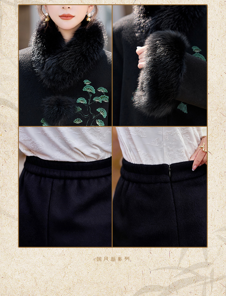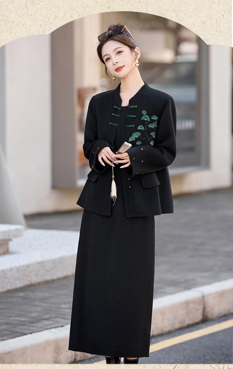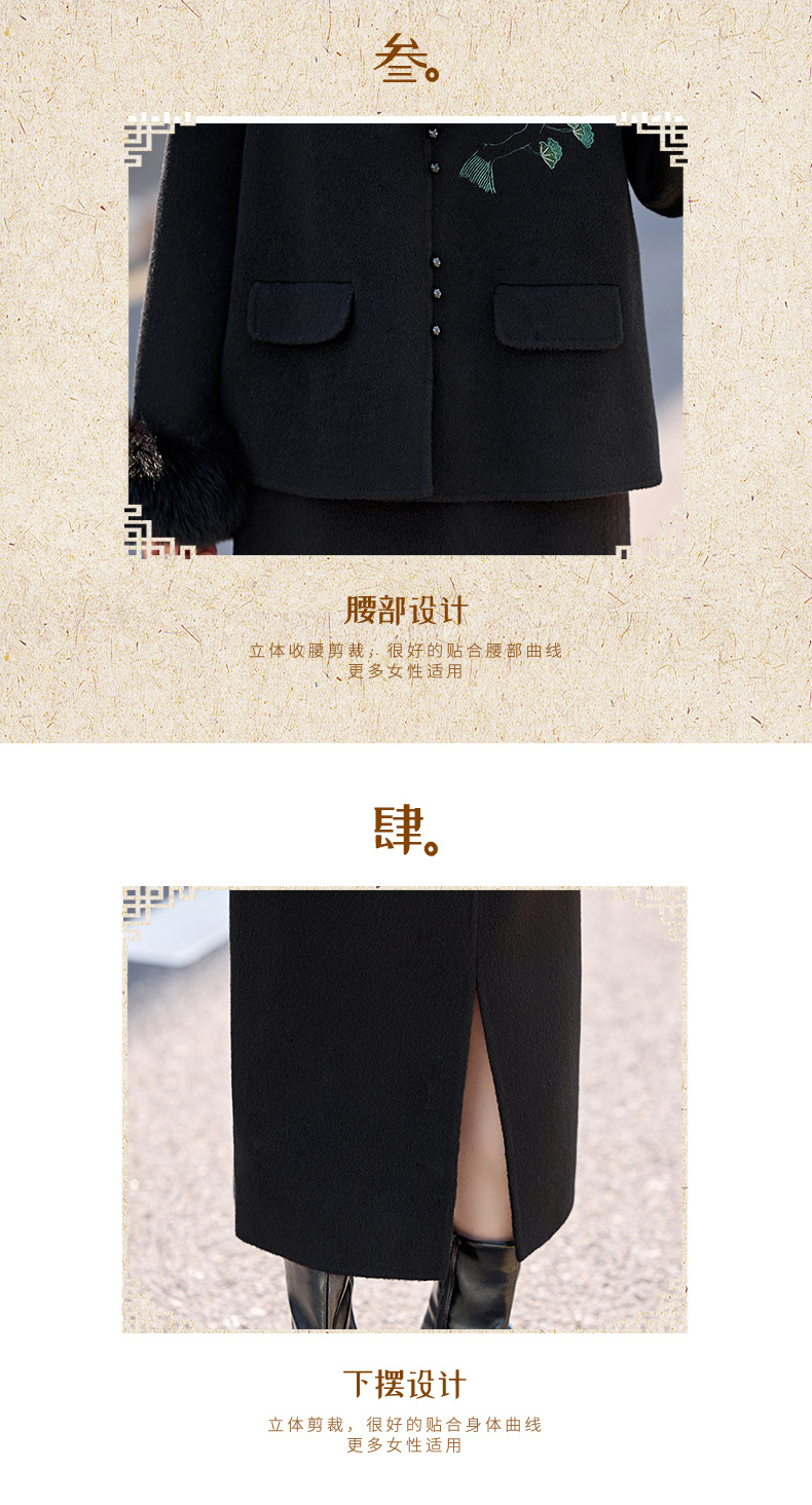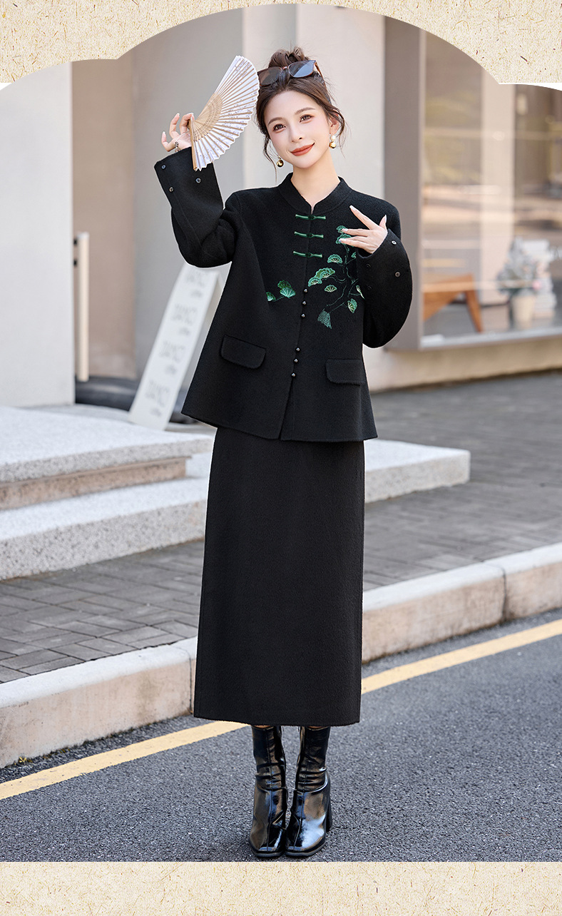 HR ZMFS25917新中式风套装裙气质刺绣立领盘扣呢子外套半身裙两件套 商品图3