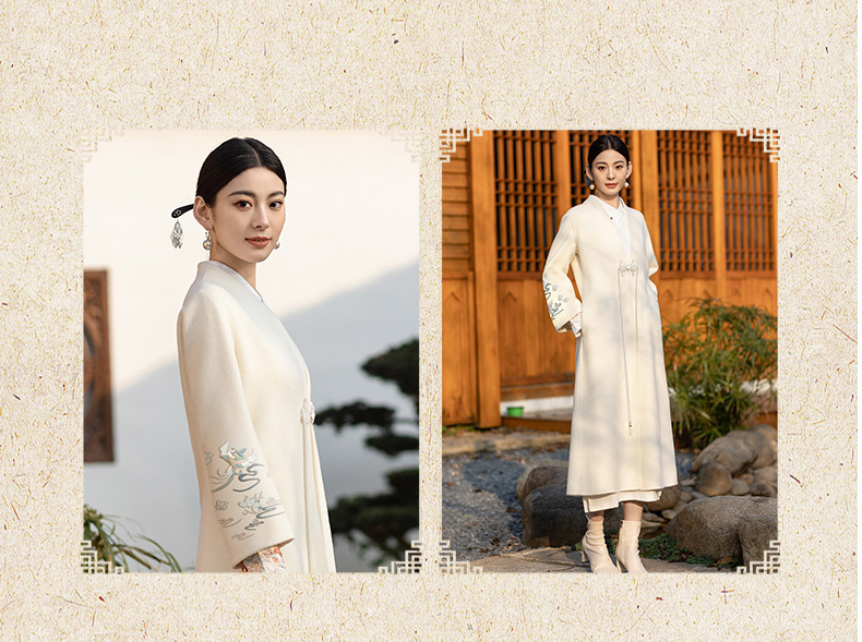 HR ZMFS25917新中式风套装裙气质刺绣立领盘扣呢子外套半身裙两件套 商品图4