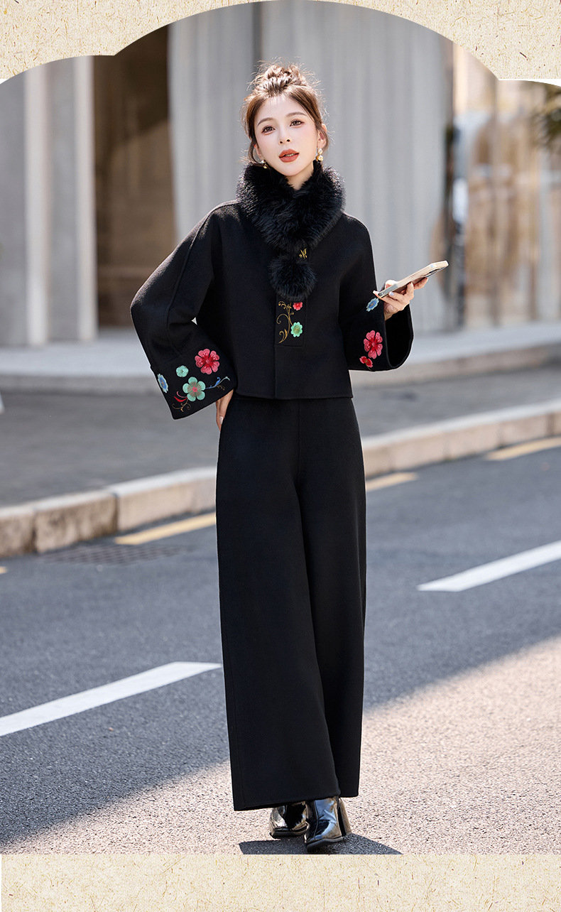 HR ZMFS25917新中式风套装裙气质刺绣立领盘扣呢子外套半身裙两件套 商品图1