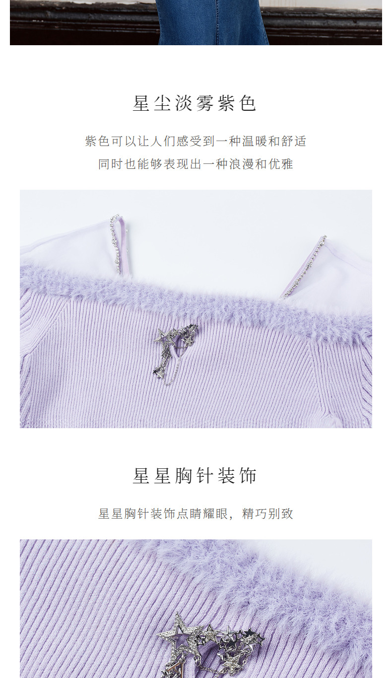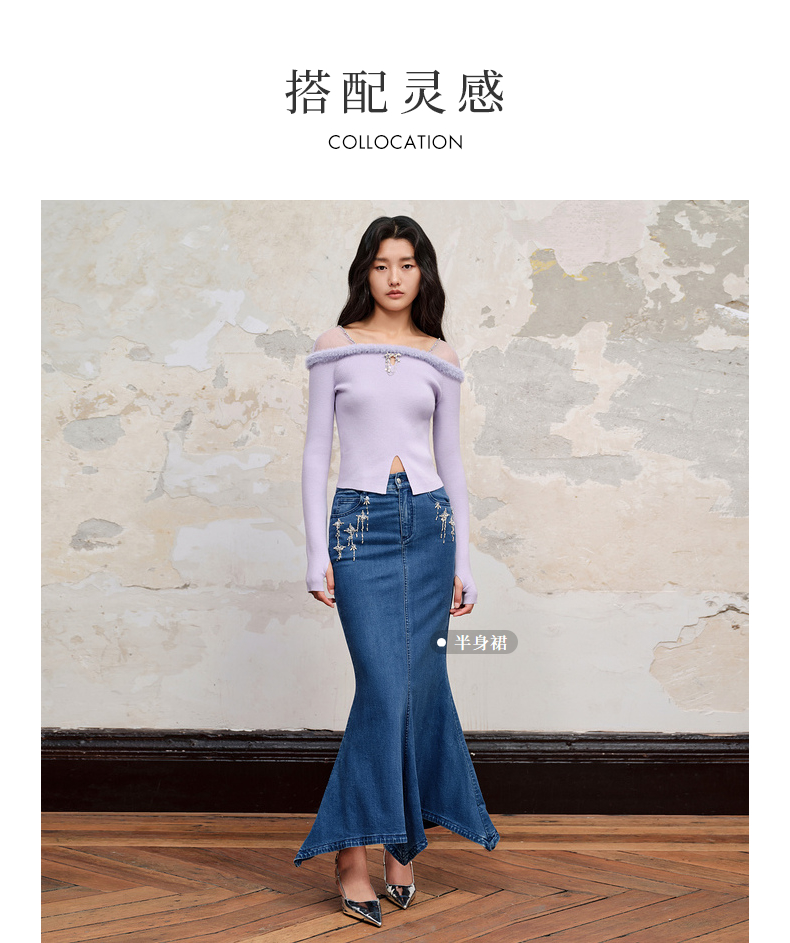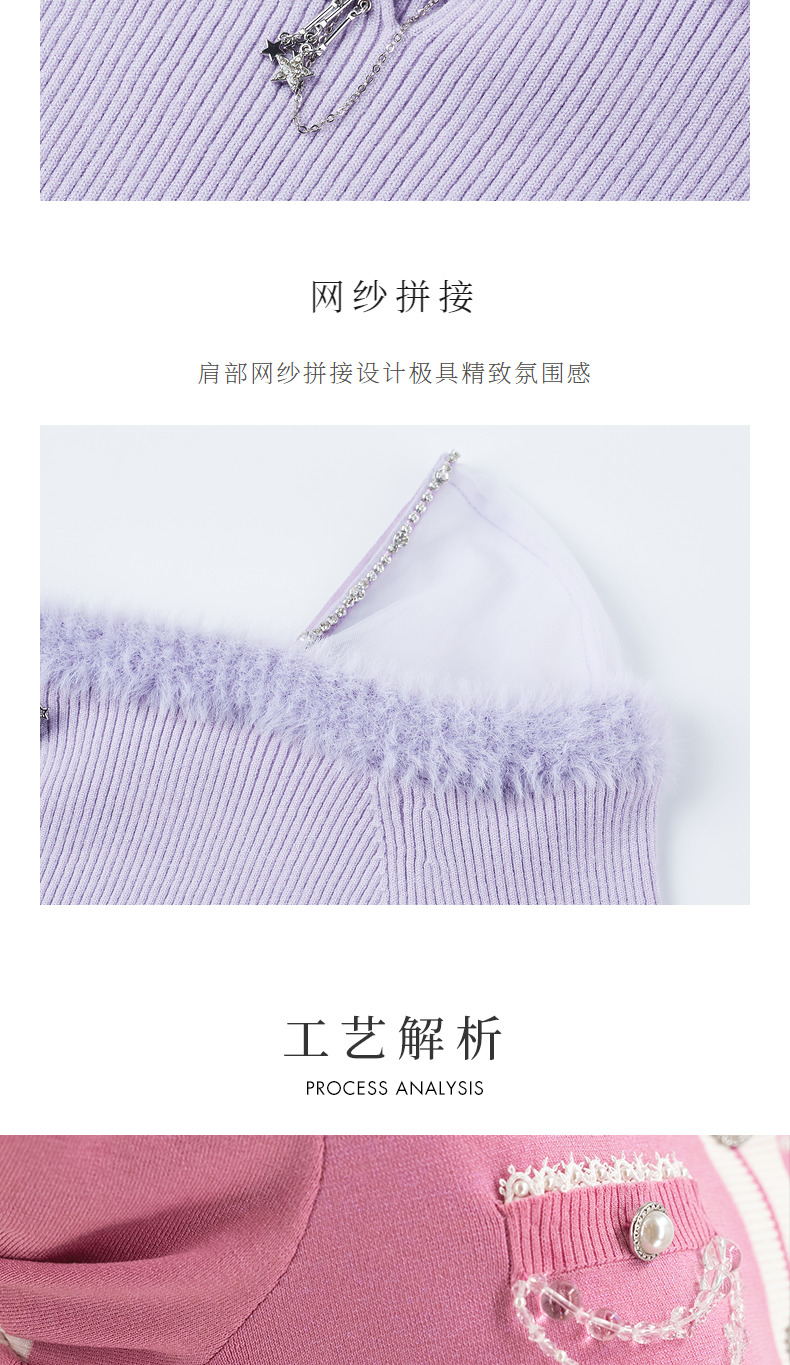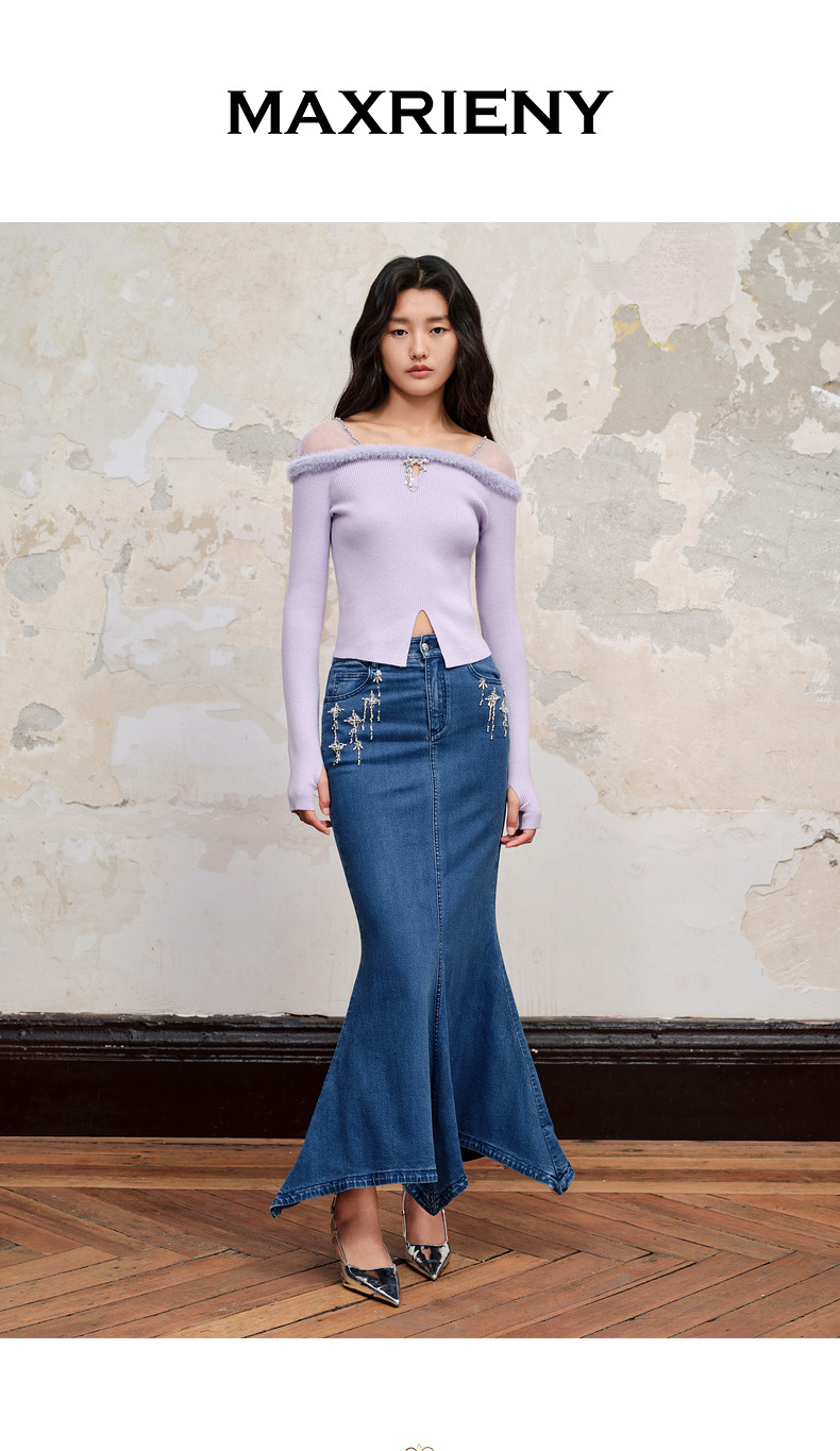 MAXRIENY*浪漫感网纱拼接套头针织修身长袖上衣(货号:MC88SW518)