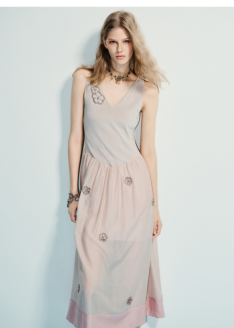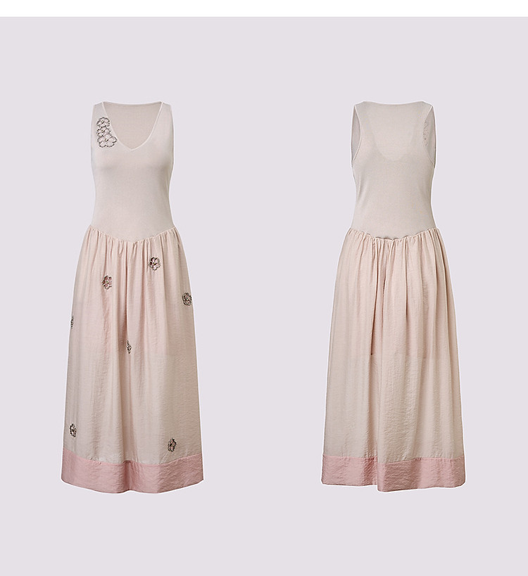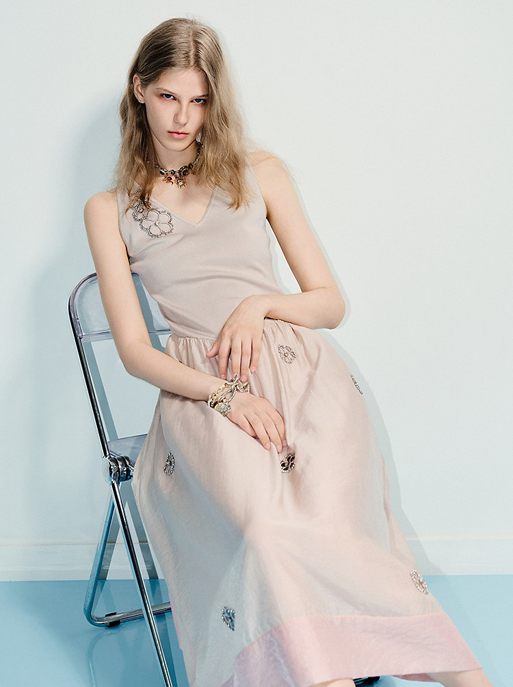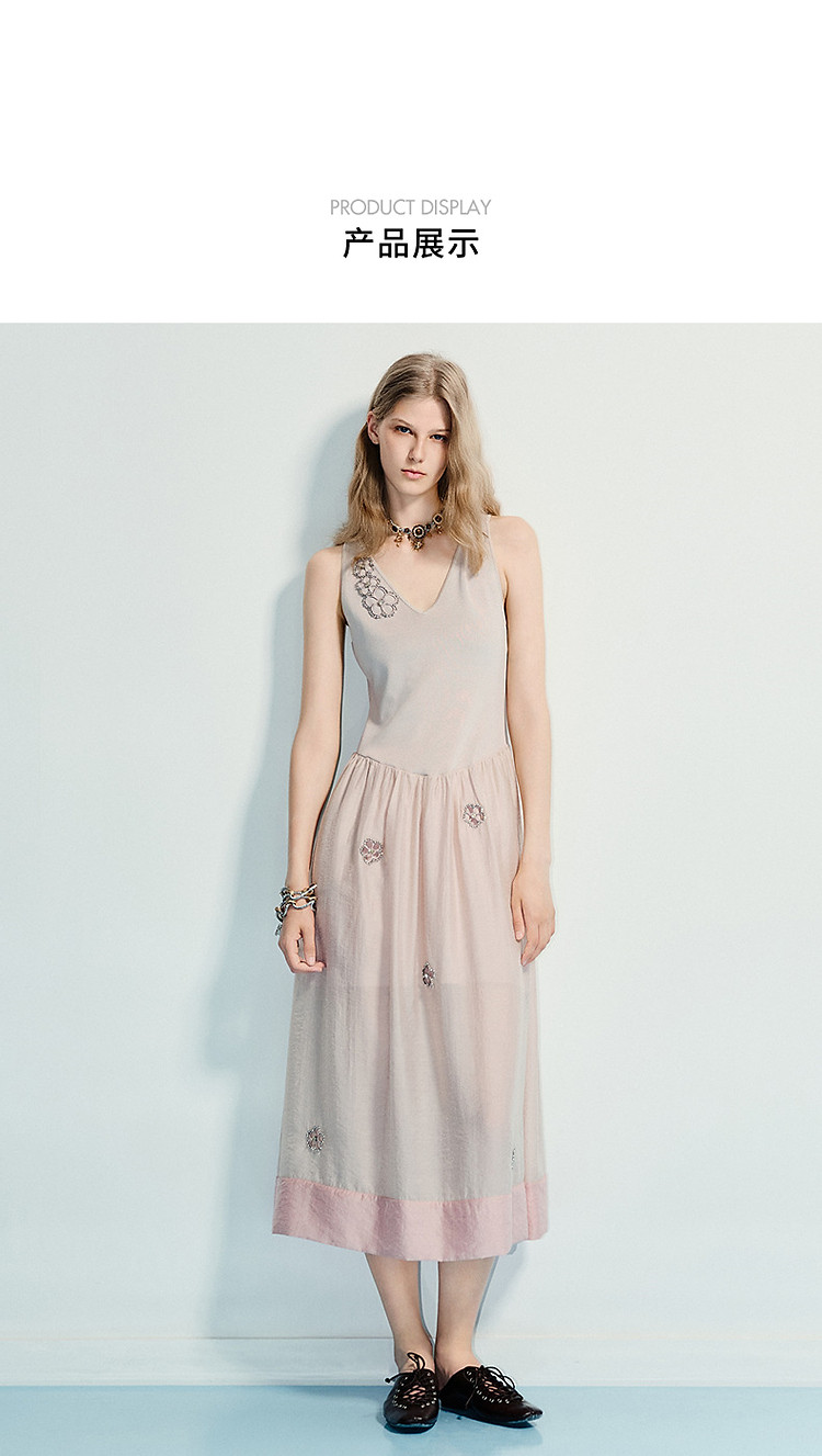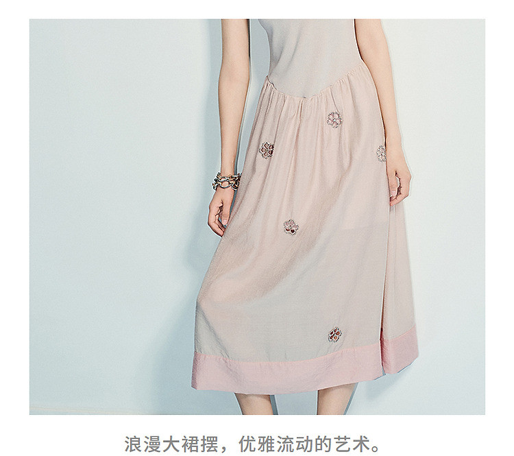 海岛度假风连衣裙25夏款收腰提花伞摆长裙(货号:MF86DR262E0001)