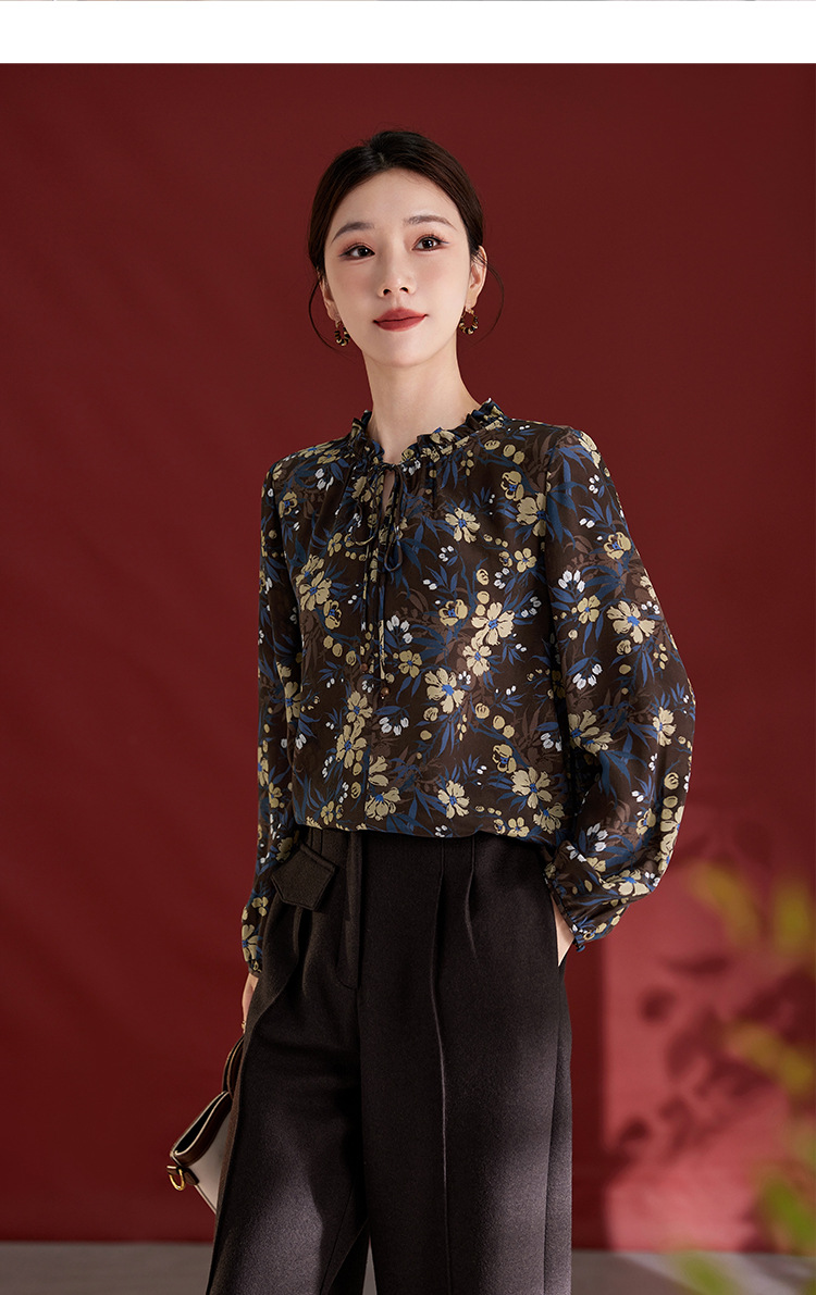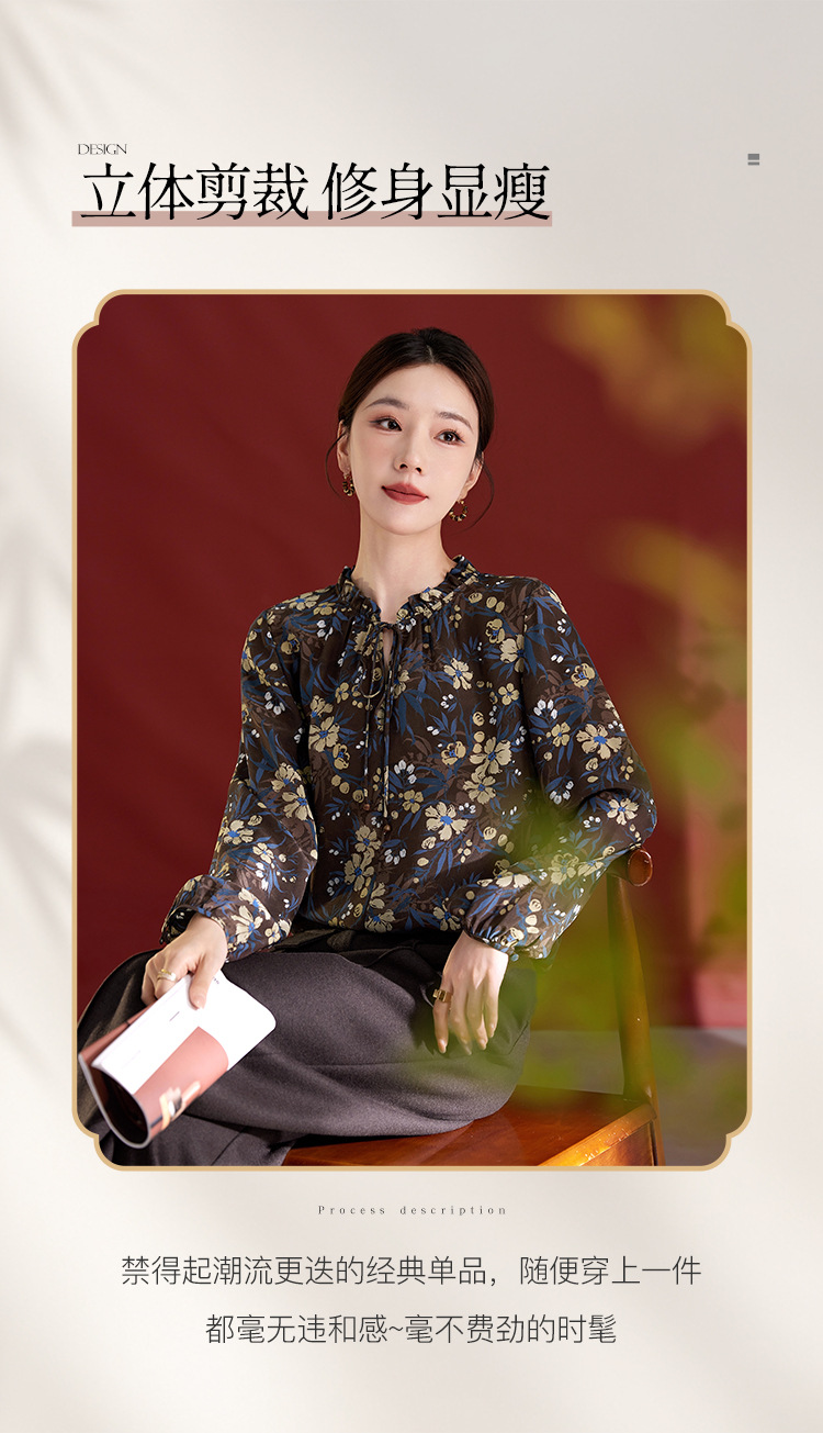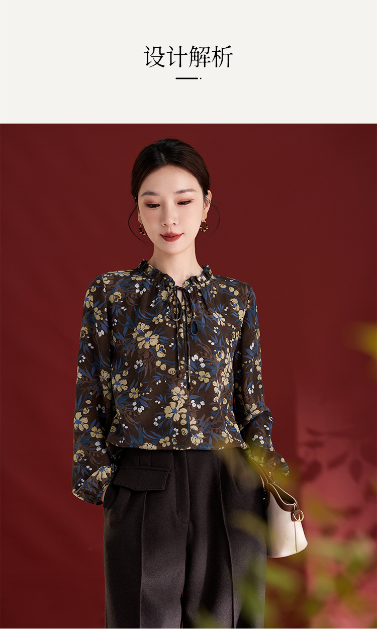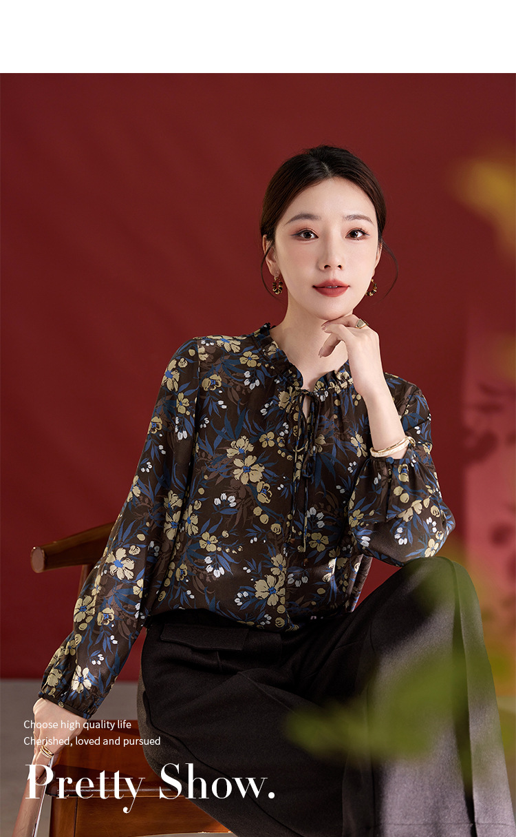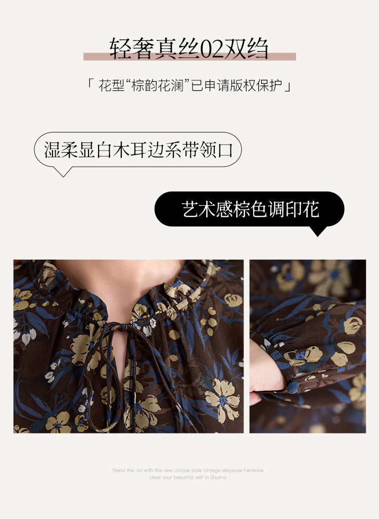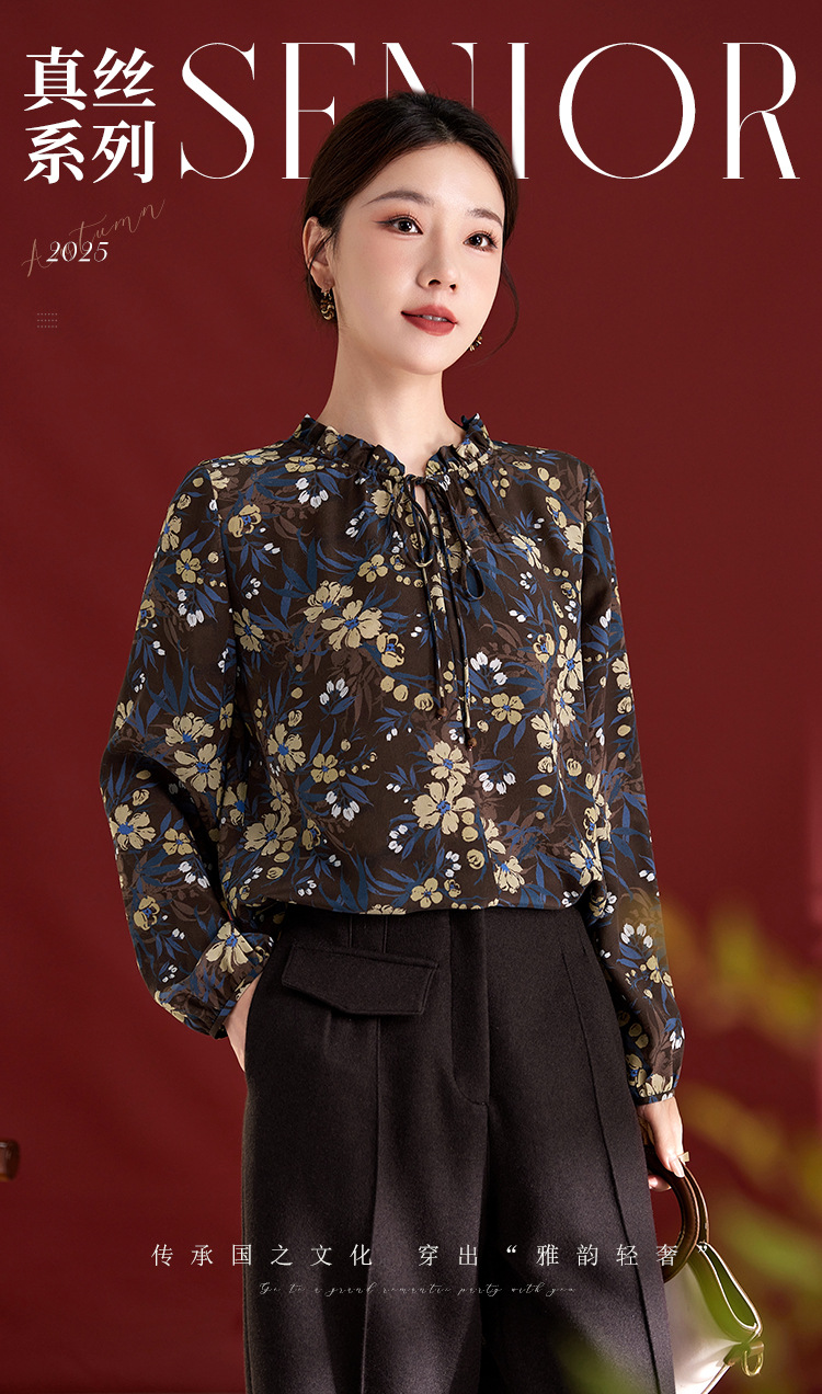 QS真丝桑蚕丝拼接双绉圆领轻奢上衣女100%桑蚕丝宽松秋季新款1765