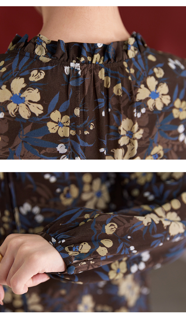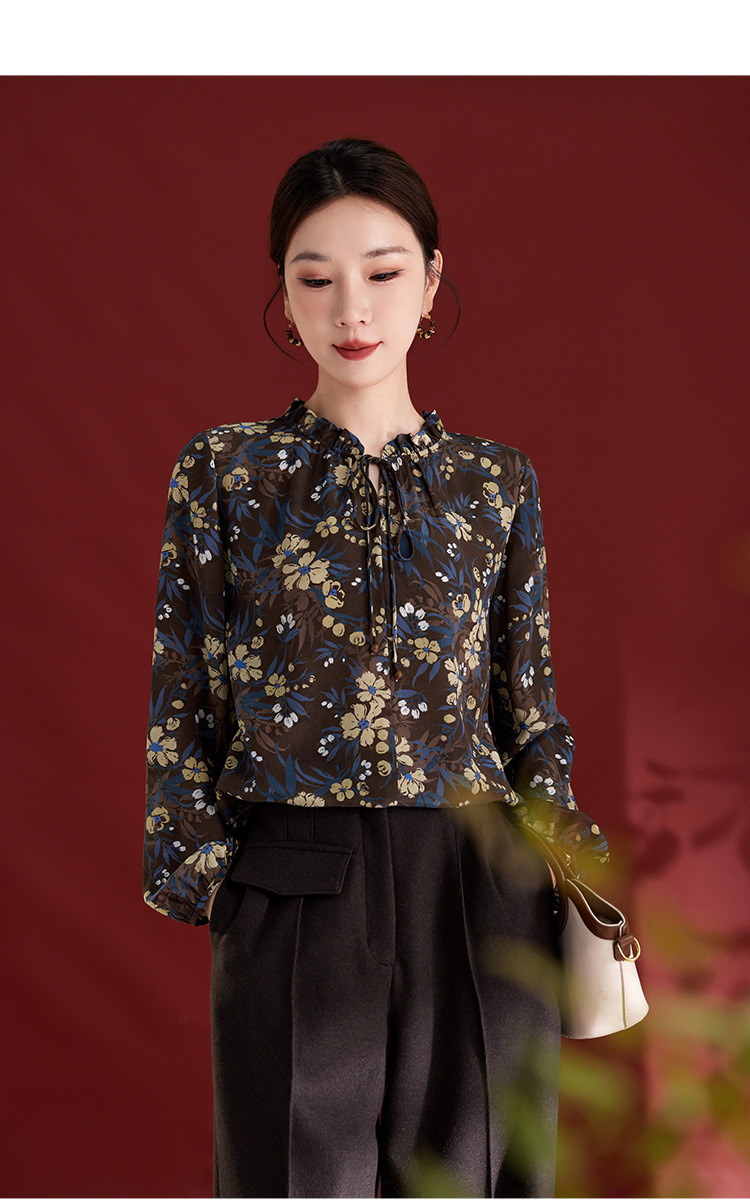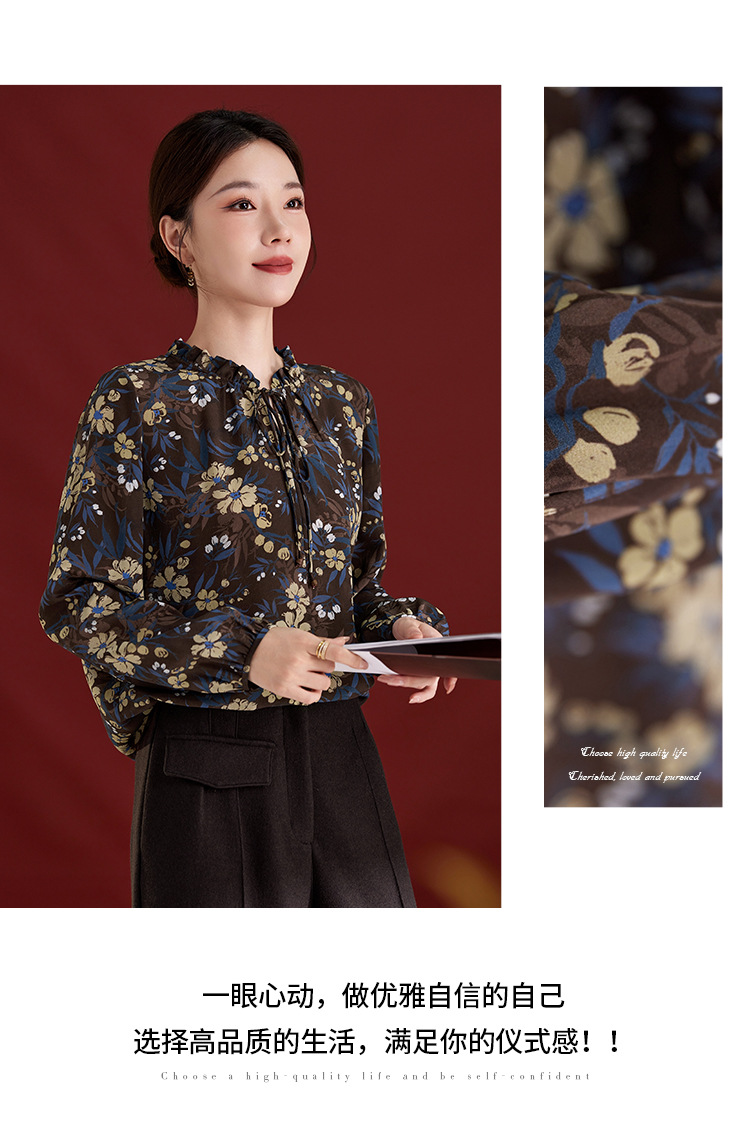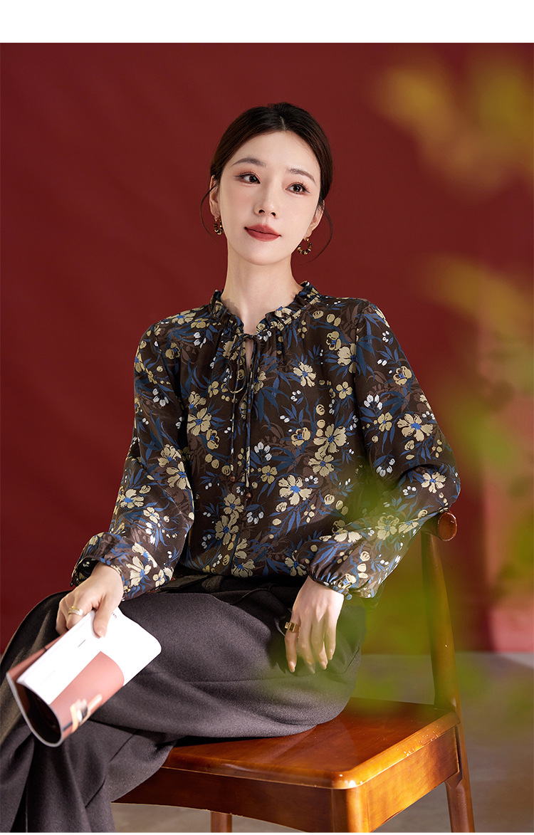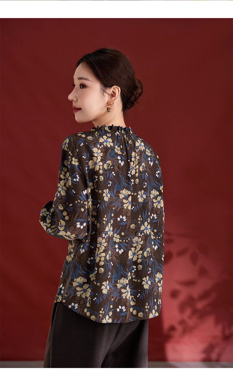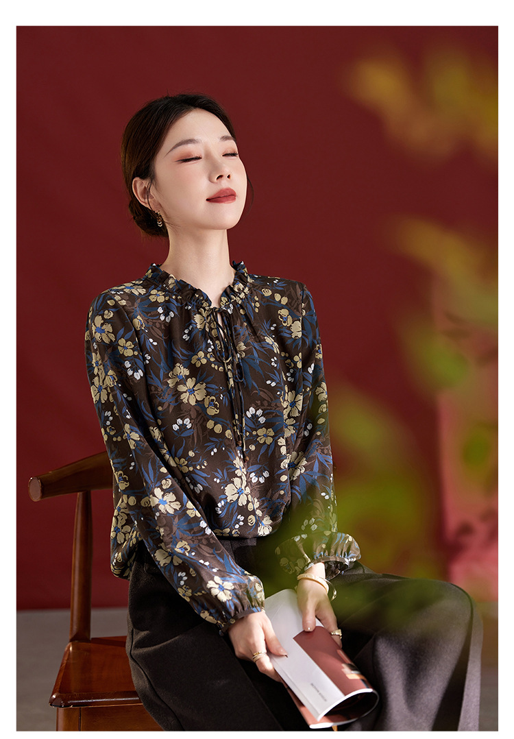 QS真丝桑蚕丝拼接双绉圆领轻奢上衣女100%桑蚕丝宽松秋季新款1765