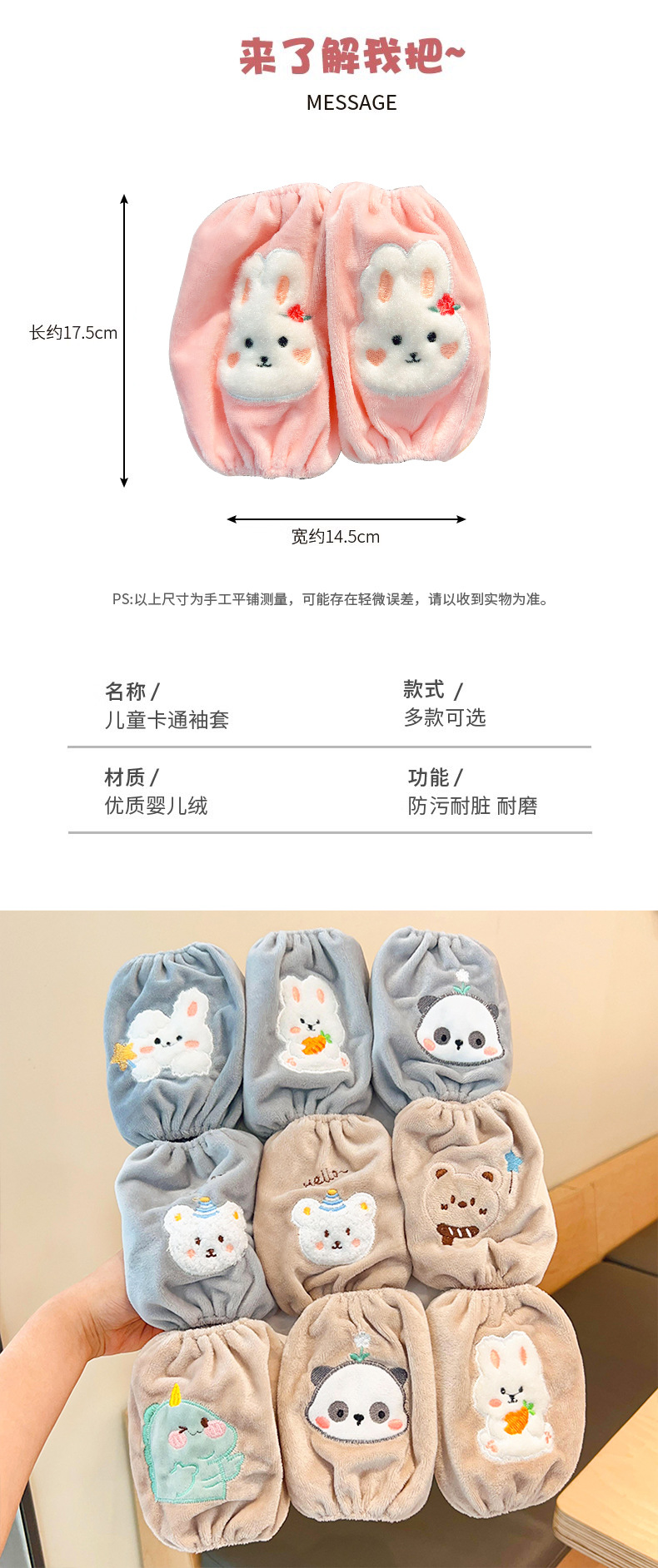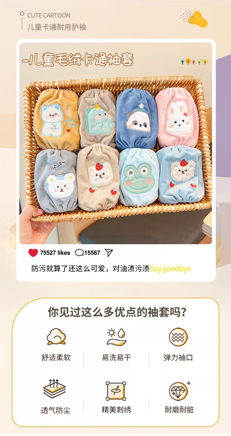 【萌趣可爱❗️柔软不勒】儿童袖套宝宝秋冬季小女孩可爱卡通防污耐脏男女童护袖婴幼儿套袖。jc