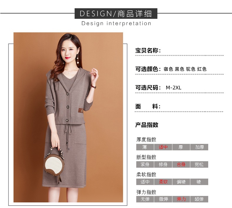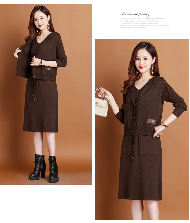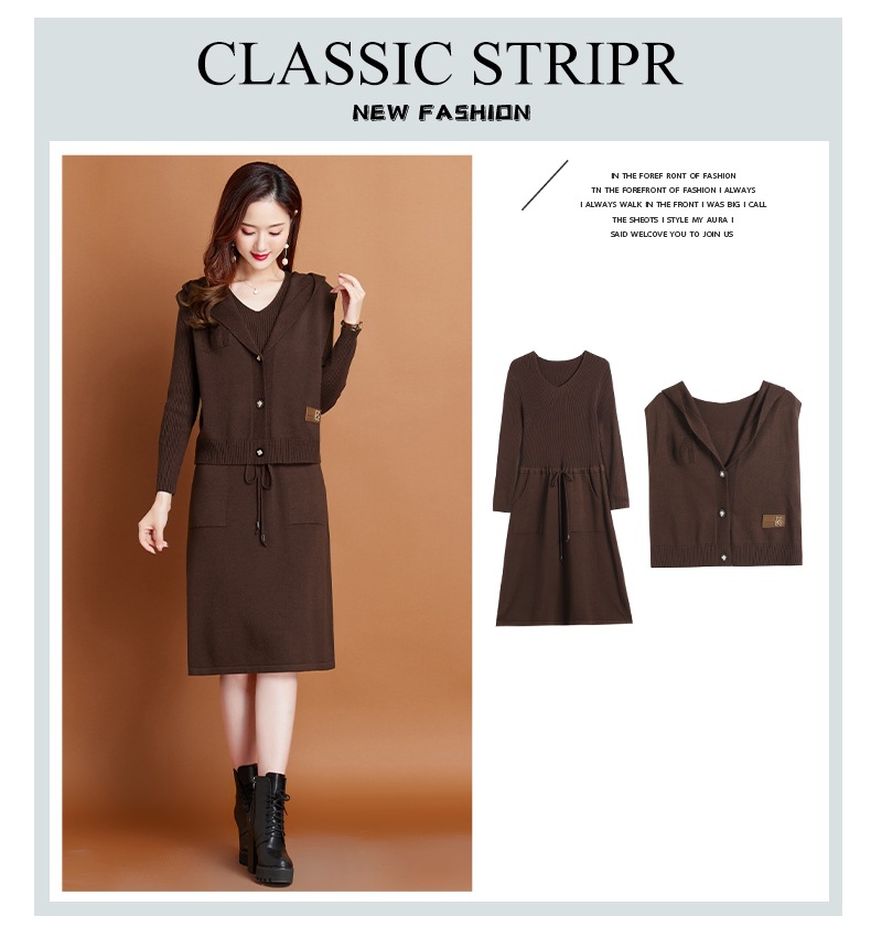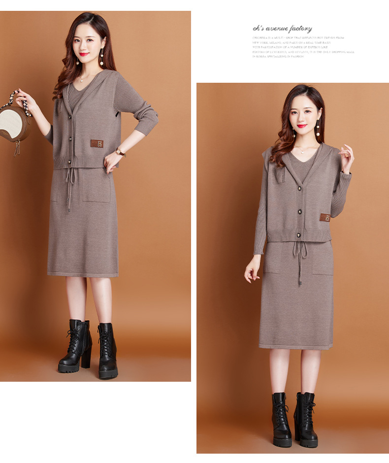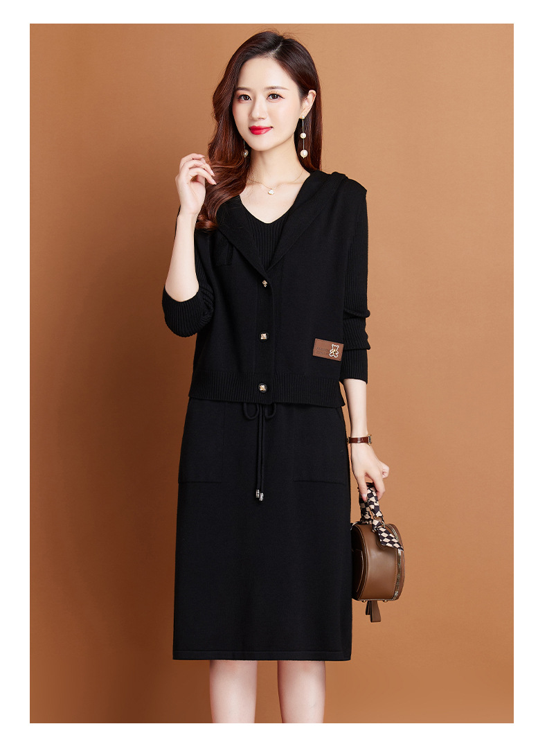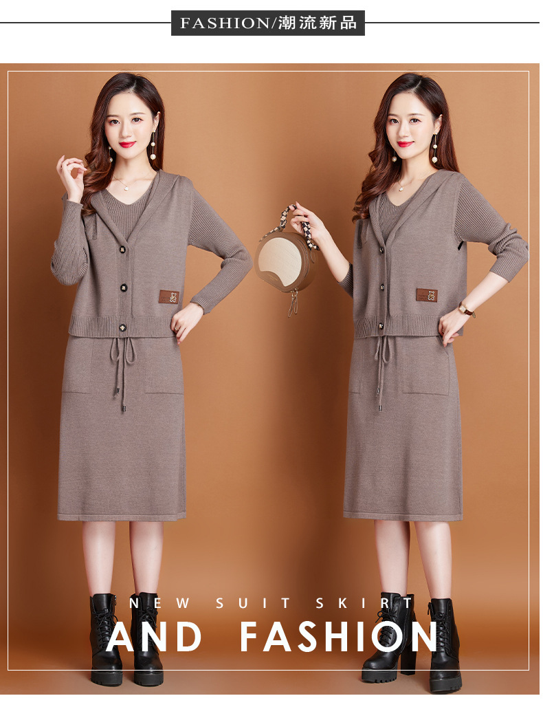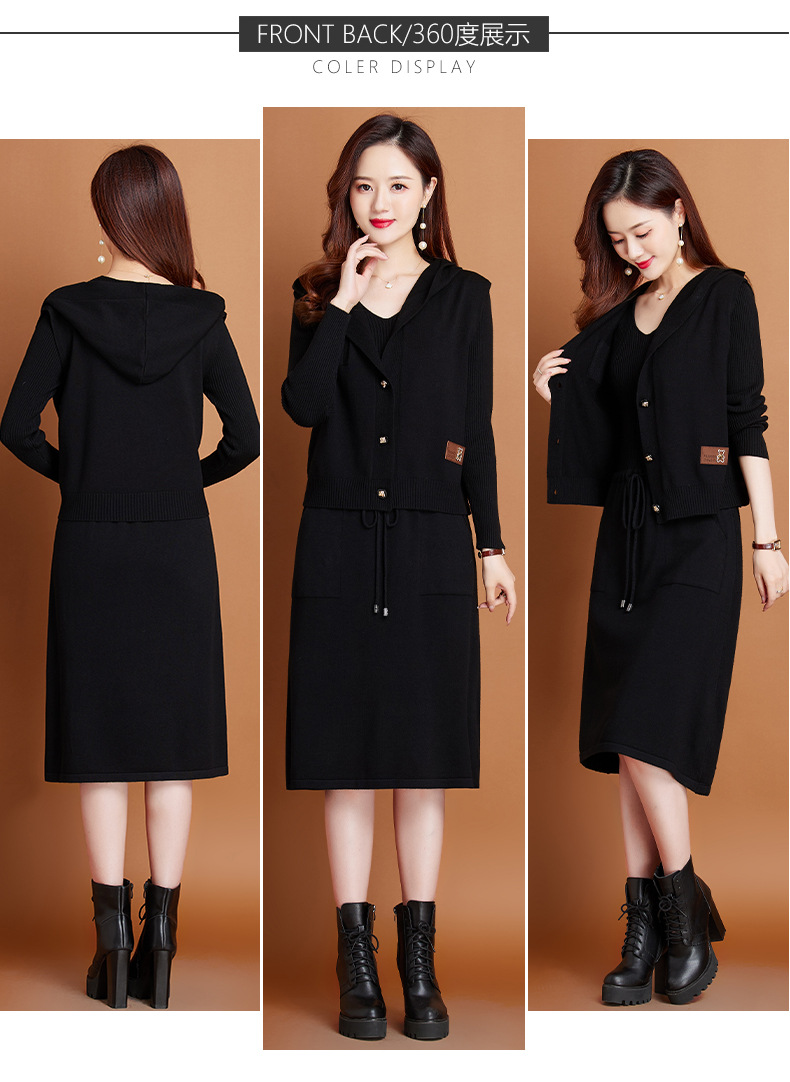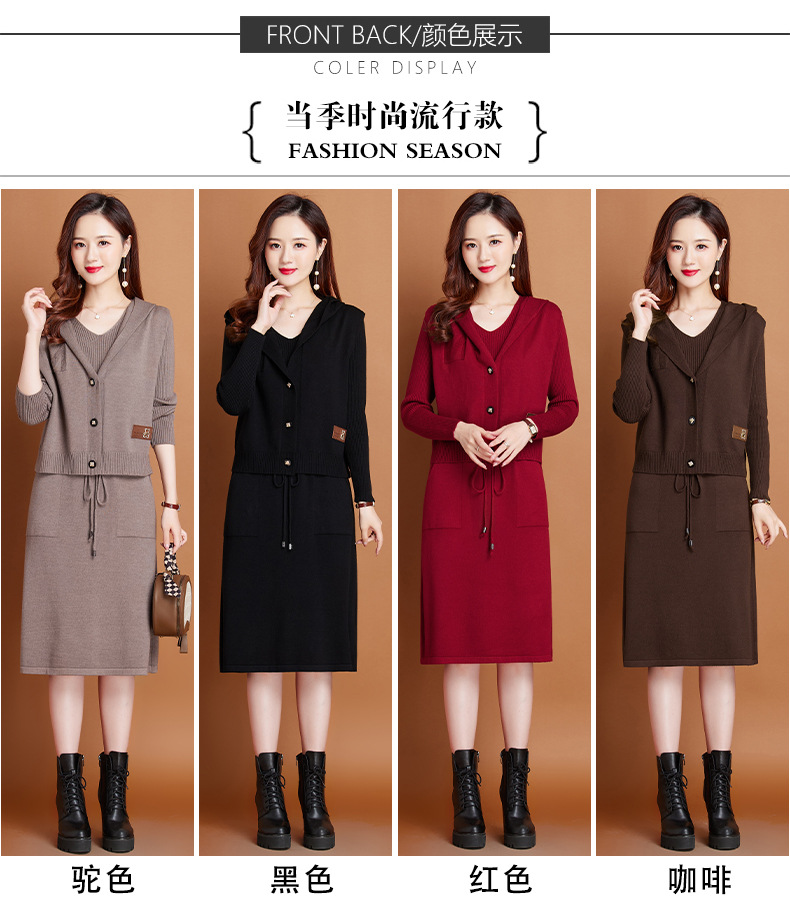 DZX-5830两件套连衣裙女秋冬2025新款休闲连帽针织毛衣裙秋季显瘦套装裙子