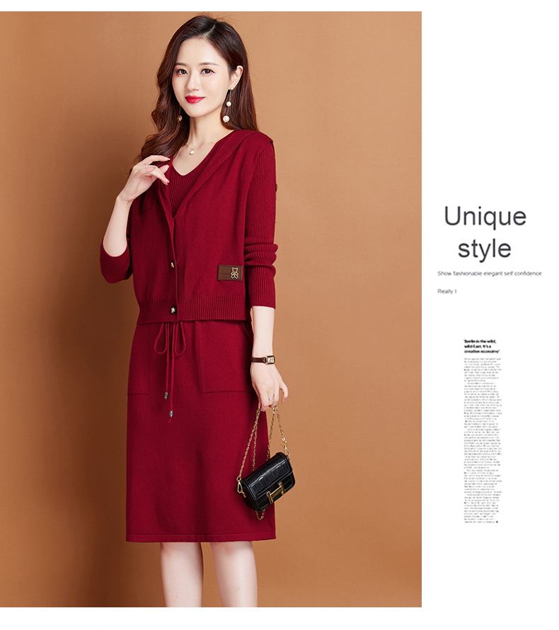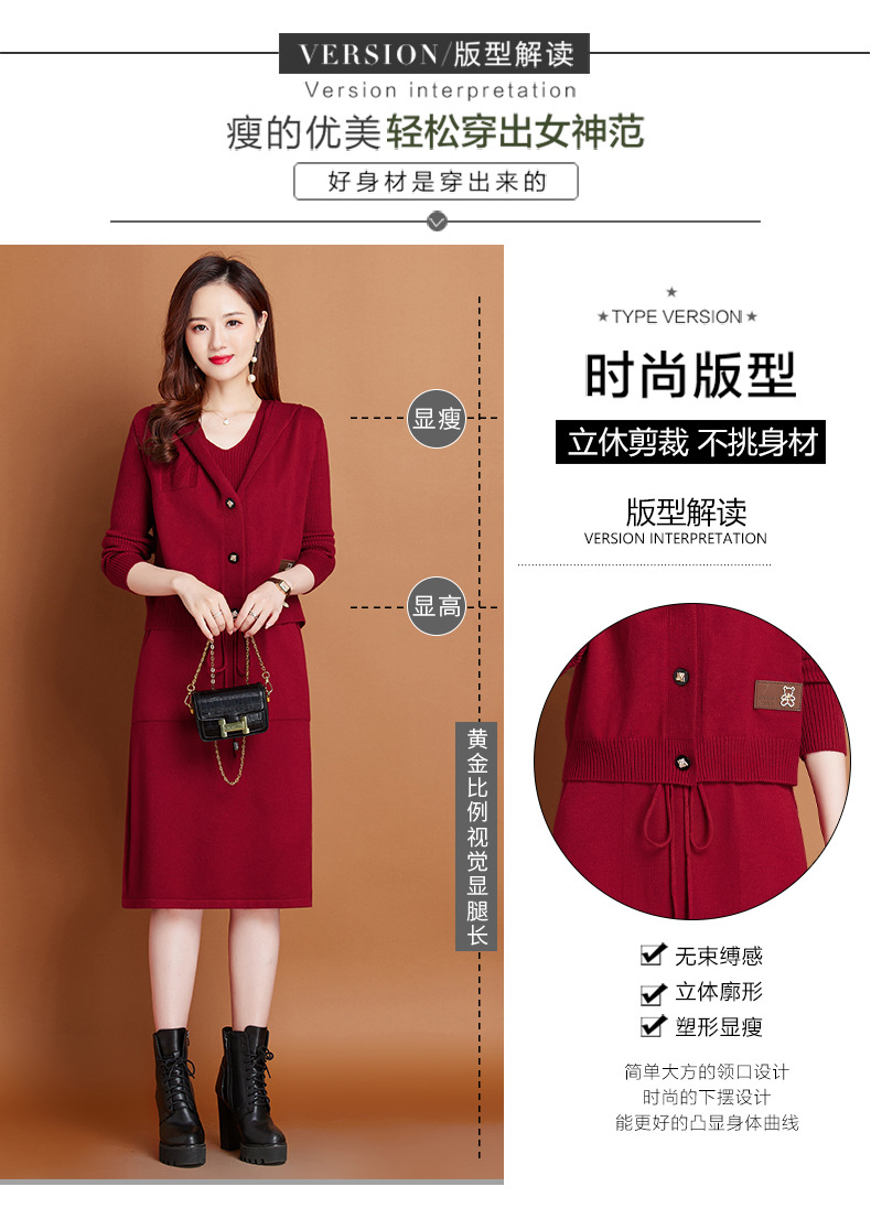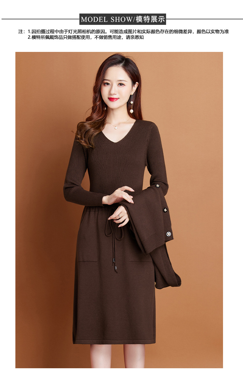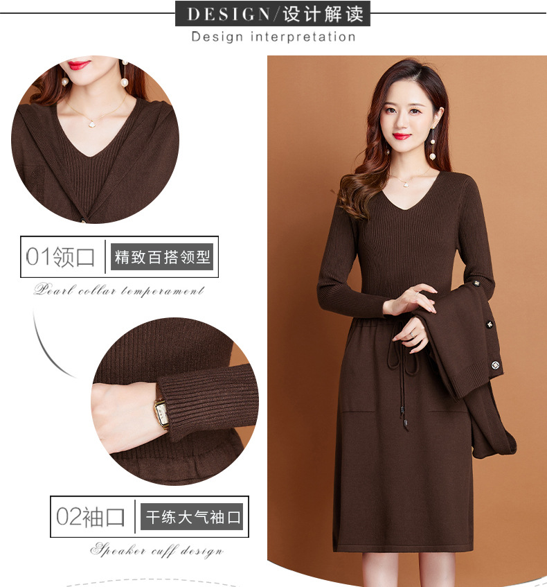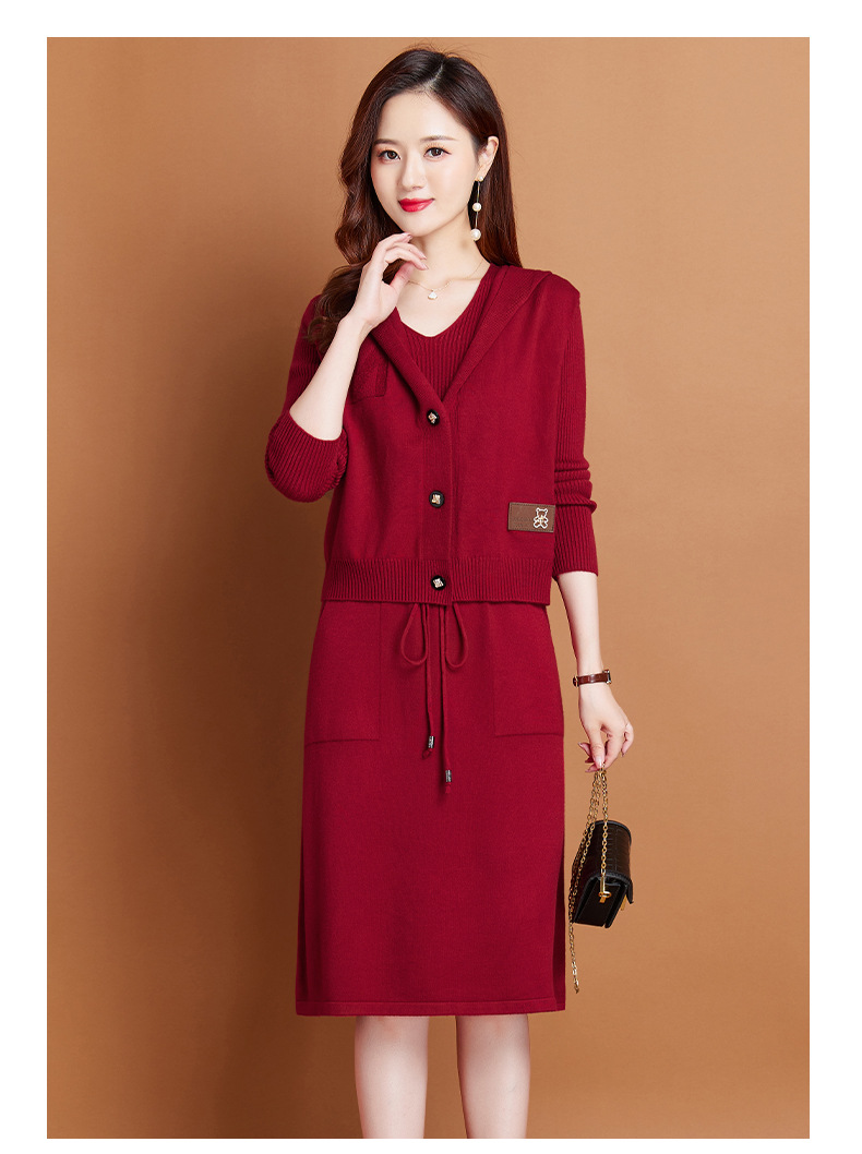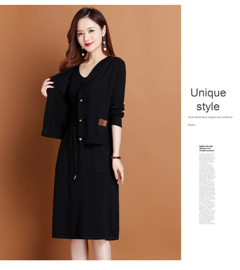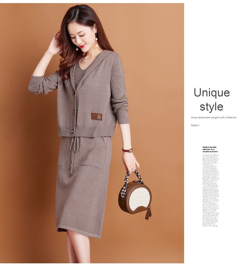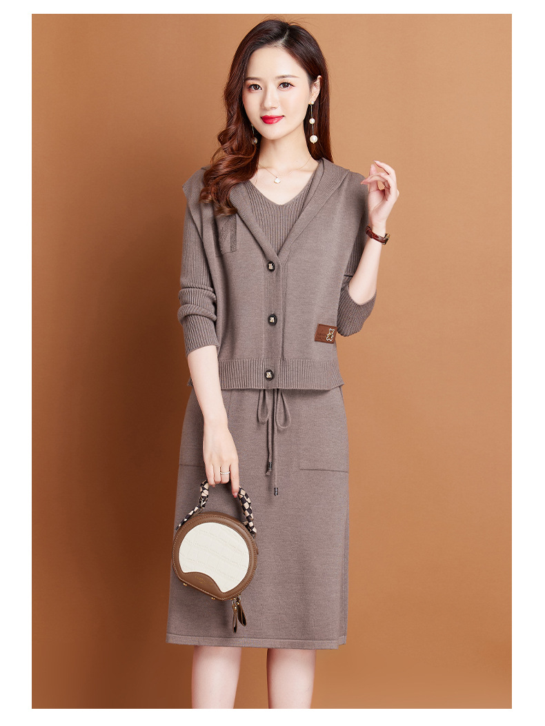 DZX-5830两件套连衣裙女秋冬2025新款休闲连帽针织毛衣裙秋季显瘦套装裙子