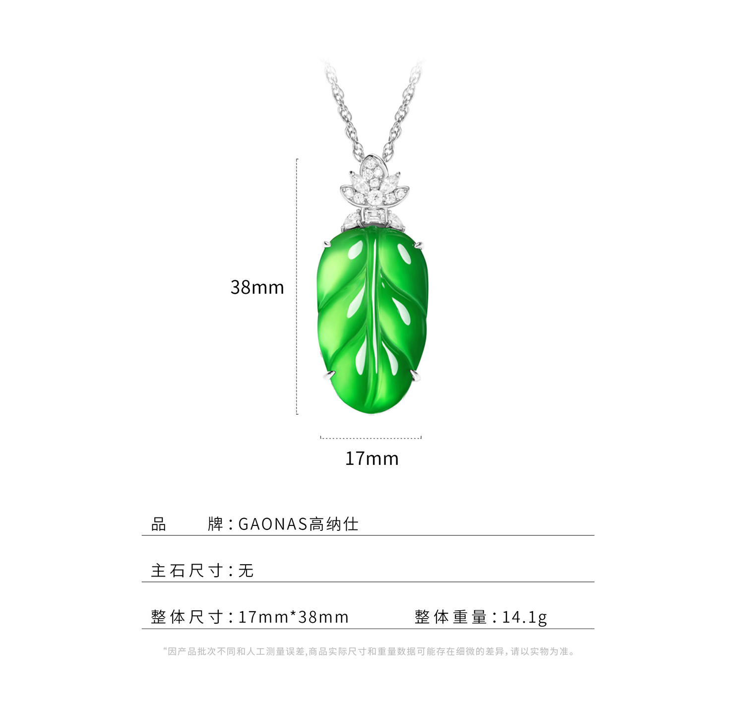 GAONAS 大叶有成贵气老钱绿叶子项链11519XG
