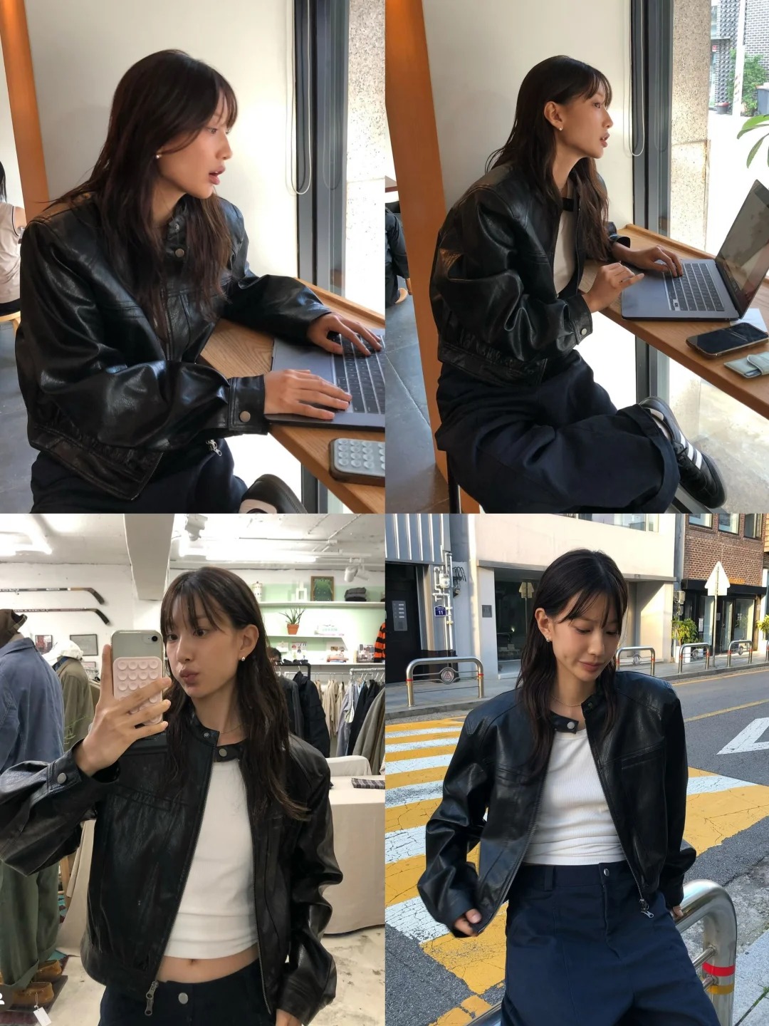 酷酷的皮衣,有着让人无法抗拒的磁场魅力,时尚衣橱里不可缺的经典单品,自带一抹与生俱来的光泽感,在人群中也是回头率满满。