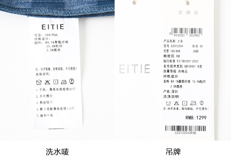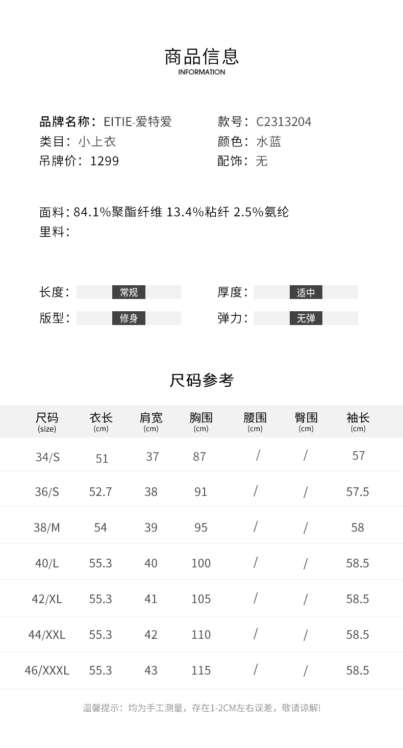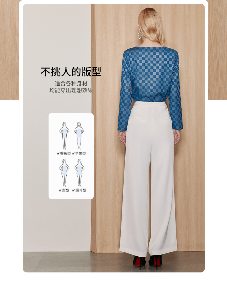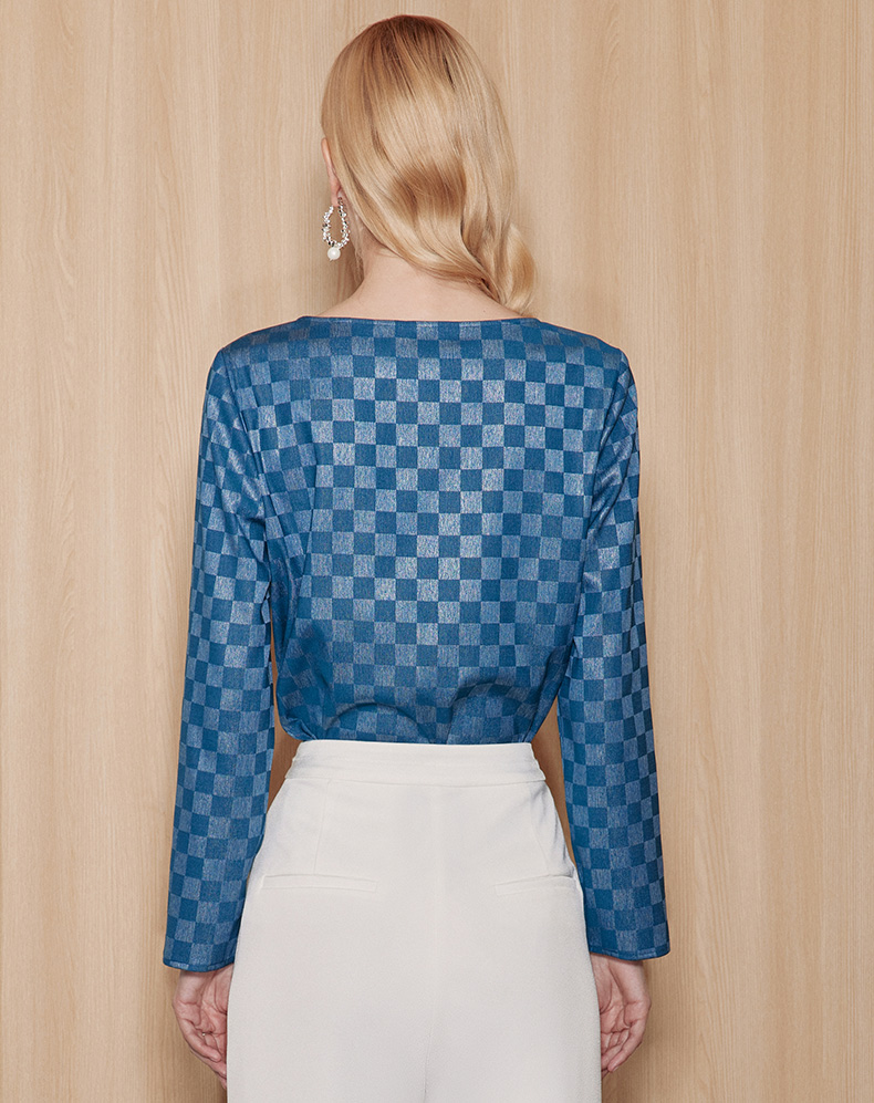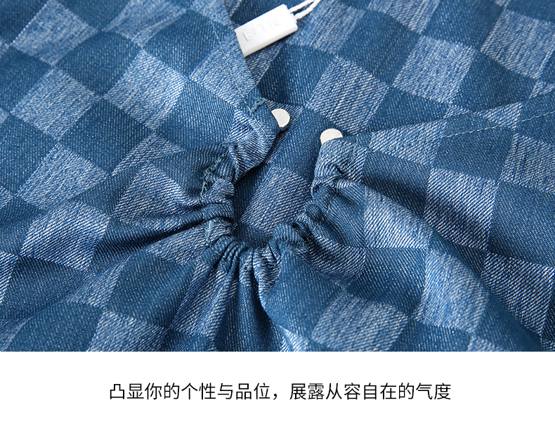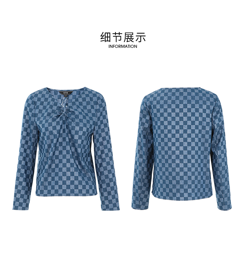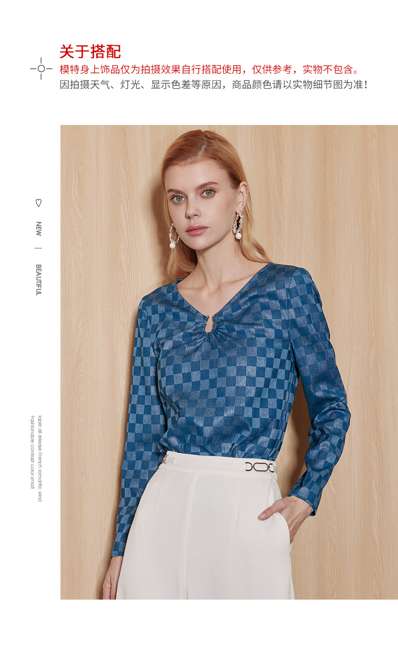 EITIE爱特爱气质V领时尚蓝色印花高级通勤直筒显瘦上衣秋季新款C2313204