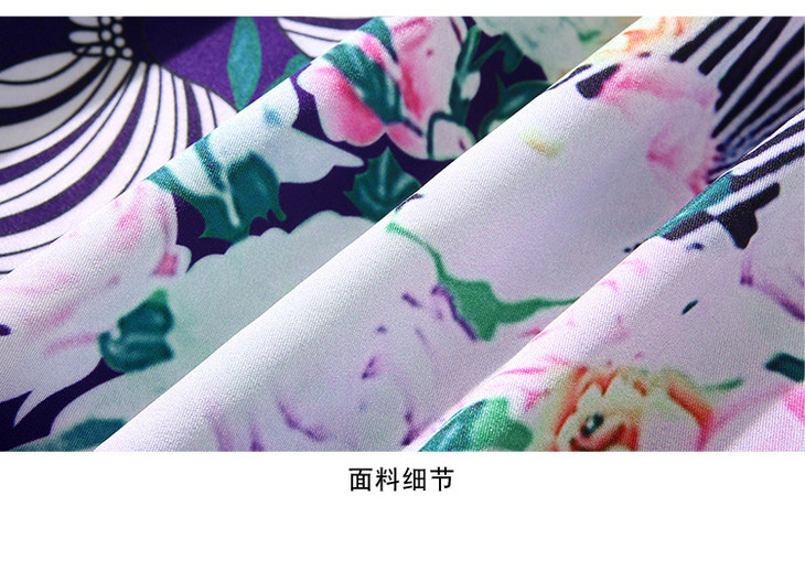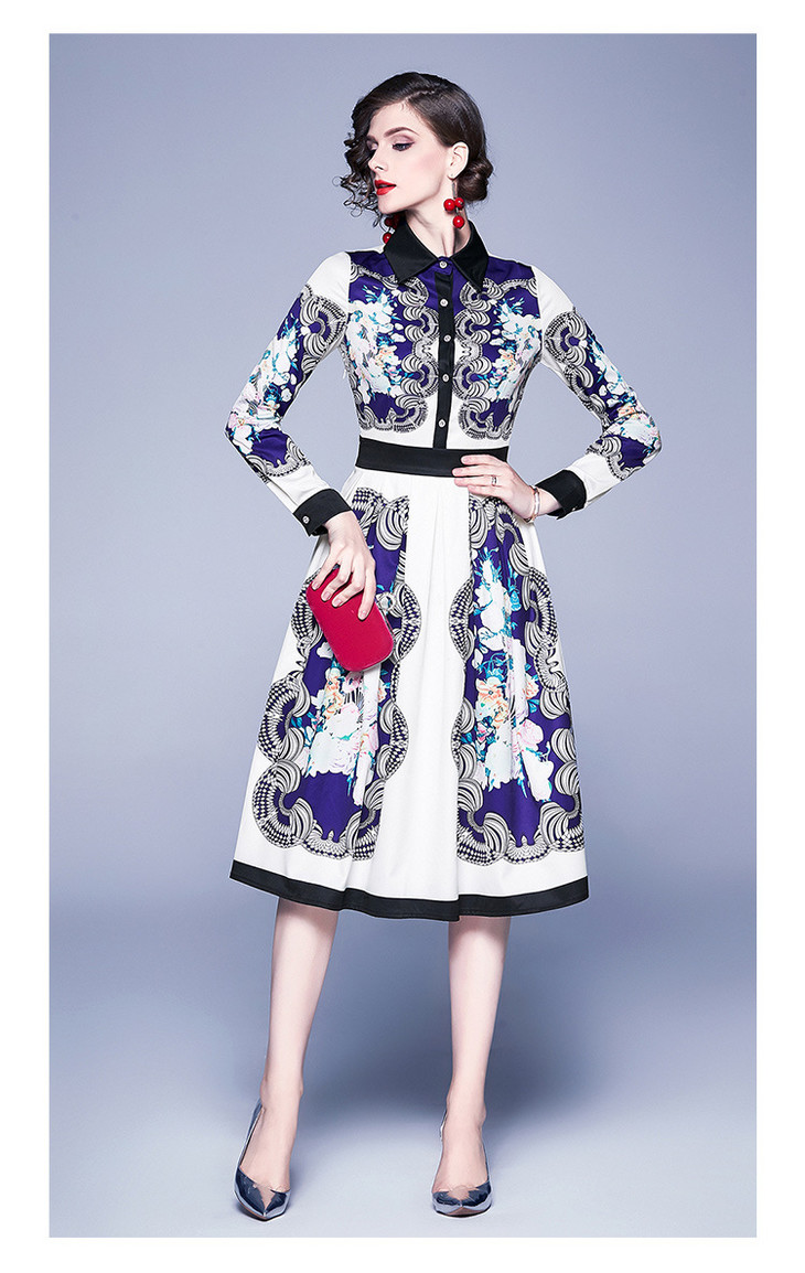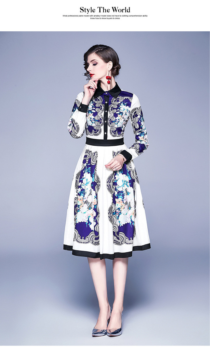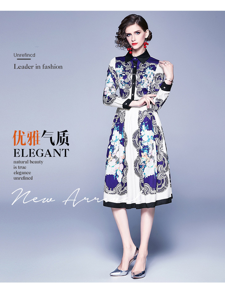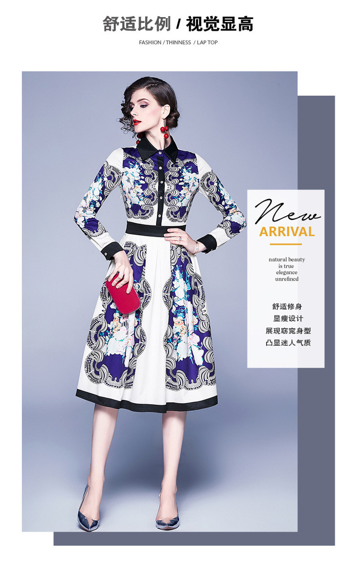 JSM-N609-8803欧美时尚修身长袖方领中长款印花连衣裙