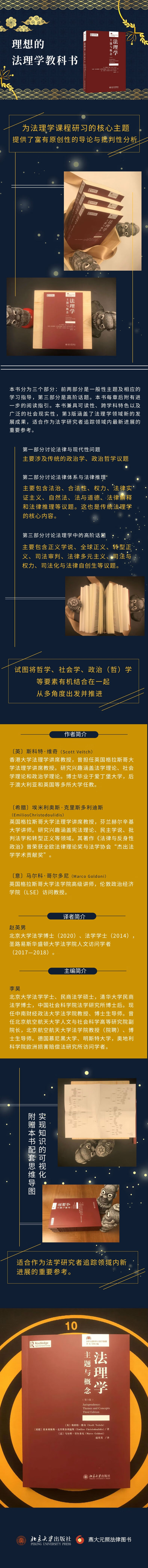 《法理学:主题与概念(第3版)》为法理学课程研习的核心主题提供了富有原创性的导论与批判性分析。本书分为三个部分:前两部分是一般性主题及相应的学习指导,第三部分是高阶话题。本书每章后附有进一步的阅读指引。本书兼具可读性、跨学科特色以及广泛的社会现实性,第3版涵盖了法理学领域的*新发展成果,适合作为法学研究者追踪领域内*新进展的重要参考。具体而言,本书包含如下内容: *一部分讨论法律与现代性问题,主要涉及传统的政治学、政治哲学议题;第二部分讨论法律体系与法律推理,主要包含法治、合法性、权力、法律实证主义、自然法、法与道德、法律解释和法律推理等十个议题。这也是传统法理学的核心内容;第三部分讨论法理学中的高阶话题,主要包含正义学说、全球正义、转型正义、司法审判、法律多元主义、司法与权力、司法化与法律自创生等十个子议题。本书的论述并没有局限在某个既有视角内,而是试图将哲学、社会学、政治(哲)学等要素有机结合在一起,从多角度出发推进。