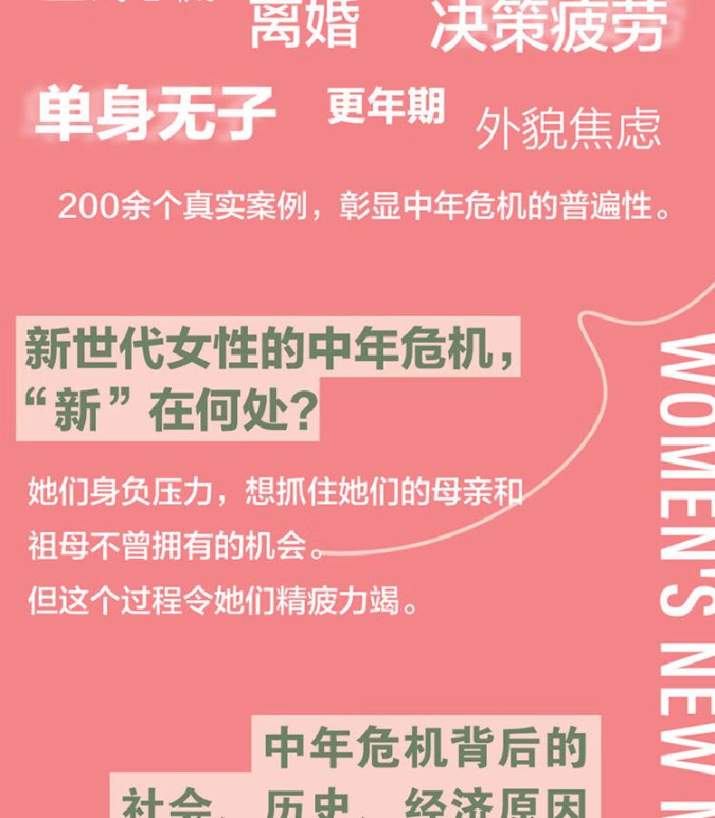 在本书中,卡尔霍恩将丰富的个案和社会变革、文化分析、经济统计数据相结合,全面讨论了中年女性在健康、金钱、事业、家庭方方面面遭遇的危机,揭示女性中年危机后的文化、社会因素,并寻求解决之道。