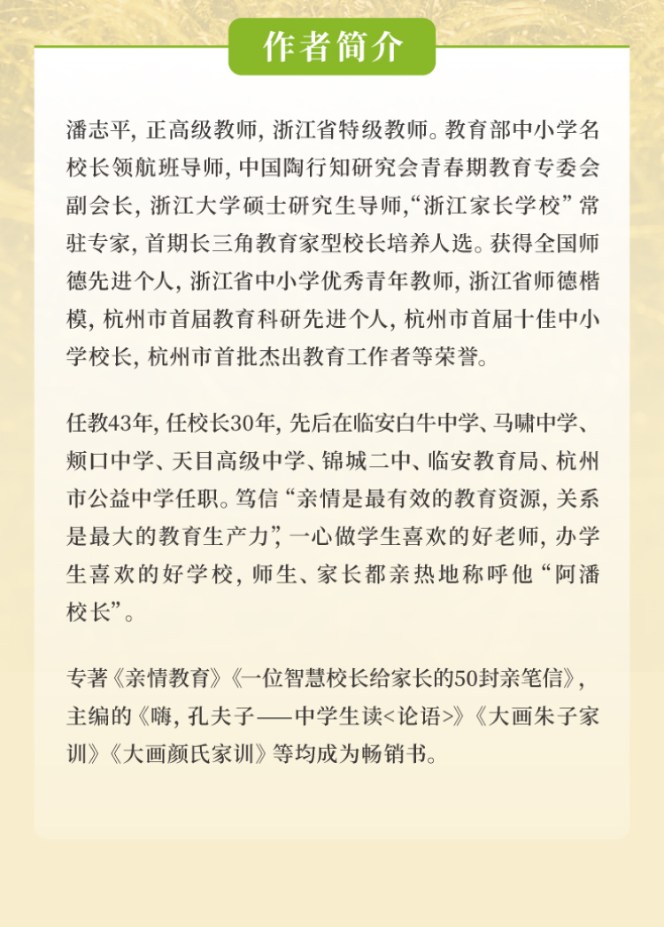 一部承载着杭州知名校长潘志平家风传承与情怀的教育故事。