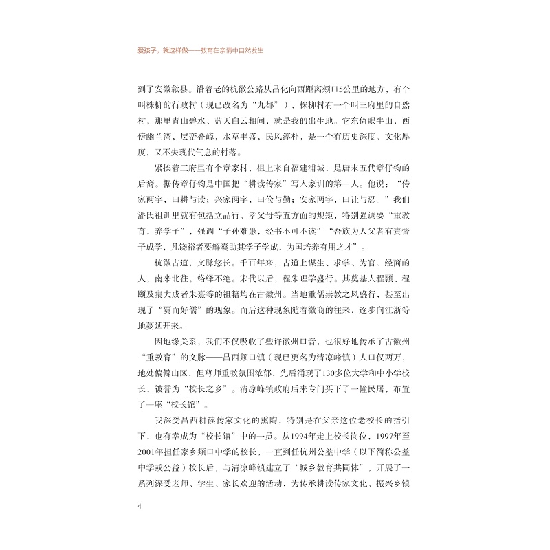 作者首先回顾了自己的童年,这些成长经历以及当地耕读传家文化深刻影响了他日后的教育理念。在他的教育生涯中,讲述了如何从一名山区初中教师开始,逐步积累经验,最终成为杭州知名校长。在这个过程中,他逐渐形成了以亲情为核心的教育理念,并通过“亲笔信”、“阿潘羹”等创新方式,将亲情教育深入到日常教学中,有效提升了教育质量和师生、家长之间的凝聚力。书中还讲述了潘志平在教育生涯中的关键时刻和重要决策,展现了他对教育事业的深沉热爱和不懈追求。