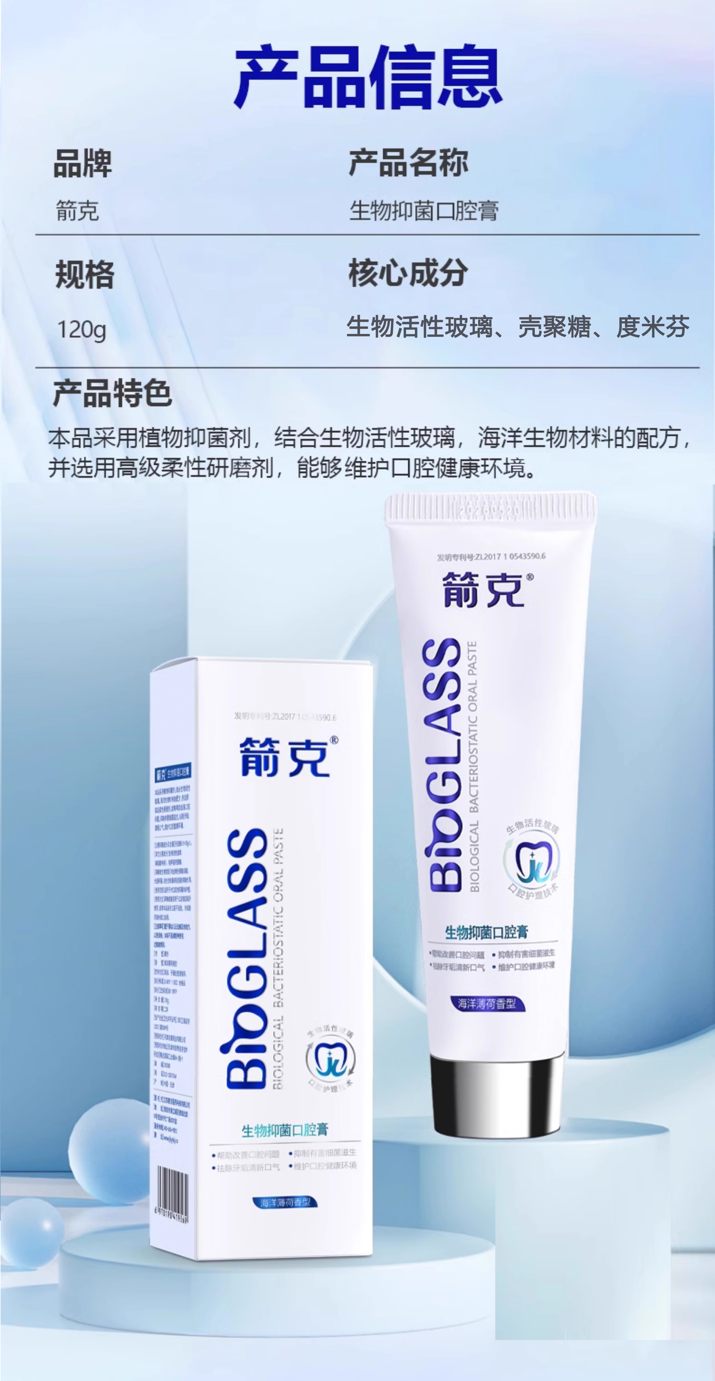 箭克生物玻璃牙膏 120g*4支