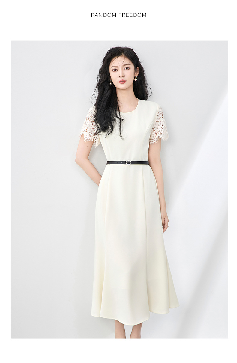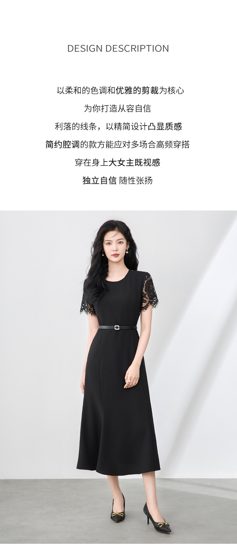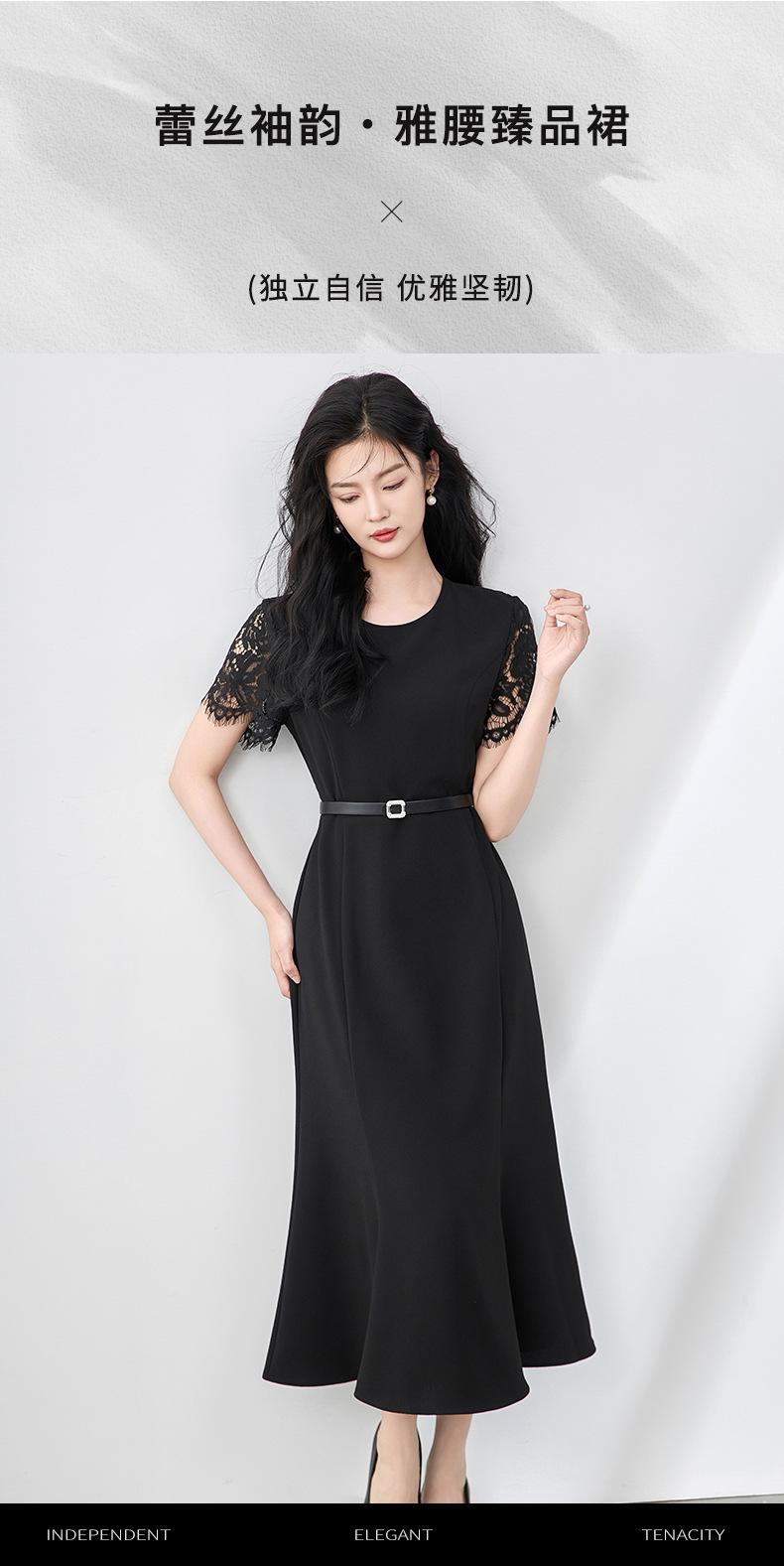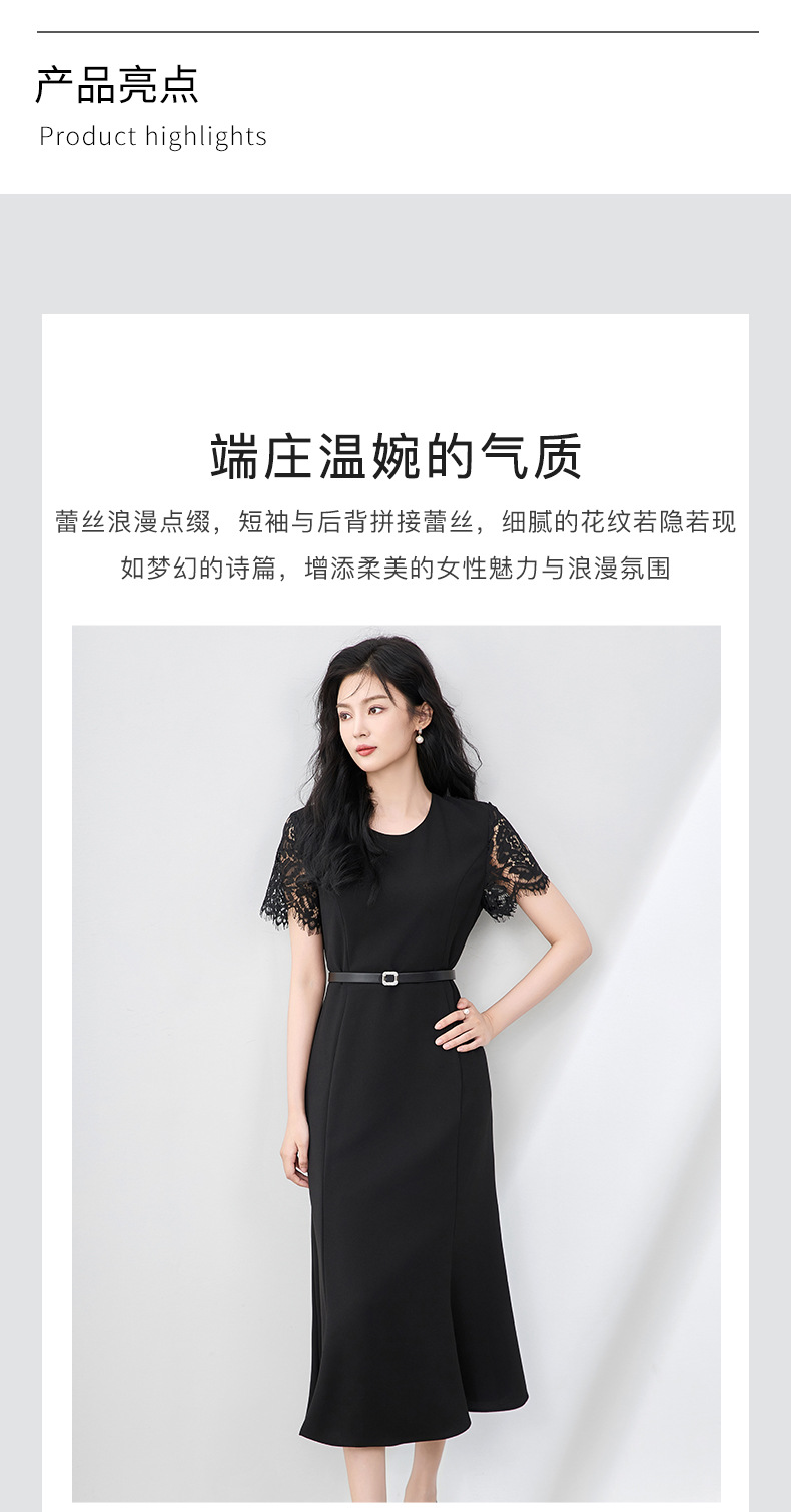 「高货wl」全新升级【铂金会员321/天猫429/差价108】(03702)洛诗琳气质蕾丝钩花拼接连衣裙2025夏季优雅通勤鱼尾裙女