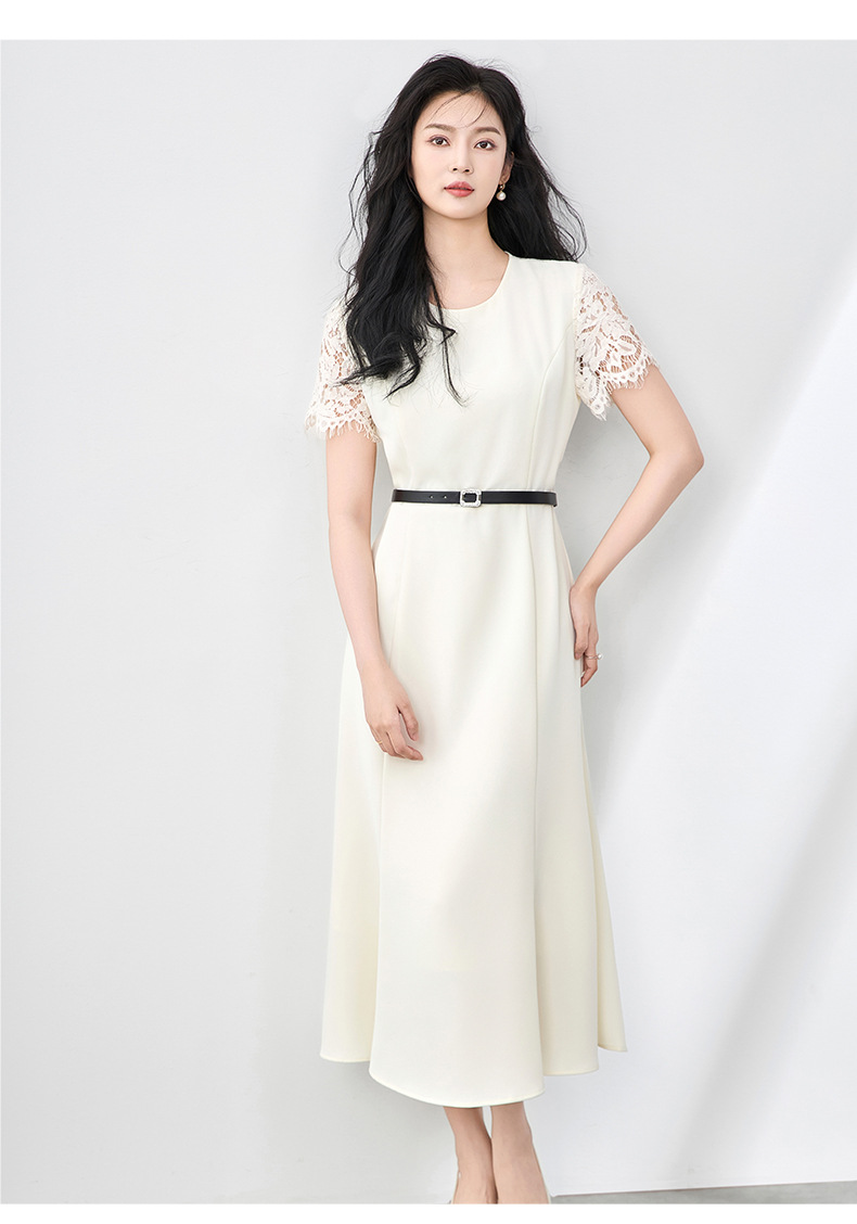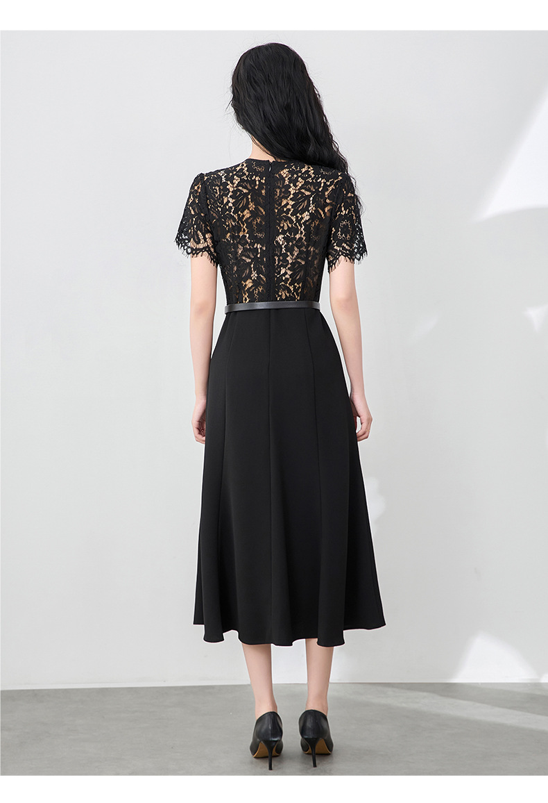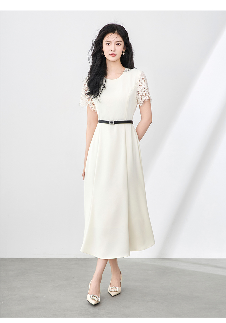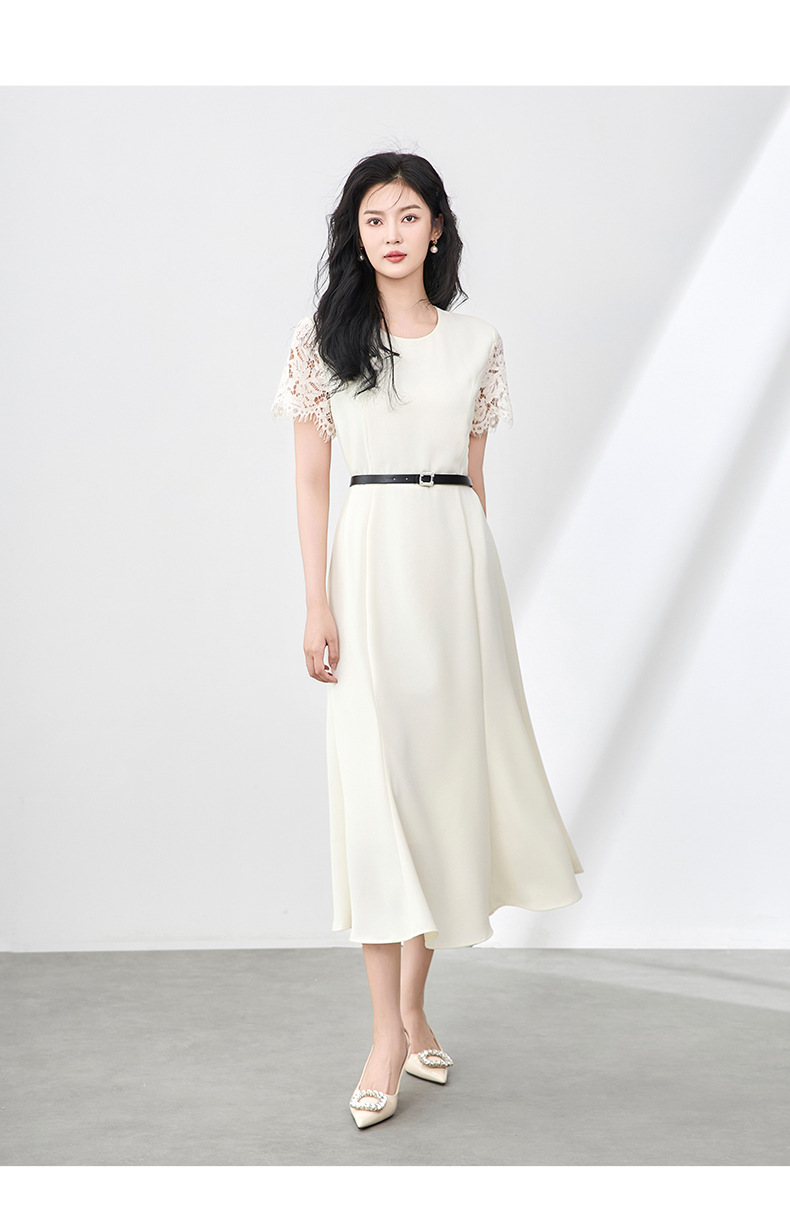 「高货wl」全新升级【铂金会员321/天猫429/差价108】(03702)洛诗琳气质蕾丝钩花拼接连衣裙2025夏季优雅通勤鱼尾裙女