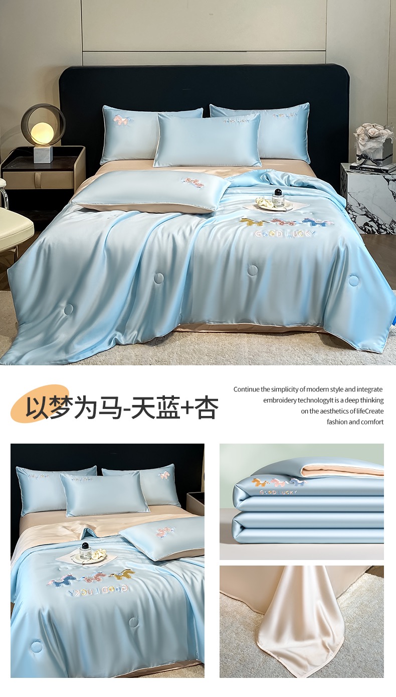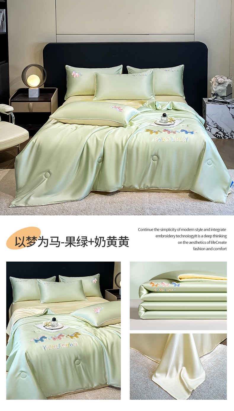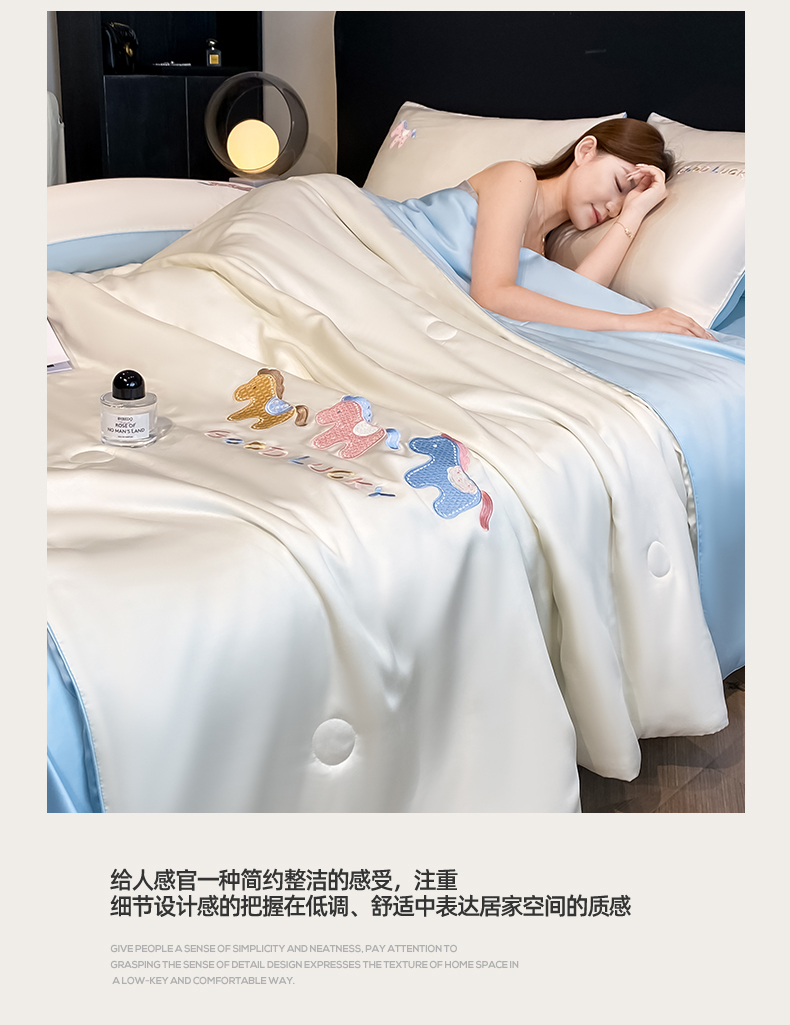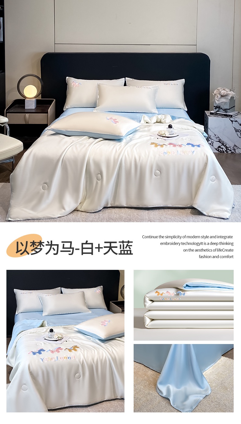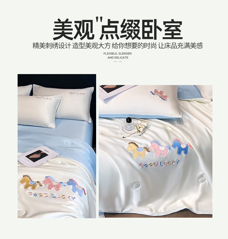 【品牌直发】加倍生活 A类水洗仿真丝刺绣小马元素刺绣夏被四件套-以梦为马系列 8色可选