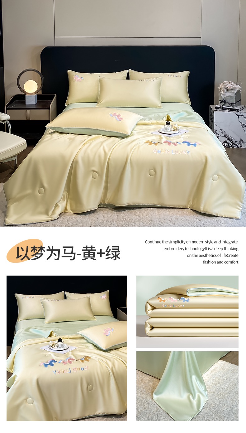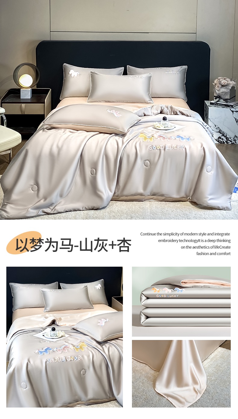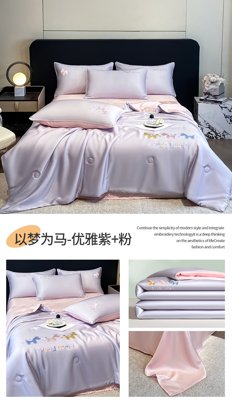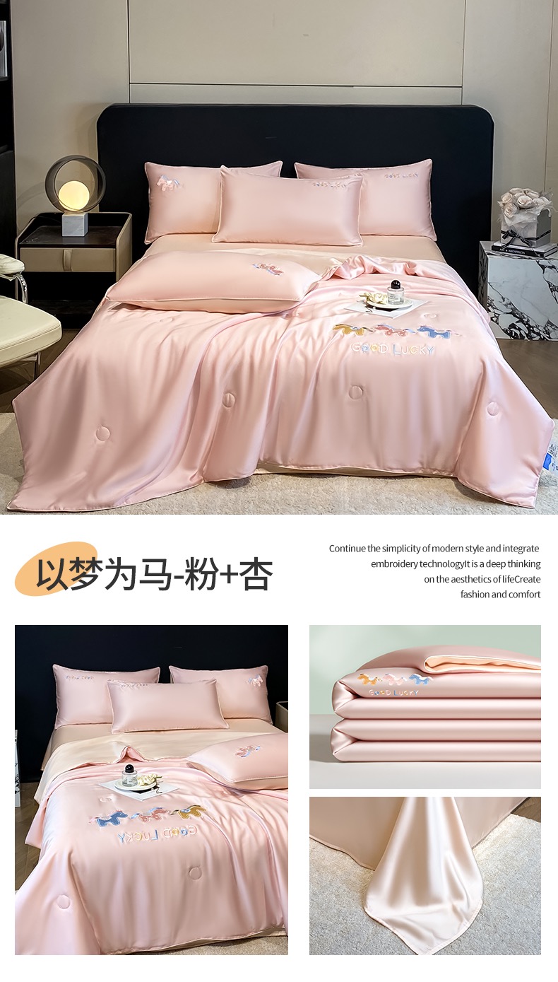 【品牌直发】加倍生活 A类水洗仿真丝刺绣小马元素刺绣夏被四件套-以梦为马系列 8色可选